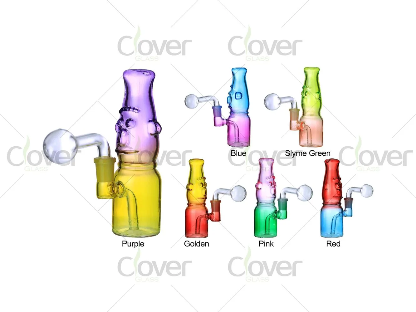 Clover Glass focuses on novelty designs that remain practical and well-balanced. Each oil burner is inspected for glass thickness, joint smoothness, and internal airflow alignment. Our face-shaped pieces are visually distinctive, easy to recognize online, and designed for consistent quality across all color options.