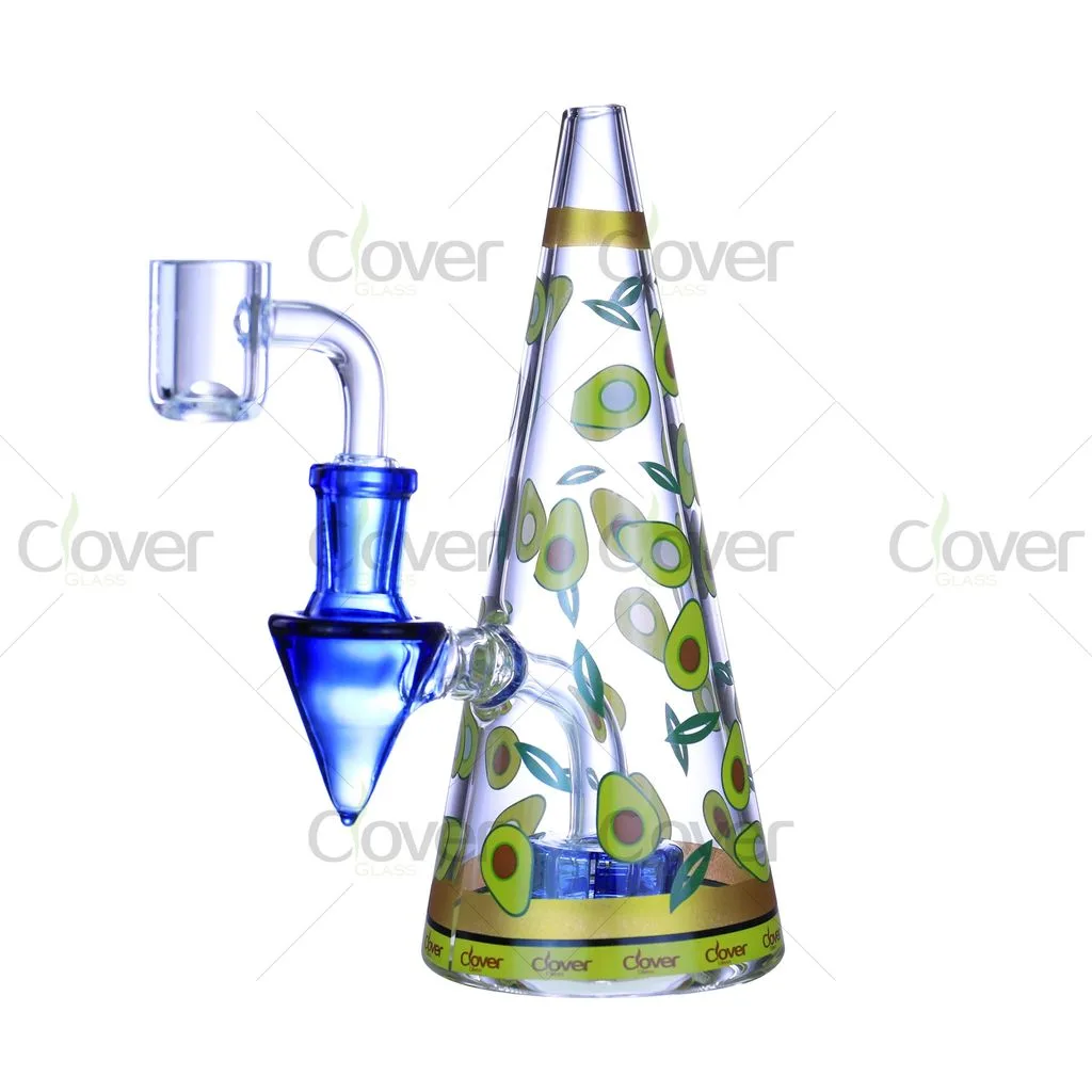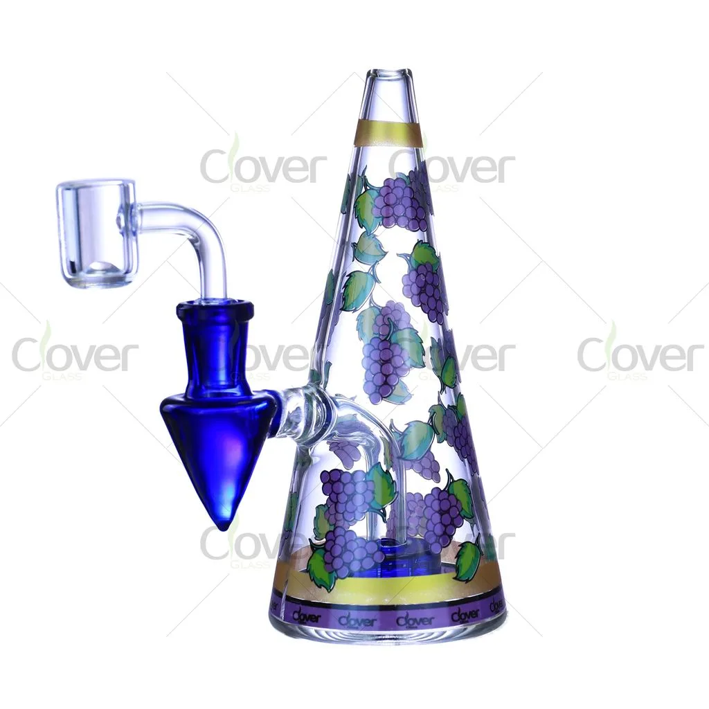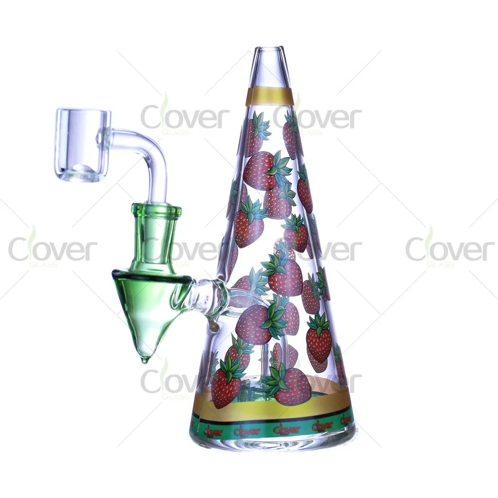 This 6.5-inch cone-shaped glass water pipe features playful fruit-inspired patterns combined with a clean, modern silhouette. The tapered cone body offers a comfortable grip and a stable base, while the colorful fruit graphics add strong visual appeal for retail displays.