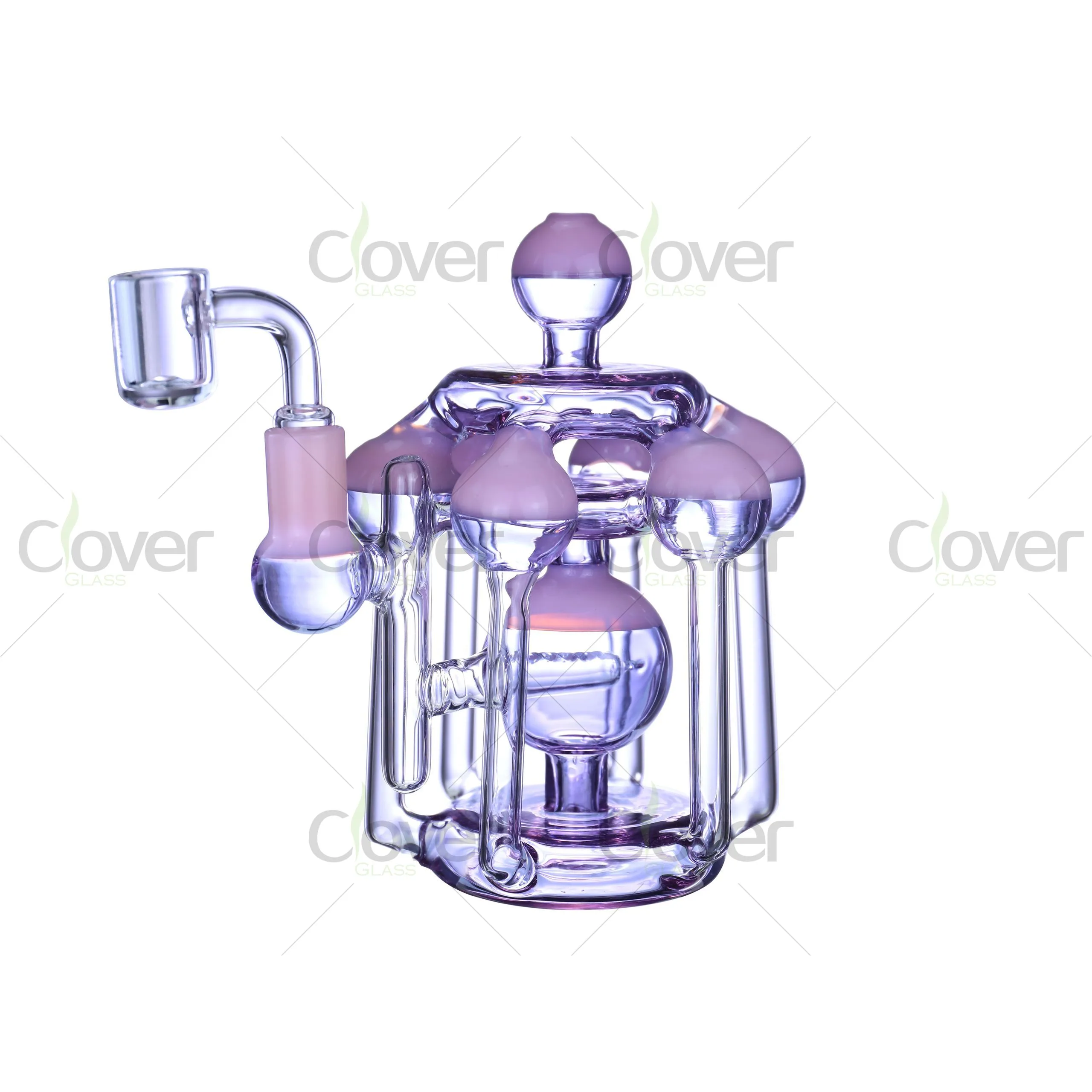 This 6.7-inch Glass Recycler Dab Rig by Clover Glass features an intricate bubble cluster design, where glass bubbles are stacked in a captivating formation that not only enhances its visual appeal but also improves filtration. Made from high borosilicate glass, this piece is durable, heat-resistant, and built to last. The 14mm joint size offers compatibility with various accessories for a customized smoking experience.