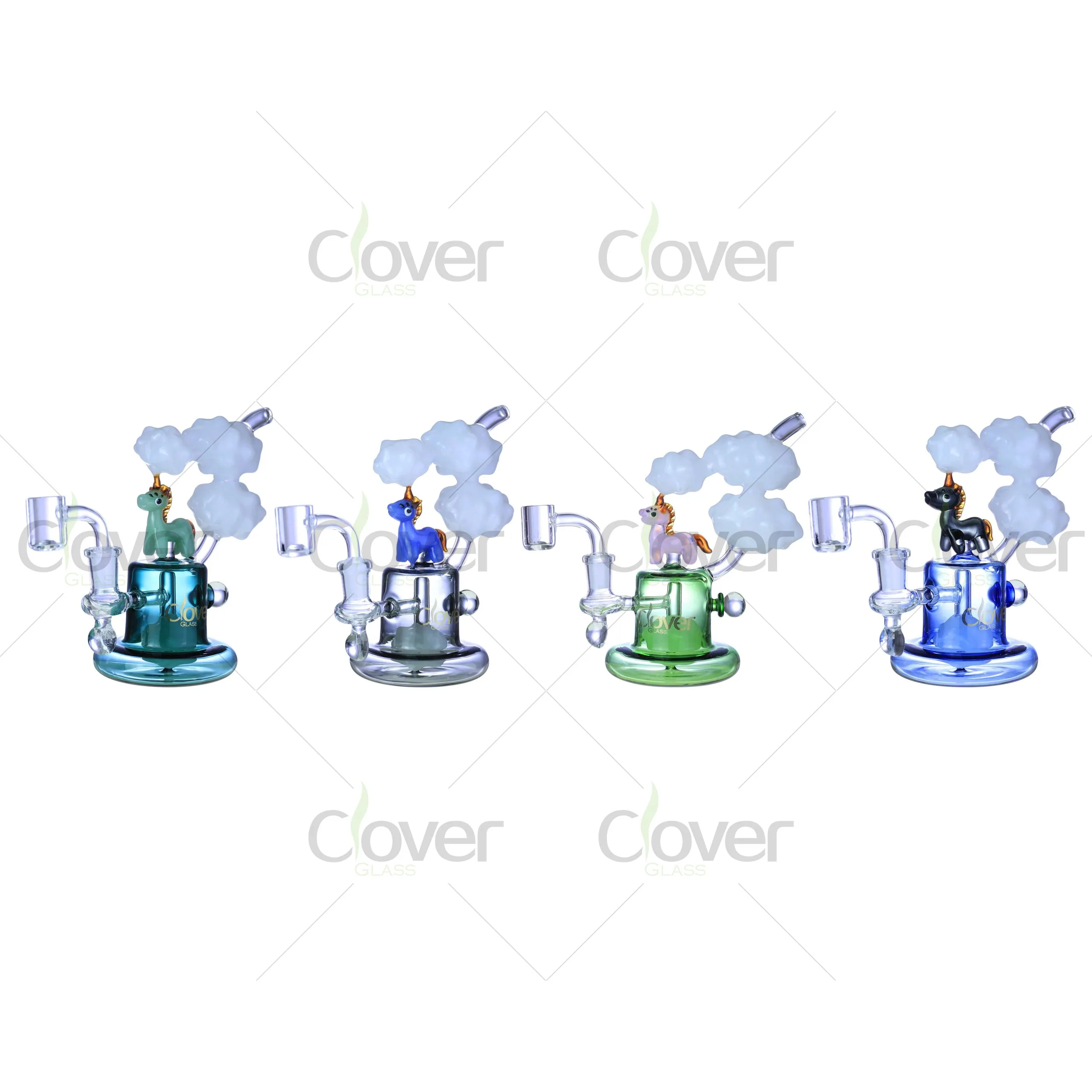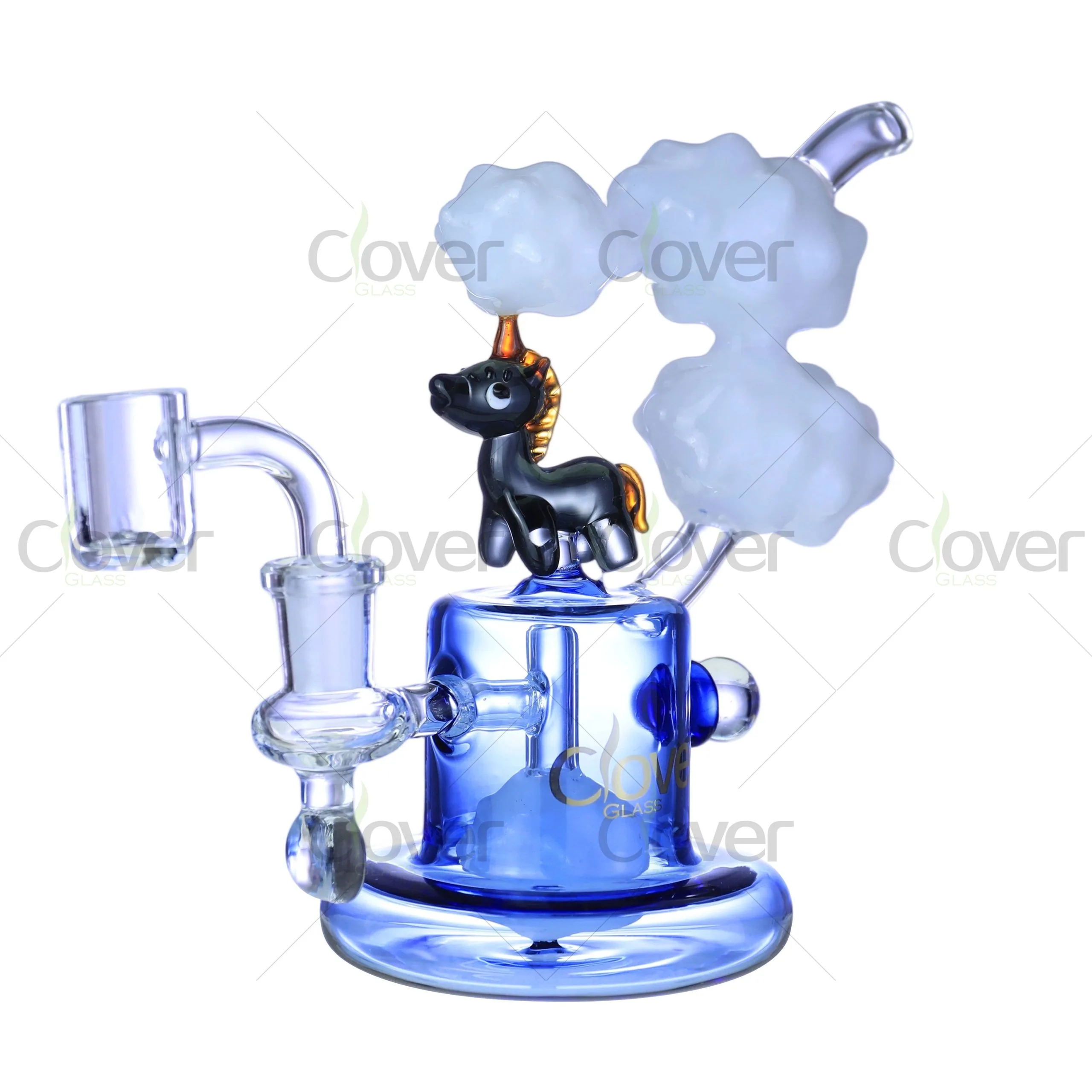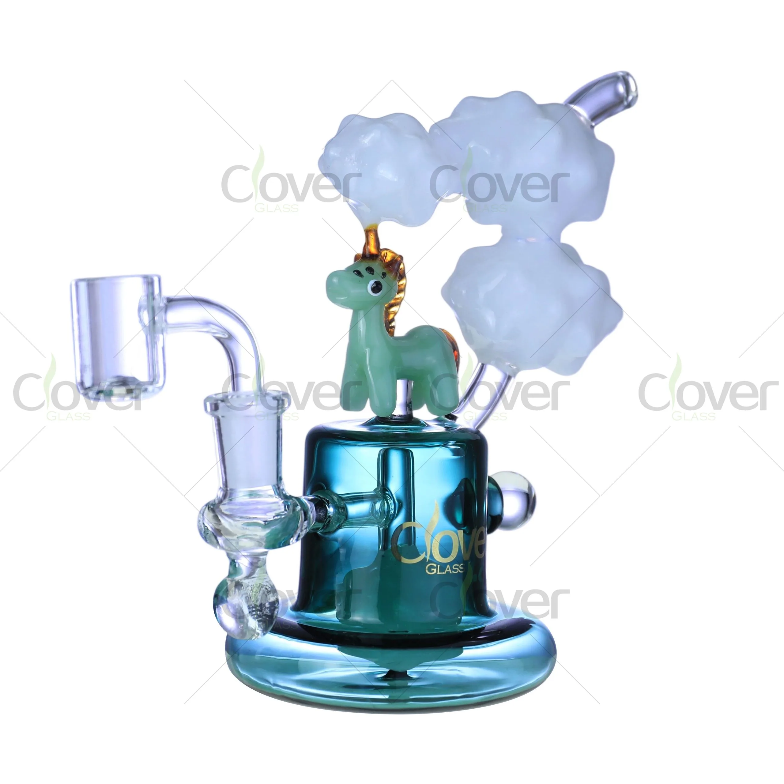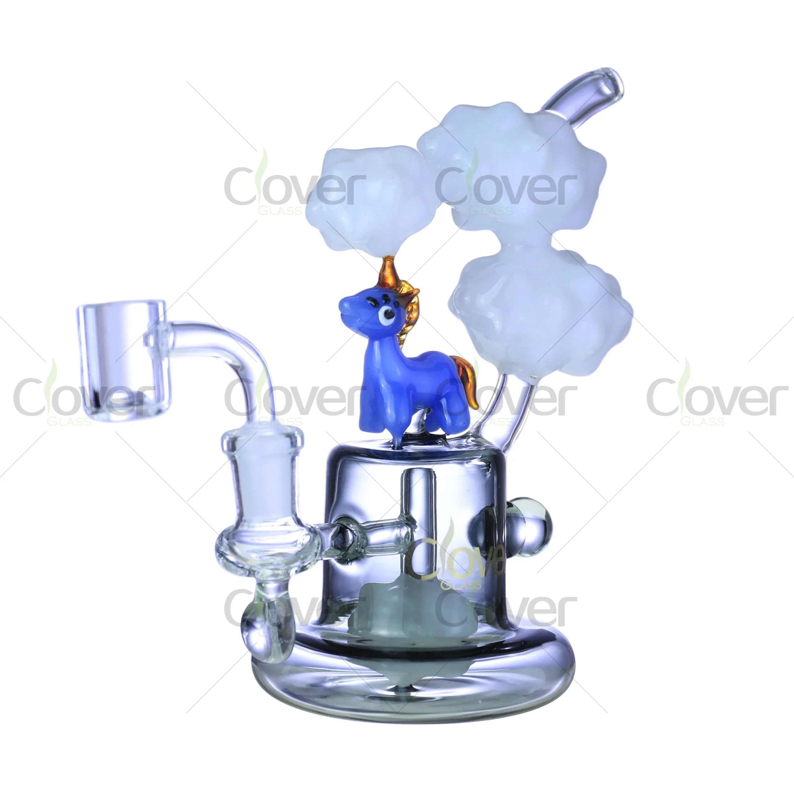 Add a touch of magic to your dabbing ritual with the 6.88" Unicorn Dab Rig by Clover Glass — a delightful fusion of fantasy and function. Featuring an adorable handcrafted unicorn standing atop dreamy glass clouds, this rig is built to captivate both collectors and connoisseurs.