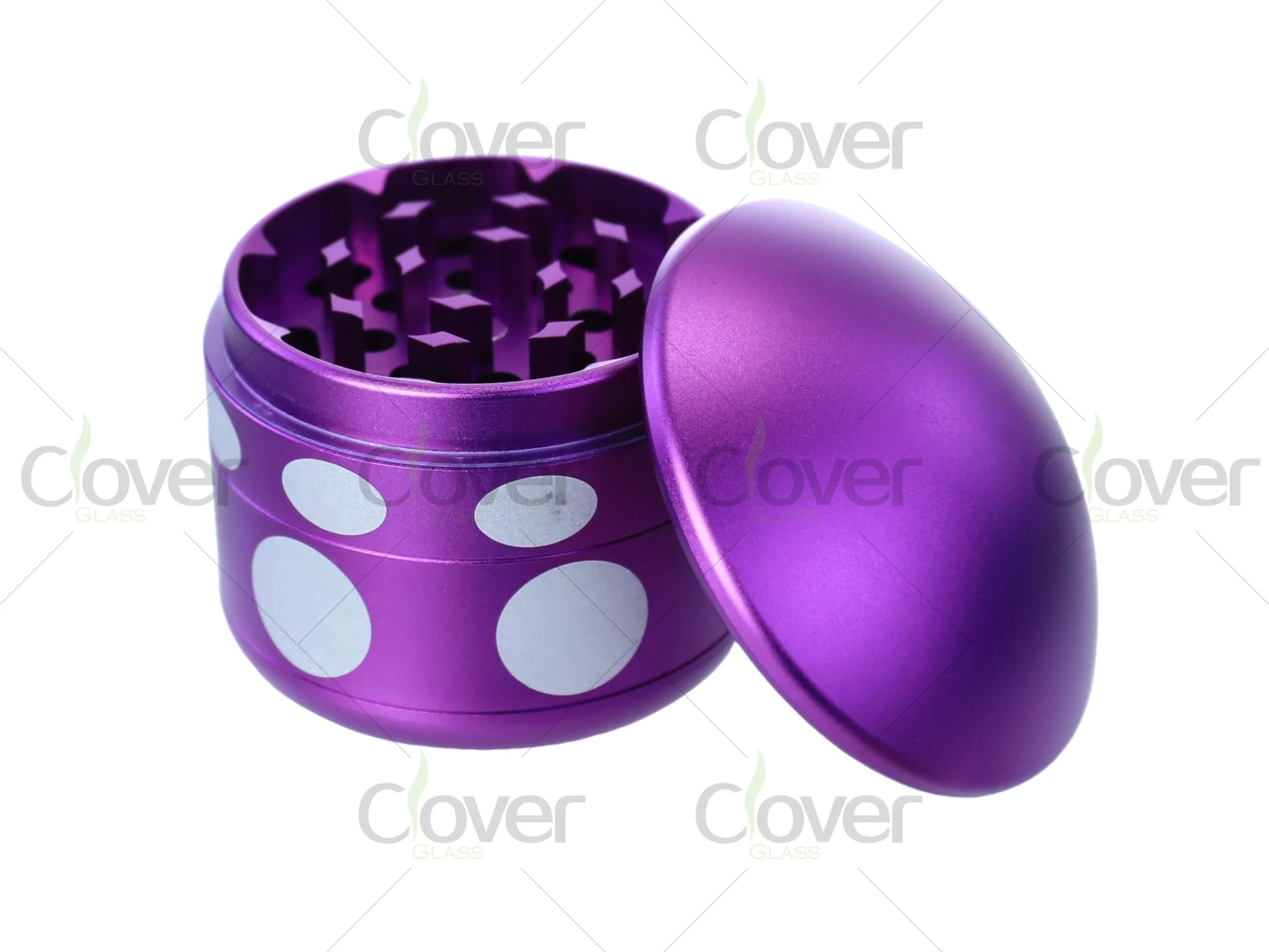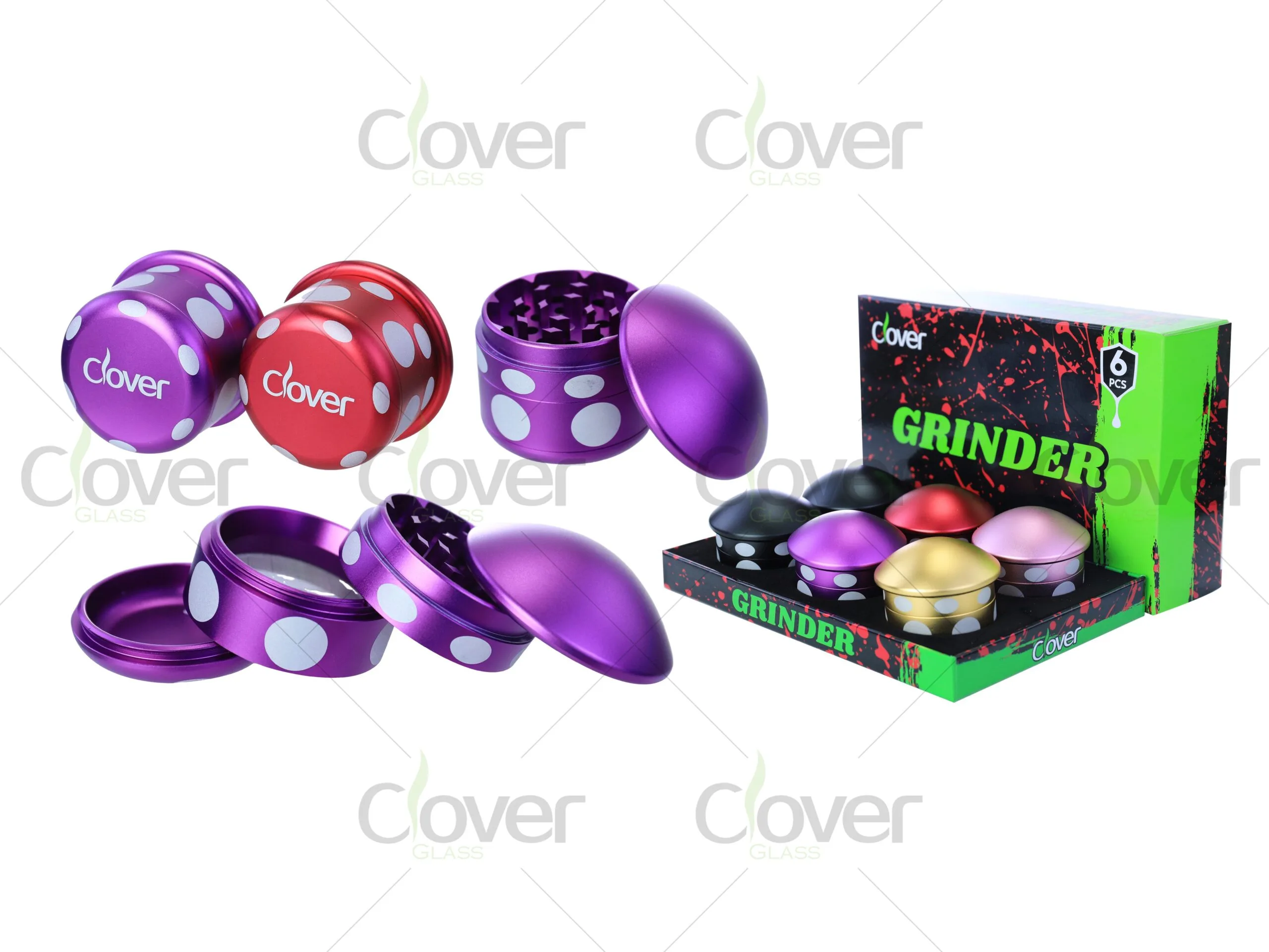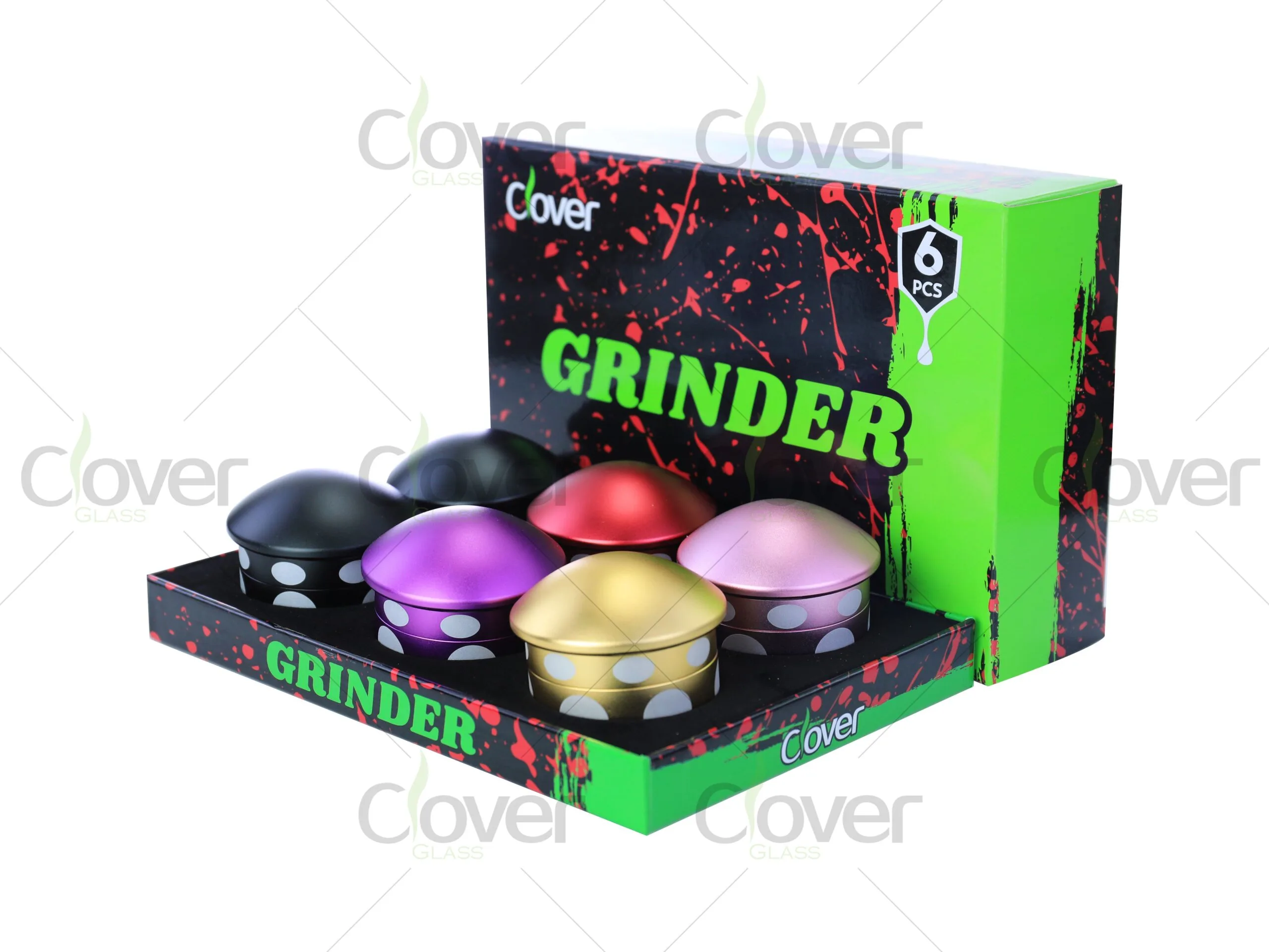 Add a fun and unique touch to your inventory with this 62mm aluminum alloy grinder, designed in a whimsical mushroom shape with polka dot accents. This 4-part grinder features razor-sharp teeth for a smooth and even grind, a magnetic lid for secure closure, and a fine mesh screen for pollen collection. Its ergonomic curved shape ensures a comfortable grip, making it both functional and stylish. Each set includes six grinders in a display box, making it a great wholesale option for retailers and distributors.