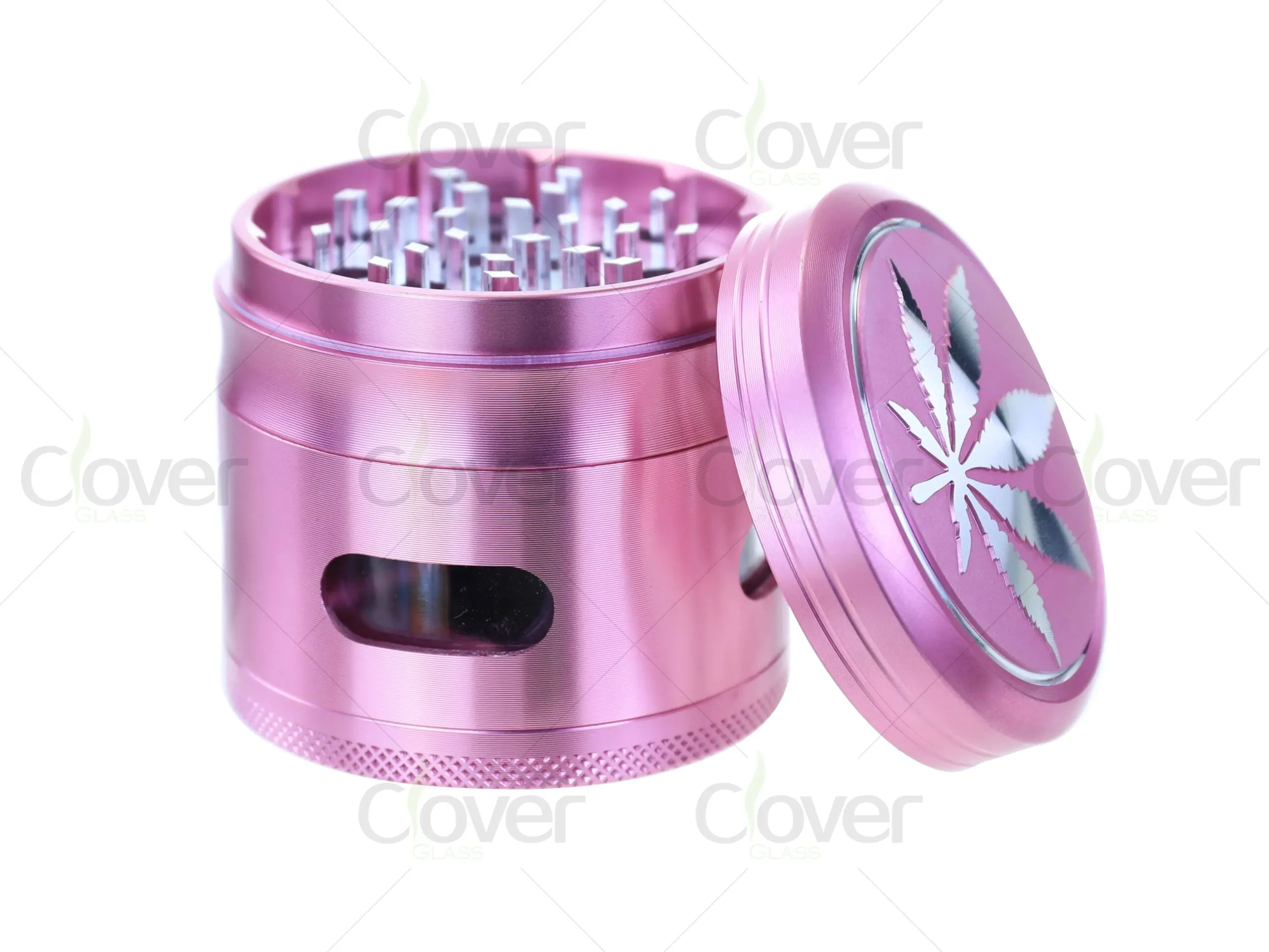 This 6-piece aluminum alloy grinder set features vibrant colors, including pink, green, orange, and black, each with an engraved cannabis leaf design. Made from durable aluminum alloy, these grinders measure 63mm x 65mm and include a 4-part design for efficient grinding, collection, and storage. The diamond-shaped teeth ensure smooth and consistent grinding every time.