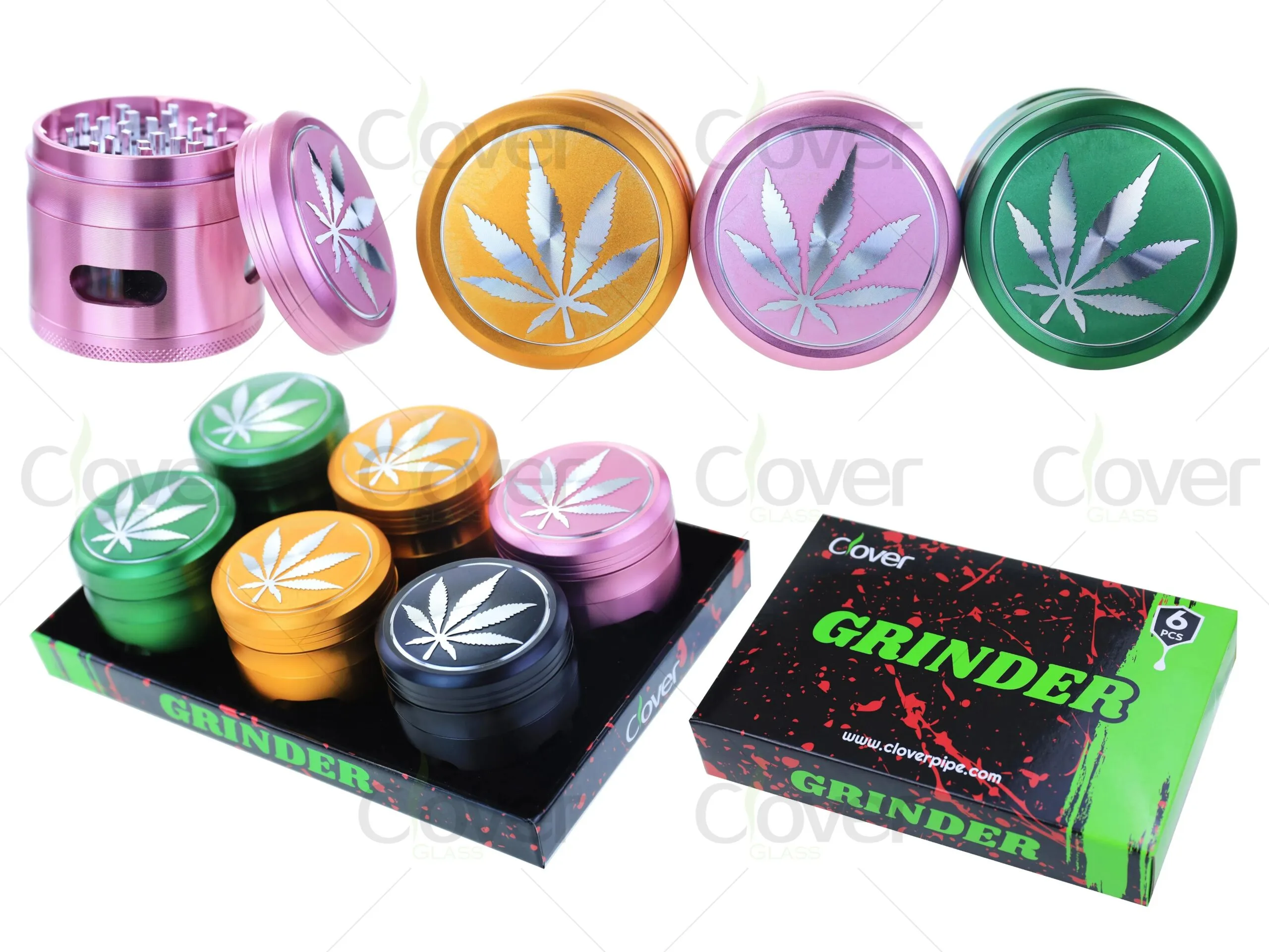 6-Piece Aluminum Alloy 4-Part Grinder Set – Cannabis Leaf Design with Display Box