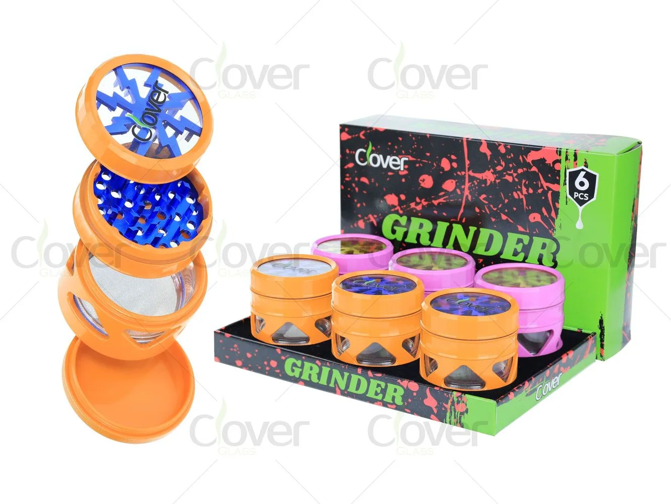 Add color and function to your display with this 63mm 4-piece aluminum herb grinder featuring a bold two-tone design and transparent window chambers. Built with precision and style in mind, this grinder is ideal for retailers and collectors alike.