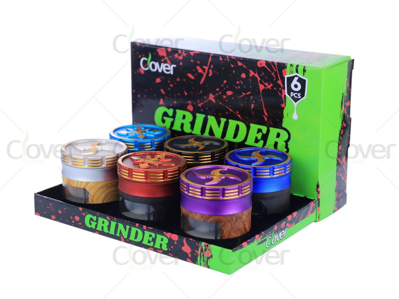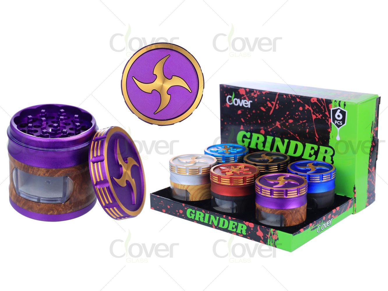 63mm 4-Layer Grinder with Wood Grain Window & Ninja Blade Design | Aluminum Alloy | 6pcs Display