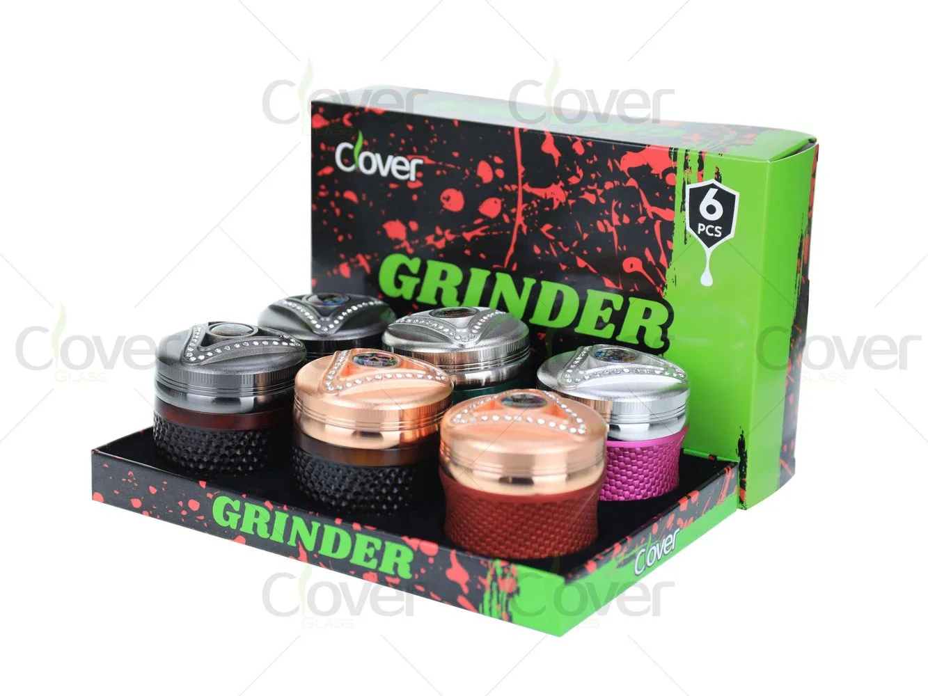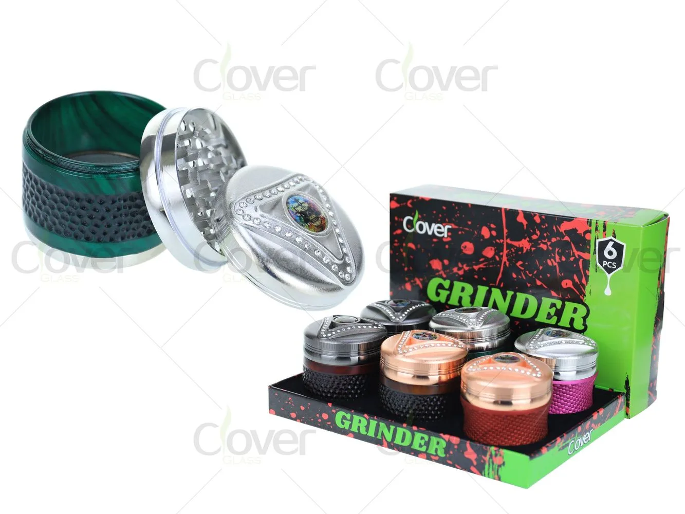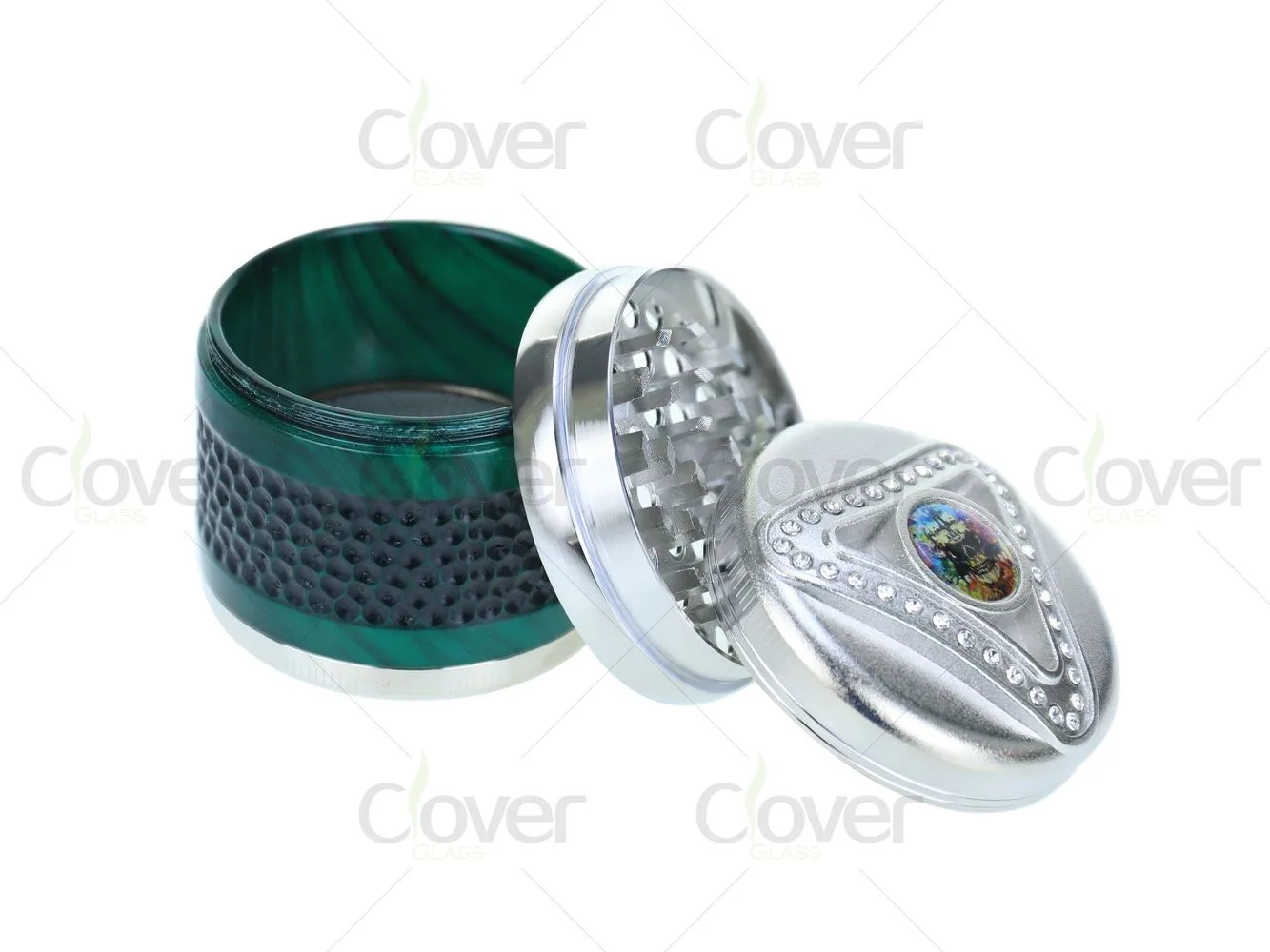 This luxury-grade 63mm 4-piece grinder is where premium design meets outstanding performance. Crafted from durable zinc alloy, this grinder features a bold grip texture and a decorative art lid framed with metallic stud accents for an eye-catching finish.