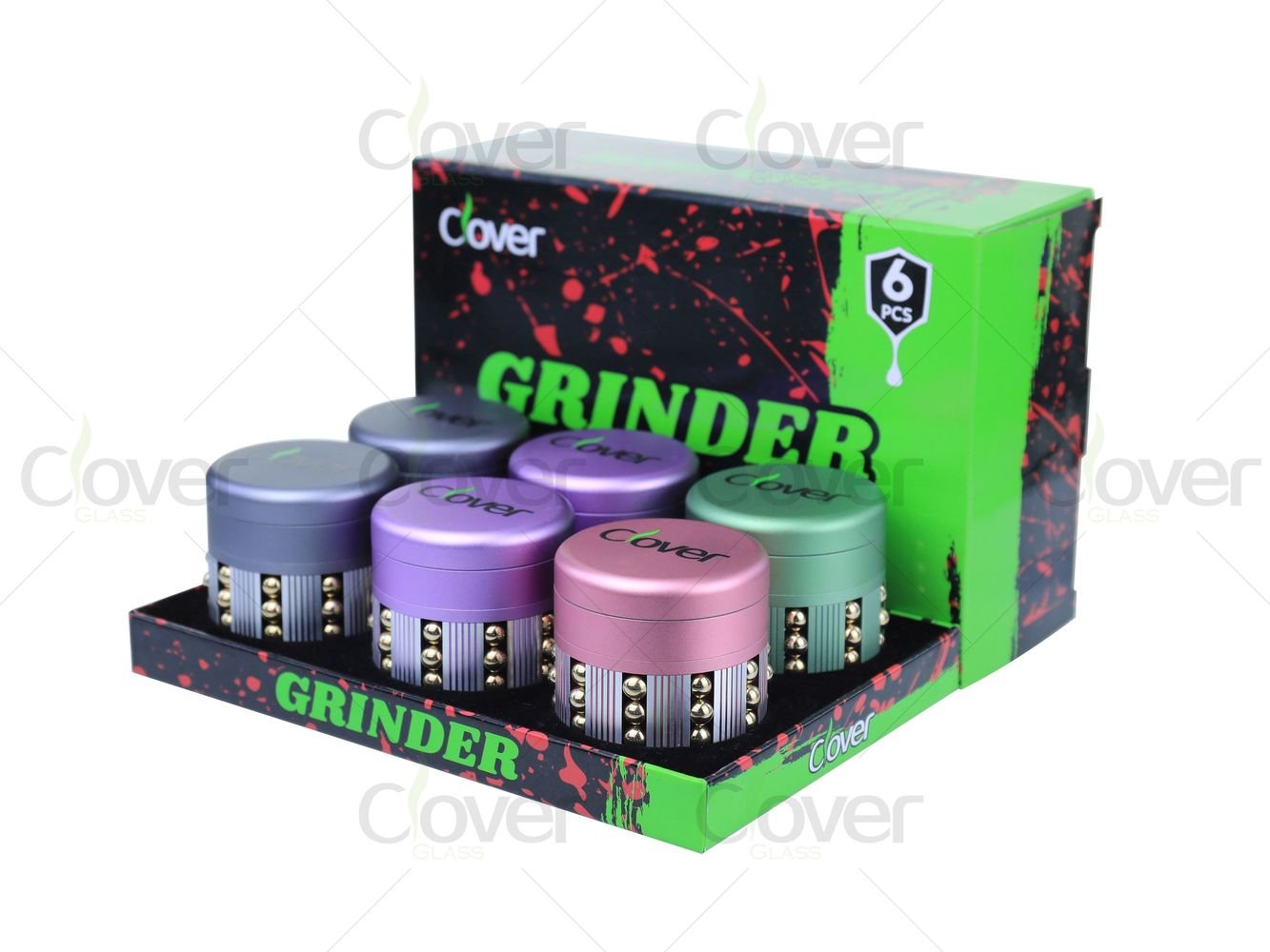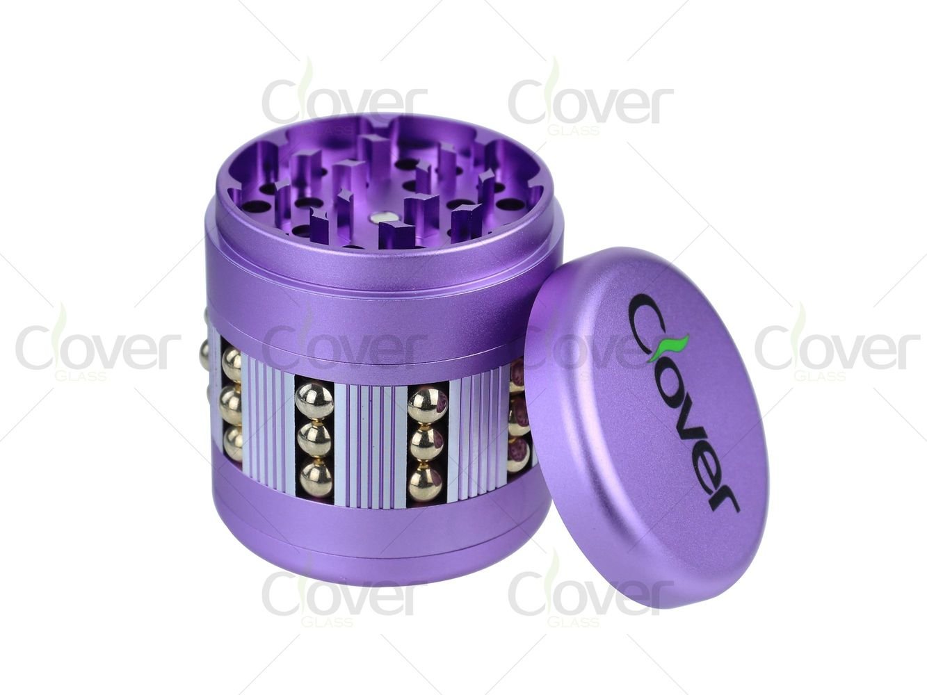 Bring both function and flair to your smoke shop with the Clover Glass 63mm 4-piece aluminum grinder, designed for users who value performance, grip, and modern aesthetics. This grinder is equipped with a patented rolling ball grip design, featuring metal balls embedded along the midsection to ensure an anti-slip, easy-rotate experience, even with sticky herbs.