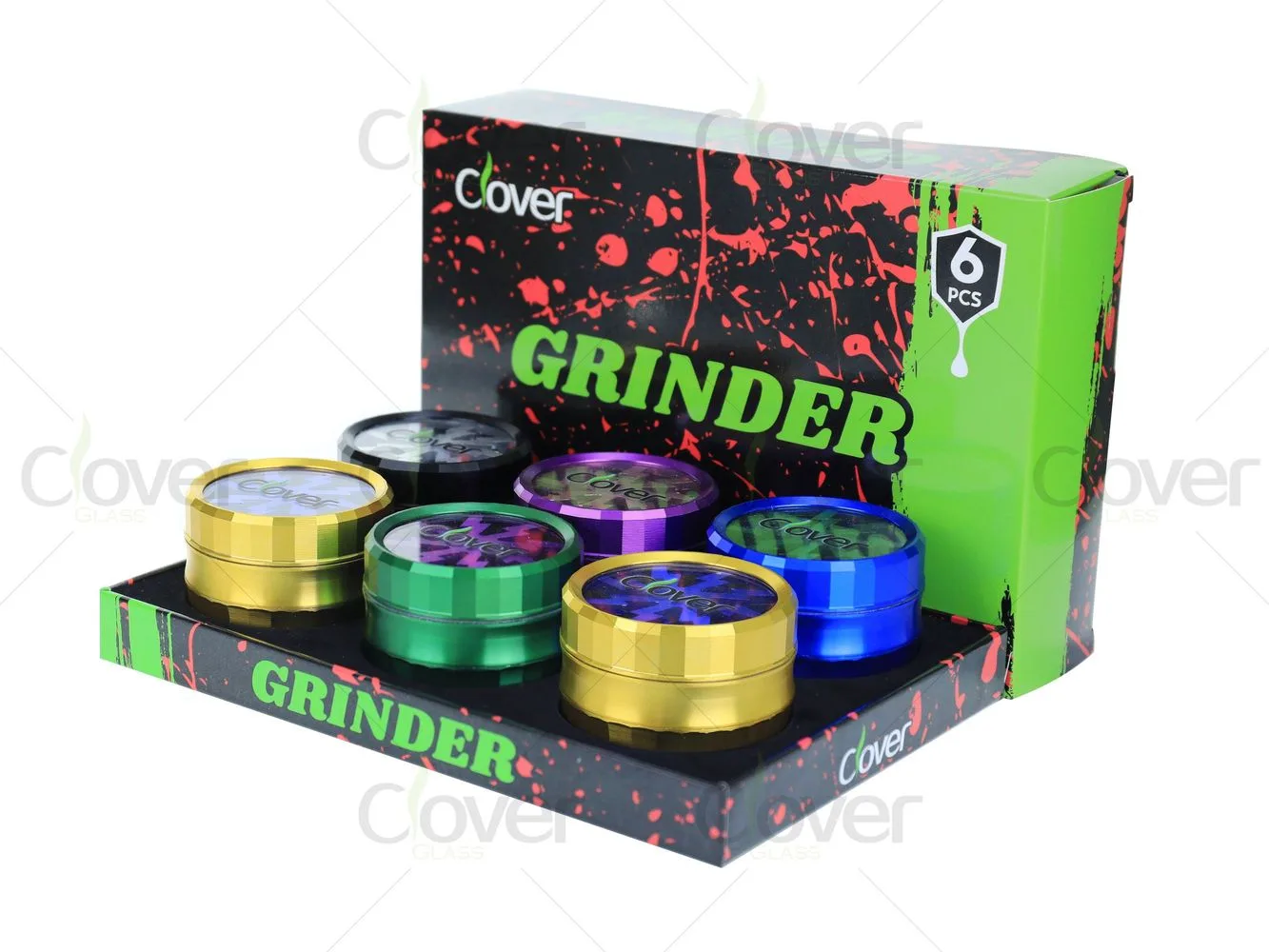 63mm 4-Piece Aluminum Herb Grinder with Window – Assorted Colors, 6pcs Display Set