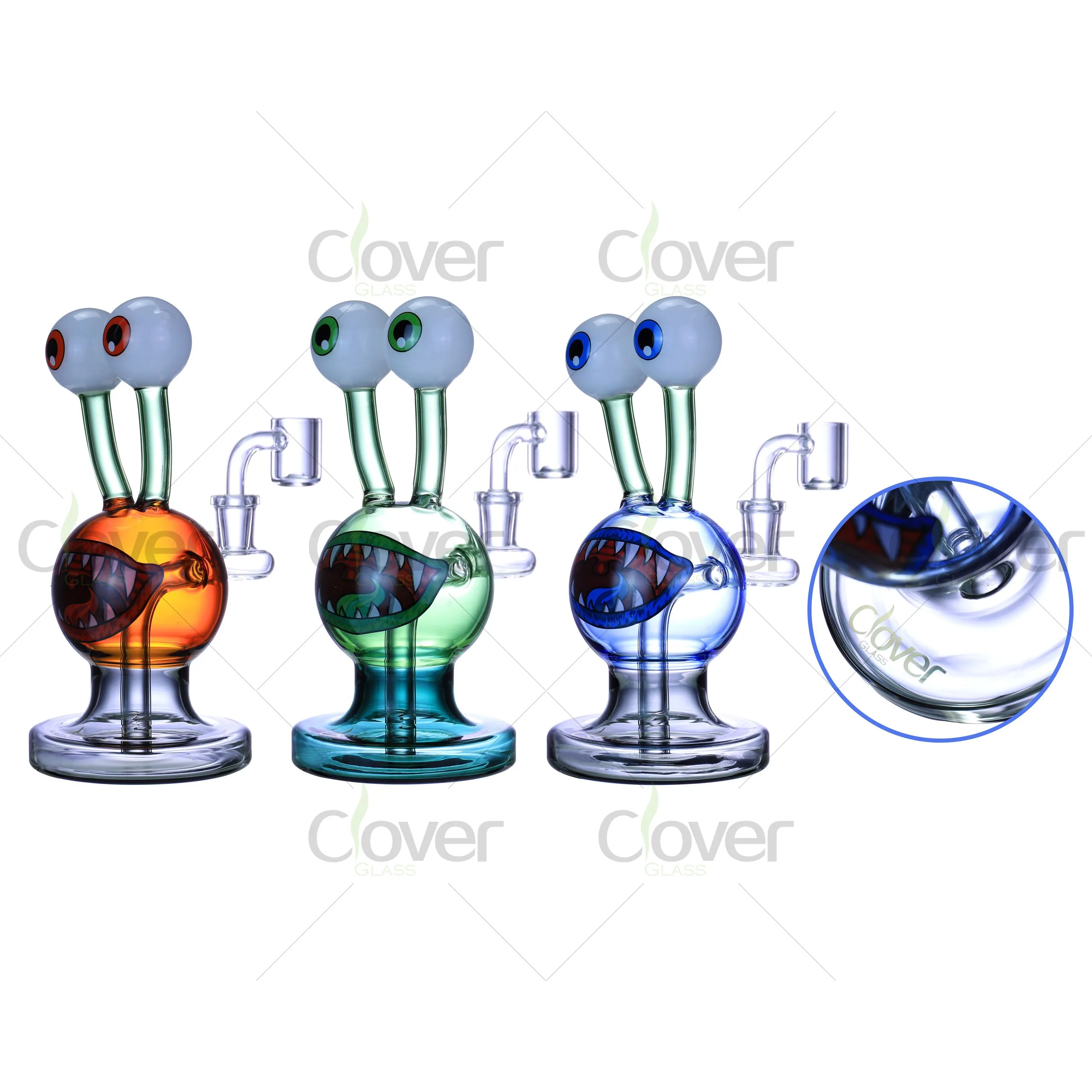 Meet your next best-seller – the 7.08-inch Monster Alien Dab Rig from CloverGlass. This wildly imaginative piece features a double eyeball alien head, paired with a fierce toothy grin for a bold, fun-loving aesthetic. It’s perfect for novelty glass collectors, smoke shop displays, and stores looking to stand out with something totally unexpected.