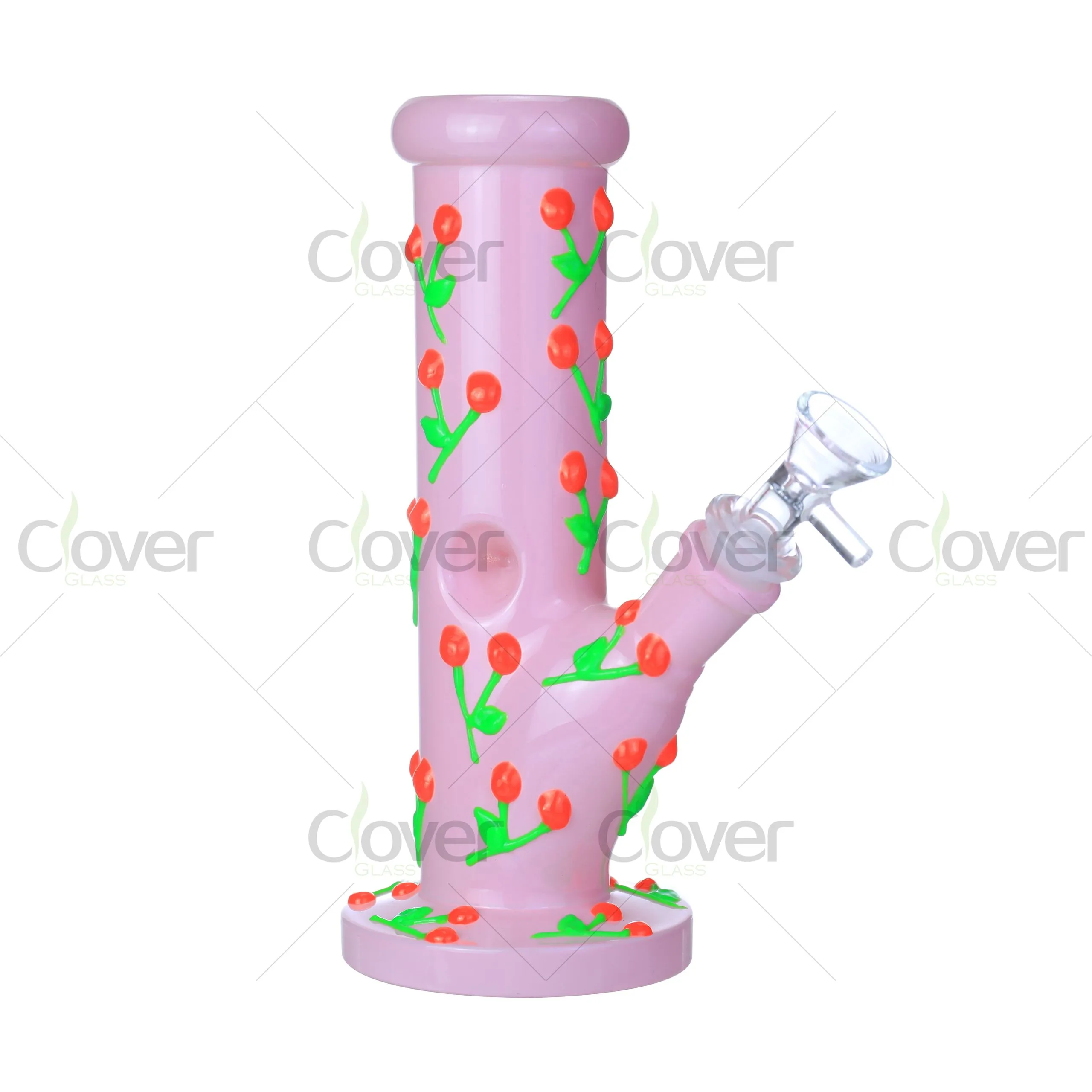 Add some floral flair to your smoke shop with this 7.87-inch pink water pipe featuring a charming cherry blossom pattern. Hand-painted with 3D resin detailing and UV-reactive highlights, this piece lights up any session—literally. It’s built with a 5mm thick glass insert for durability and features a soft pink base layered in vibrant glowing red and green flowers. A perfect mix of cute and cool for customers looking to stand out.