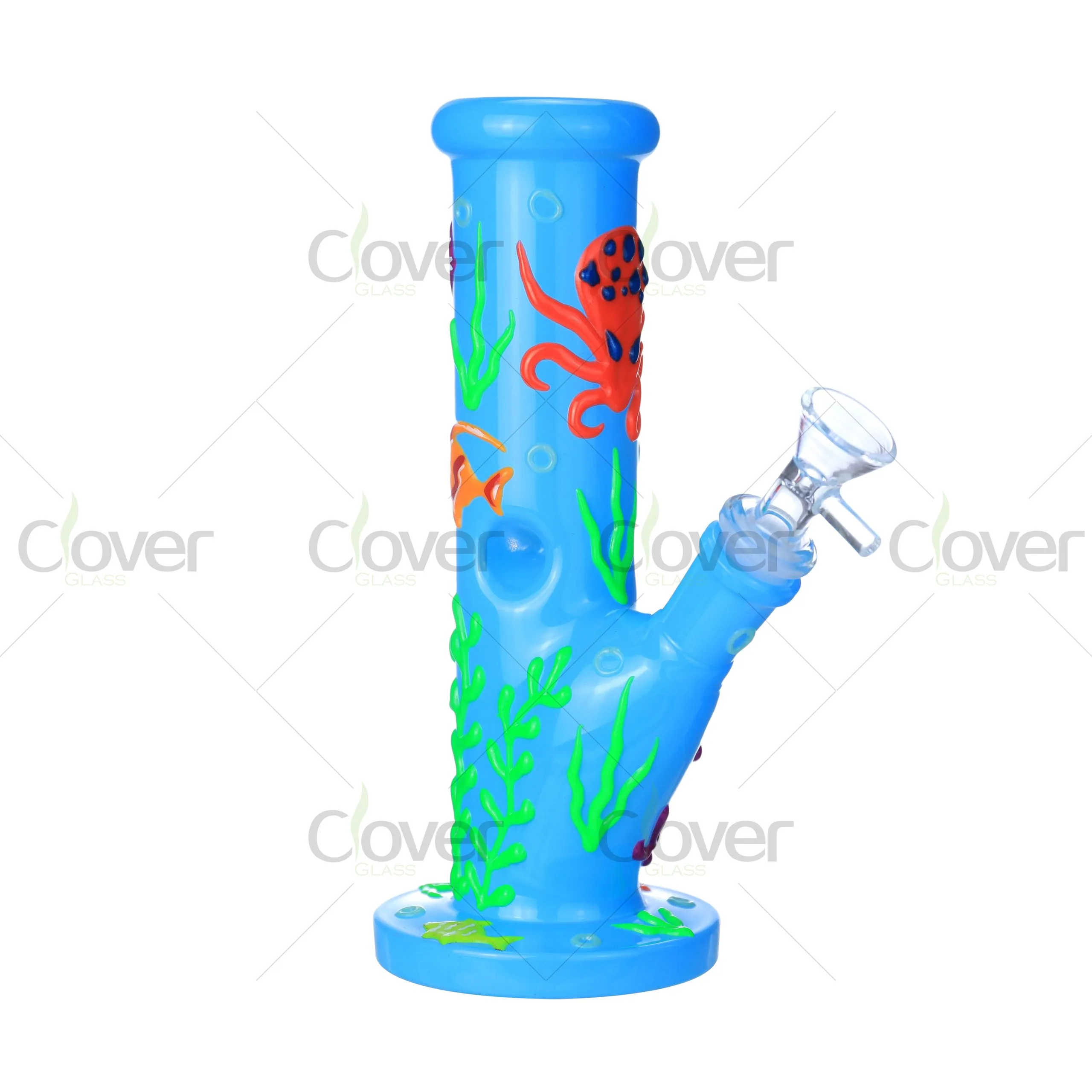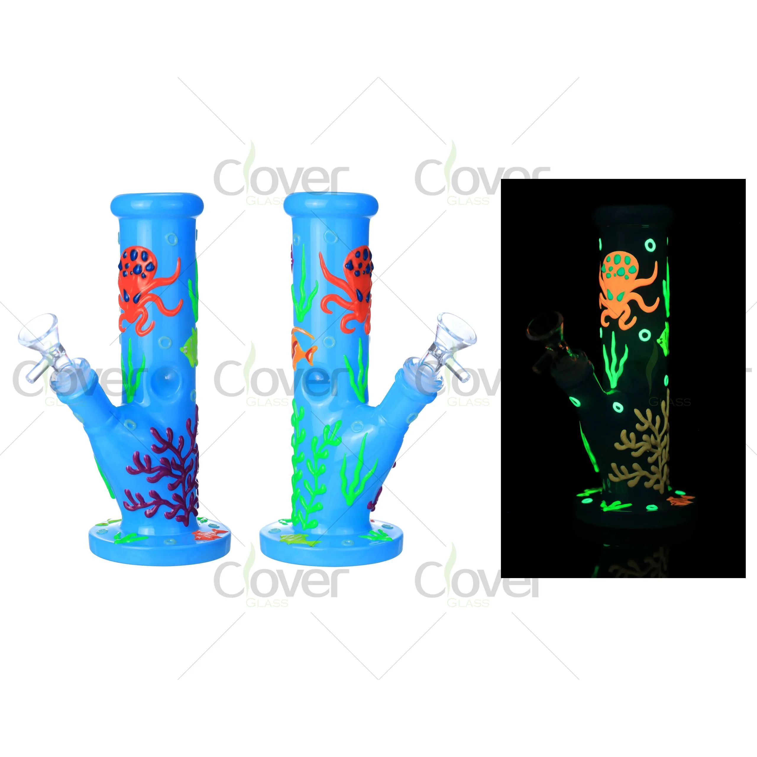 7.87″ 3D Painted Octopus Ocean Glow Bong – Blue Sea Resin Pipe with UV Reactive Design (5mm Thick)