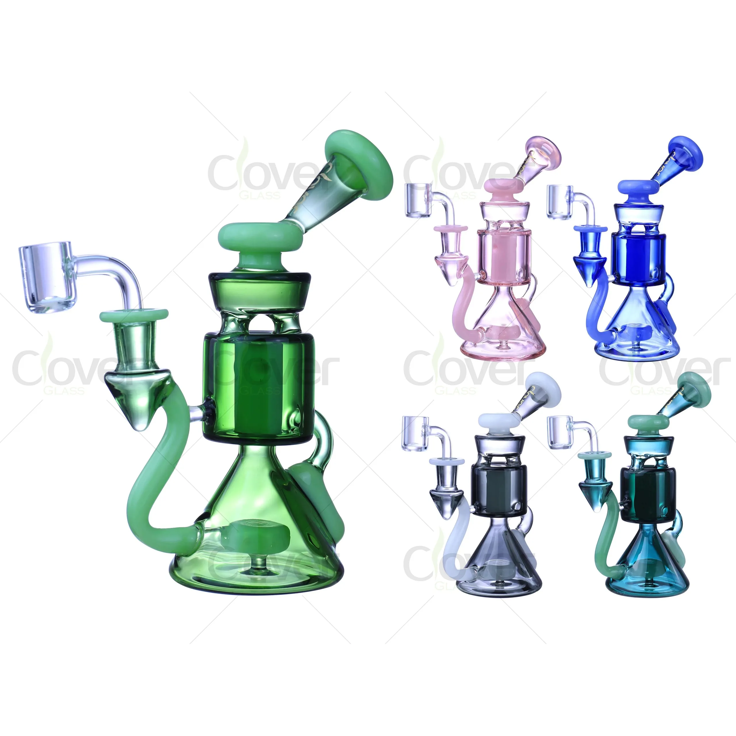 Elevate your dabbing experience with the Clover Glass Compact Cone Recycler Dab Rigs, a must-have for wholesalers and enthusiasts looking for stylish, high-quality glassware.