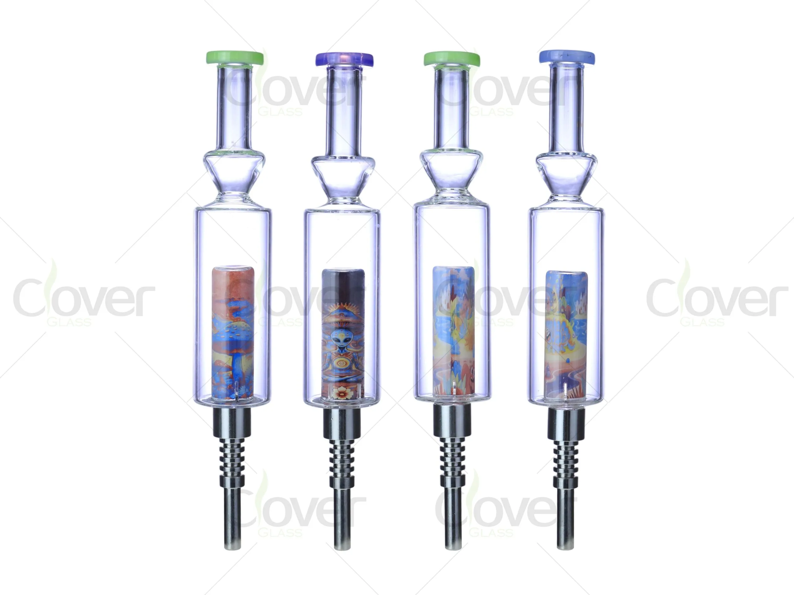 Our glass nectar collector designs combine functional cooling space with strong visual presentation. With durable stainless steel components, reinforced glass construction, and complete accessory kits, Clover Glass helps retailers offer products that perform well and stand out on the shelf.