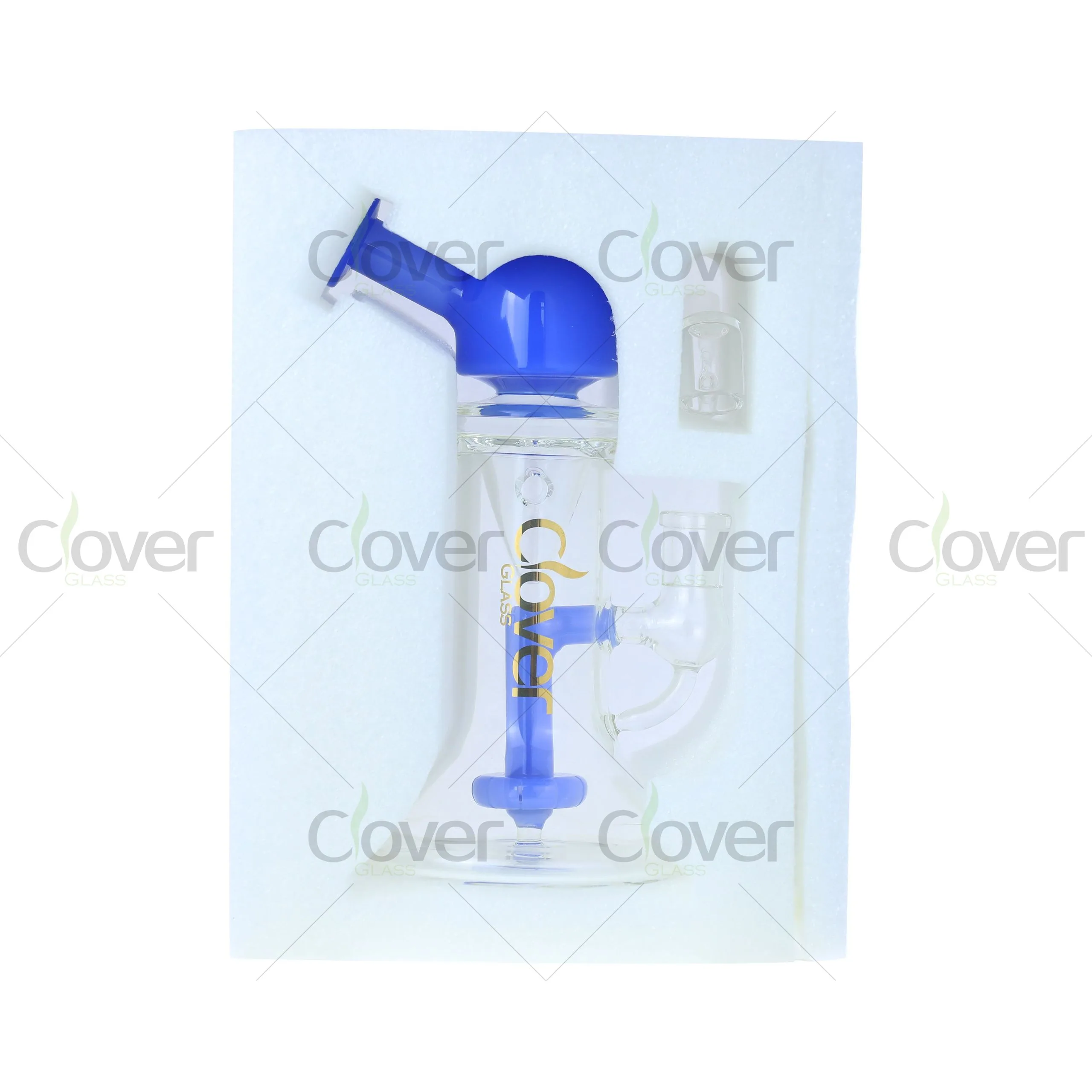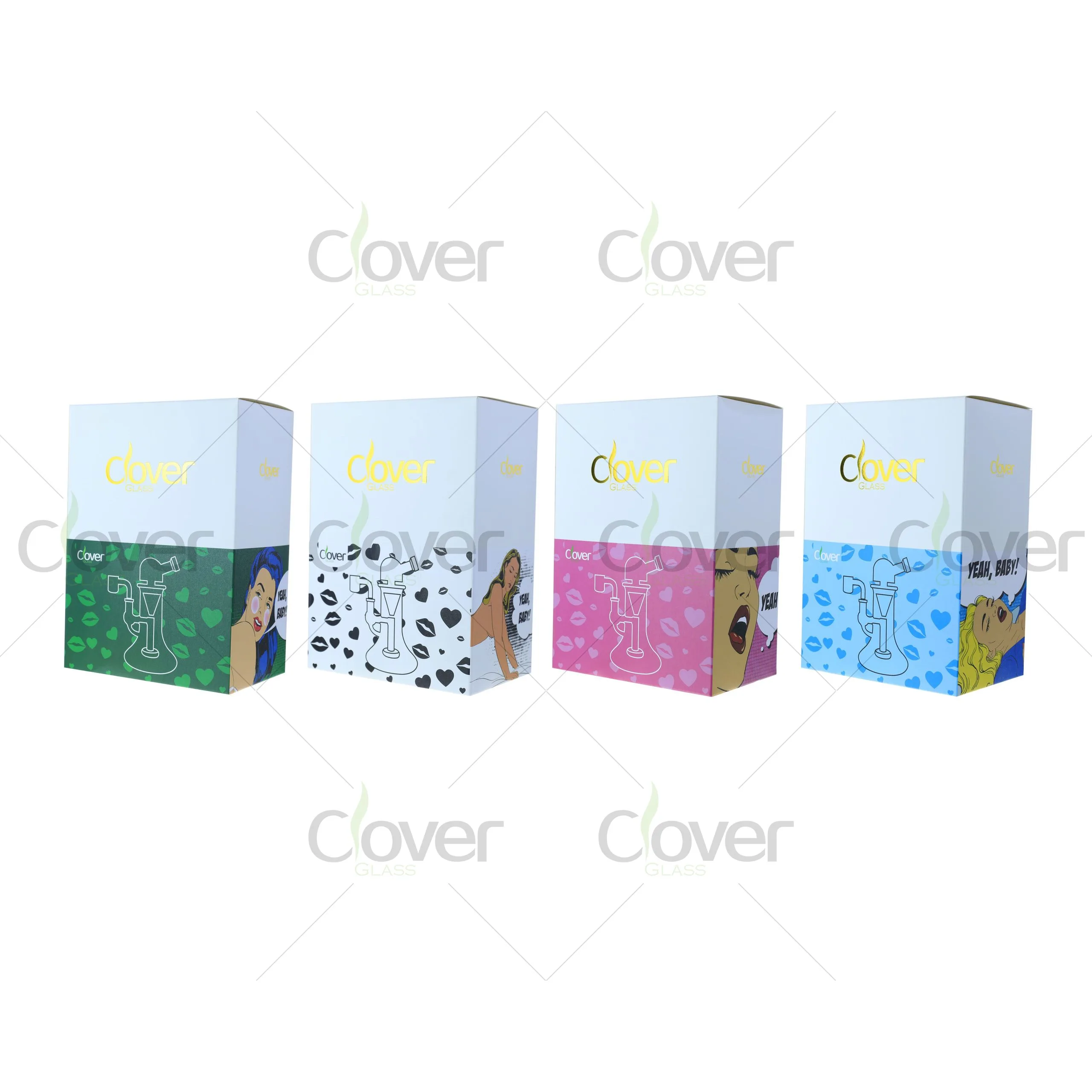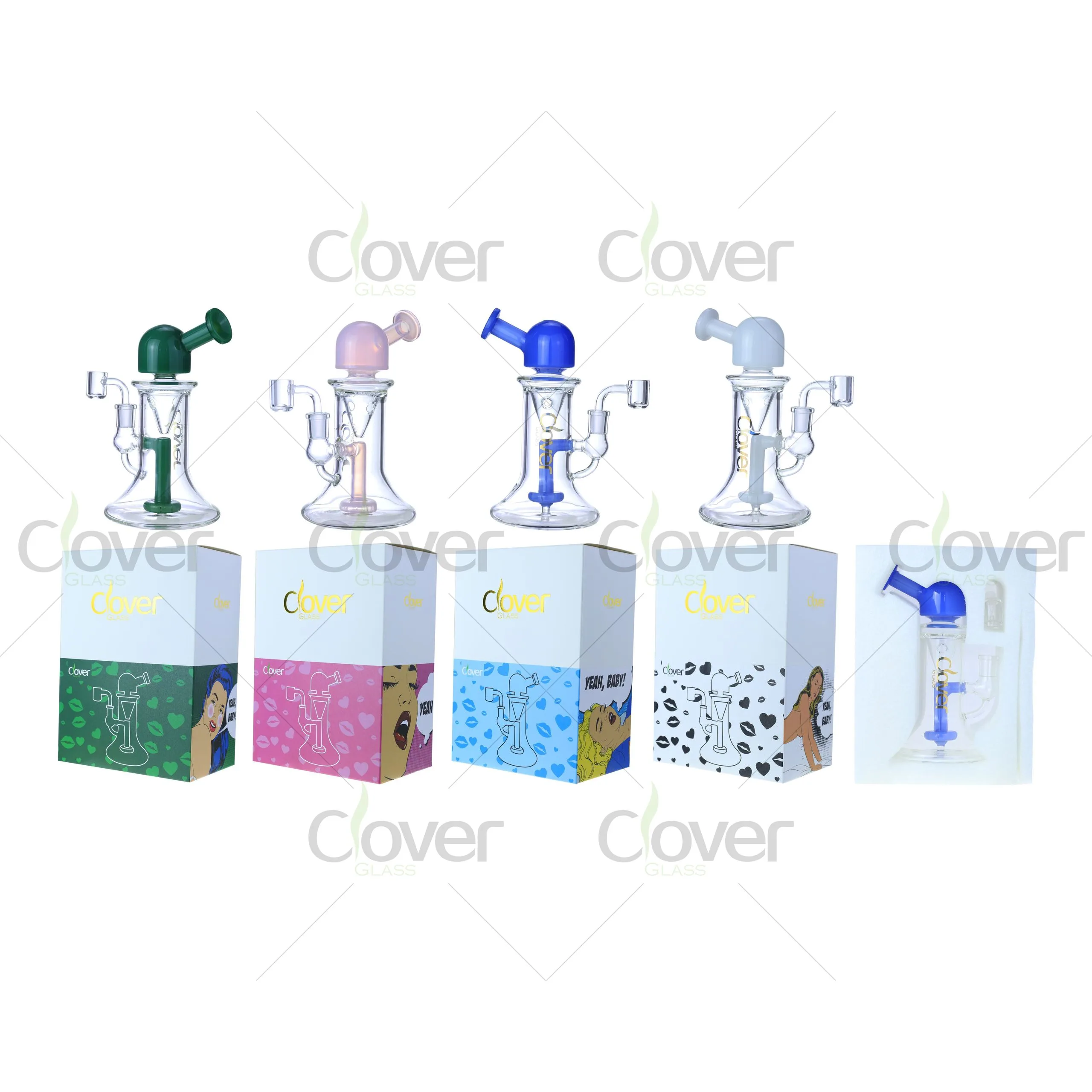 Multiple color accents are available, each packed in a Clover Glass branded retail box, making it ready for smoke shop shelves and wholesale distribution.