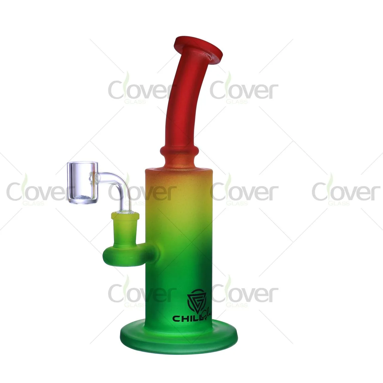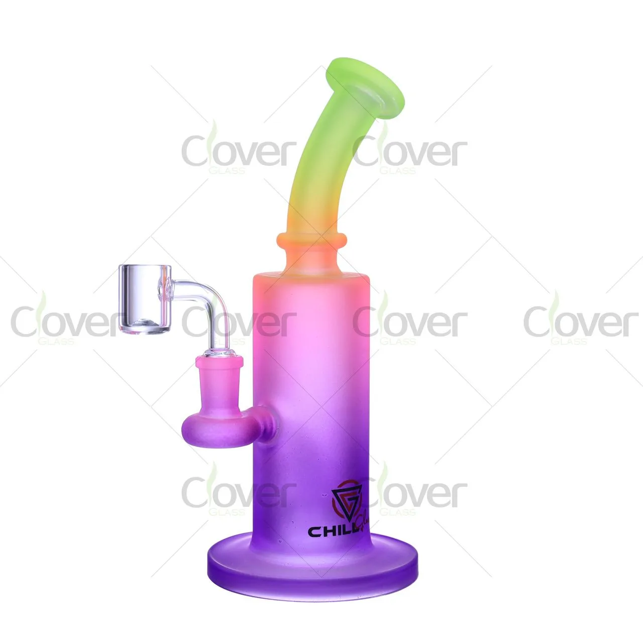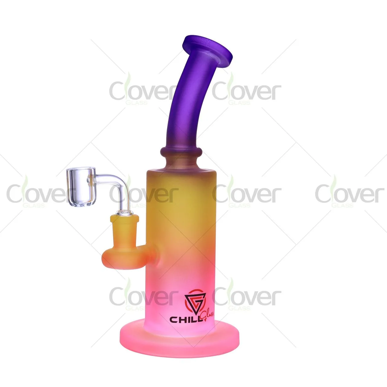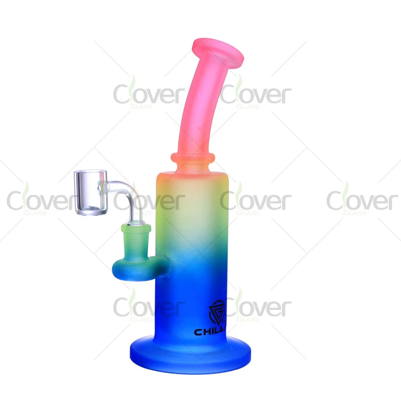 This 8.66-inch gradient dab rig brings vibrant style and compact performance into one eye-catching piece. Made from 5mm thick borosilicate glass, it features a frosted surface with dynamic multi-color fades, offering a fresh aesthetic that stands out in any collection or storefront.