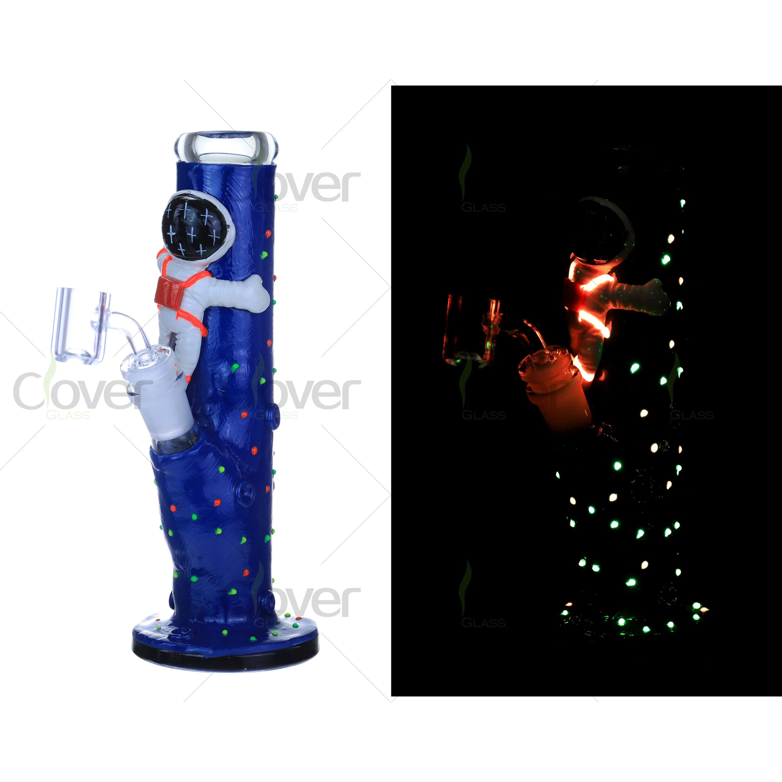 Launch your smoking experience into orbit with this 8.66-inch Astronaut Bong. Designed for space lovers and collectors, this 3D-painted glass rig features a hand-sculpted astronaut clinging to a cosmic blue chamber scattered with colorful UV-reactive stars. Flip off the lights and watch the nebula-inspired glow bring the whole piece to life.