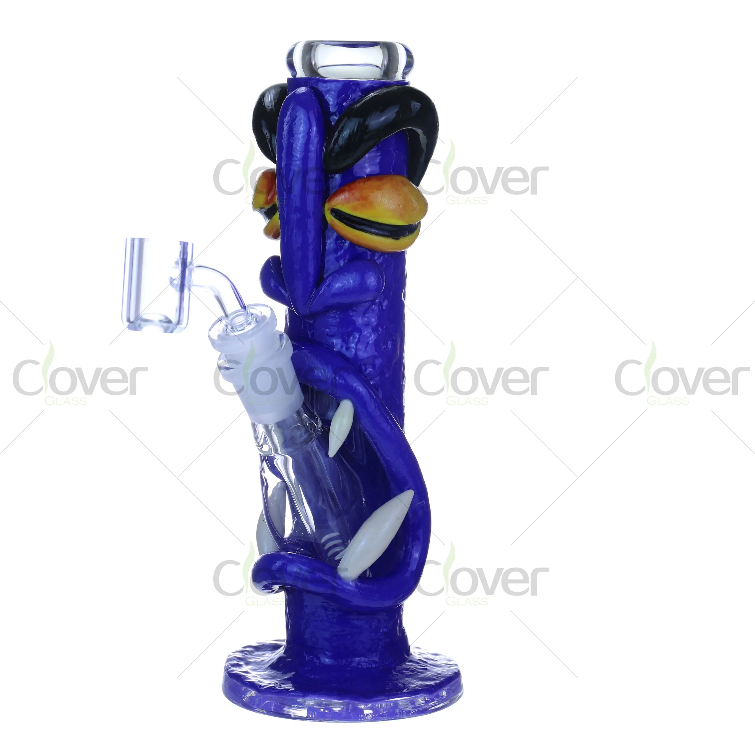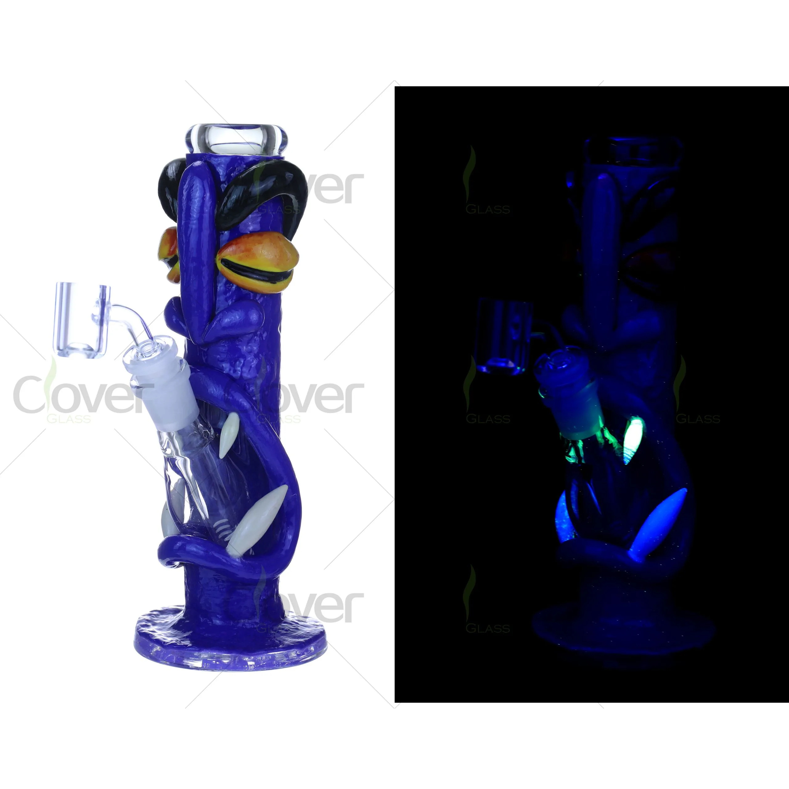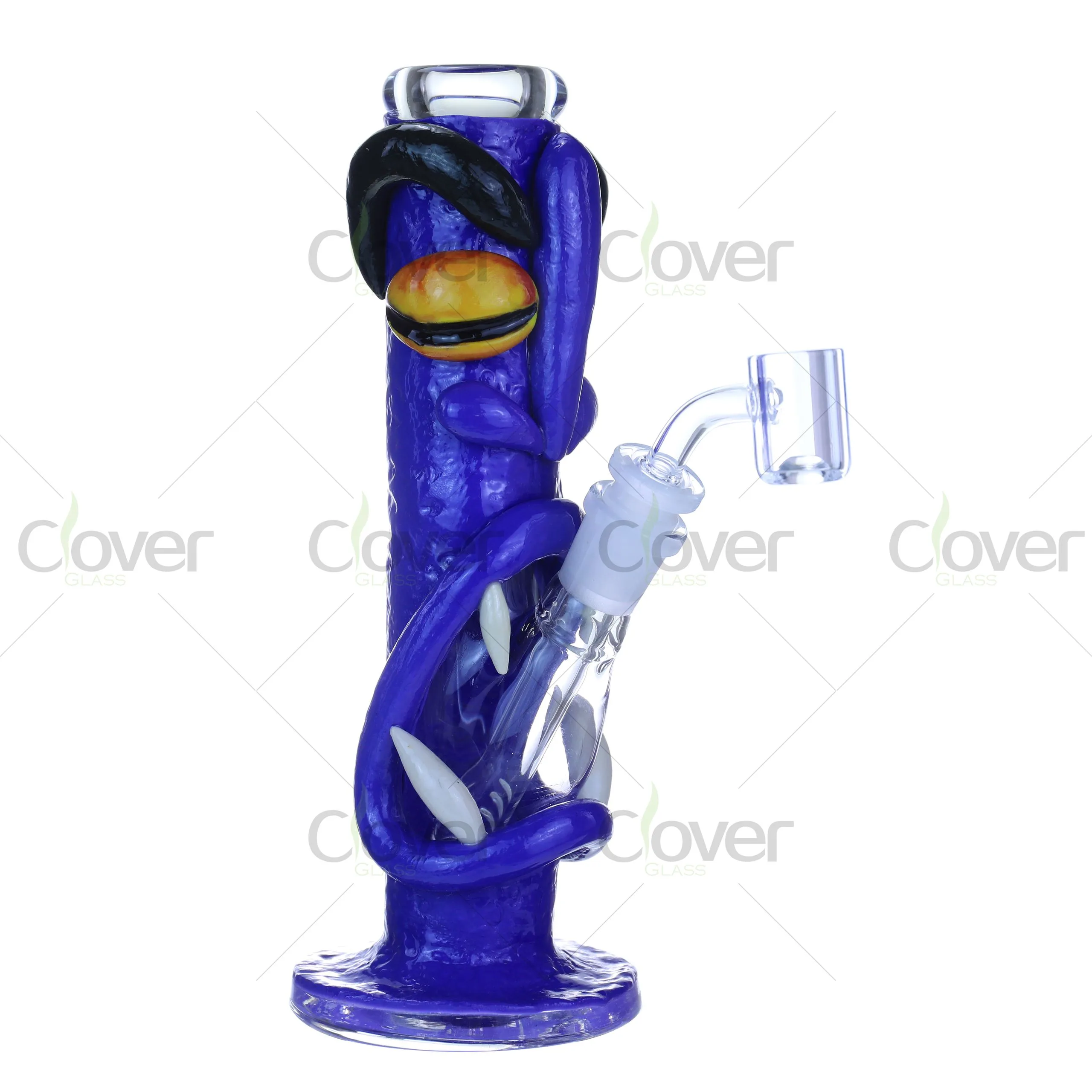 Meet the ultimate stoner guardian – a bold 8.66-inch monster-eye bong with attitude. Featuring a sculpted eye-roll expression, curved claws, and deep-blue body, this piece glows under UV light to create a stunning visual in dark settings. Its hand-painted 3D details make it both a functional rig and a collectible art piece.