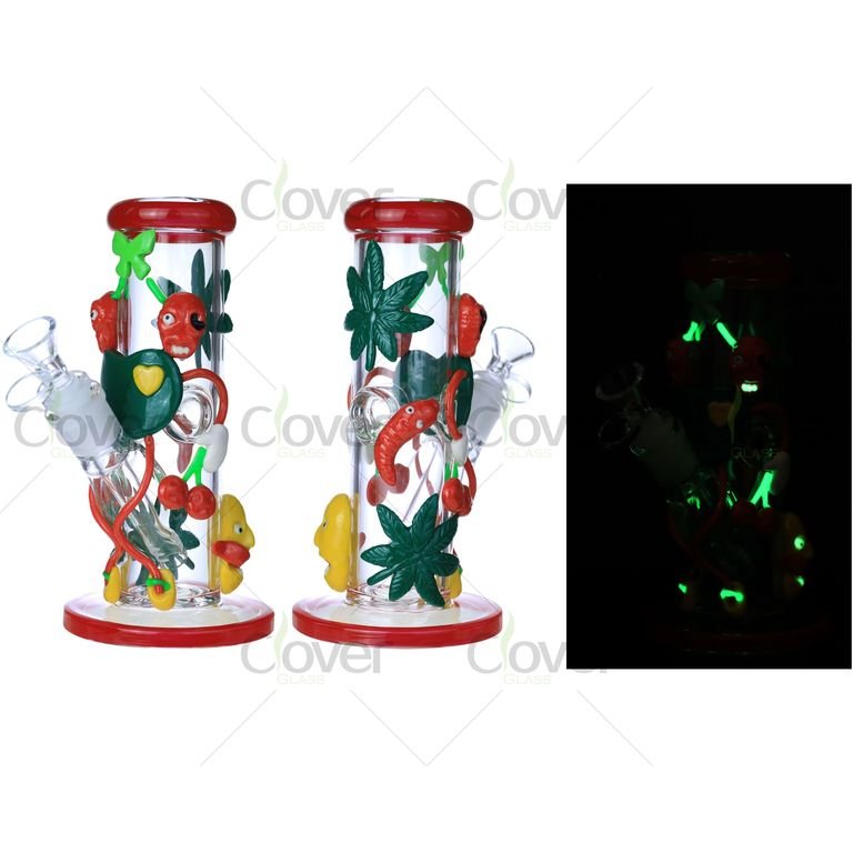 Bring playful energy to your sessions with the 9.05-inch Cartoon Fruit Glass Bong (BK-5072). This creative piece features a colorful hand-sculpted character made of fruits like cherries, bananas, apples, and a mischievous chili pepper, wrapping around a crystal-clear glass chamber. The vivid red accents on the mouthpiece and base make the piece pop visually, turning it into both a smoking tool and a collectible art toy.