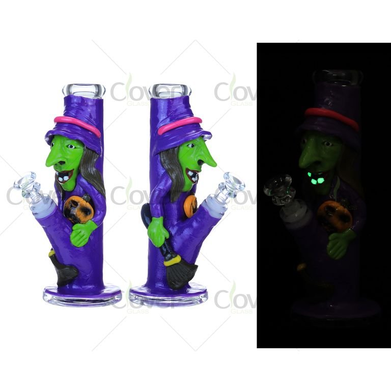 9.05″ Glow-in-the-Dark Witch Bong – Halloween Theme | 5mm Thick Handcrafted Glass Water Pipe