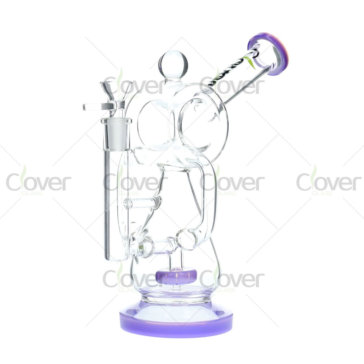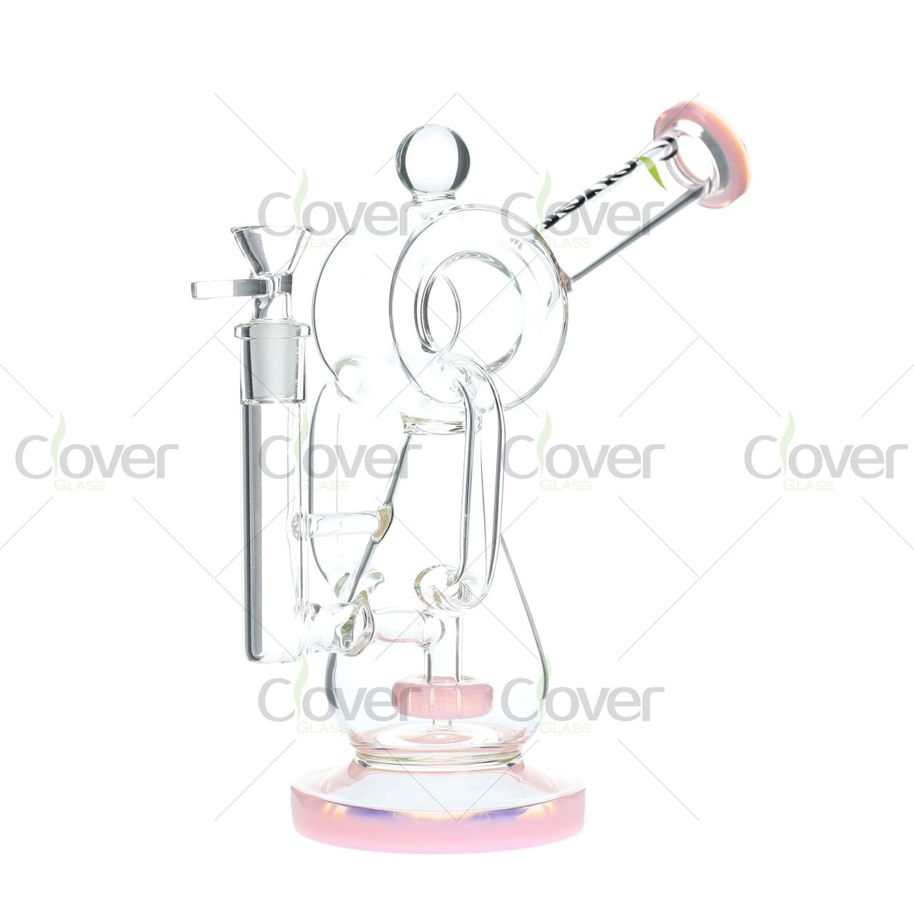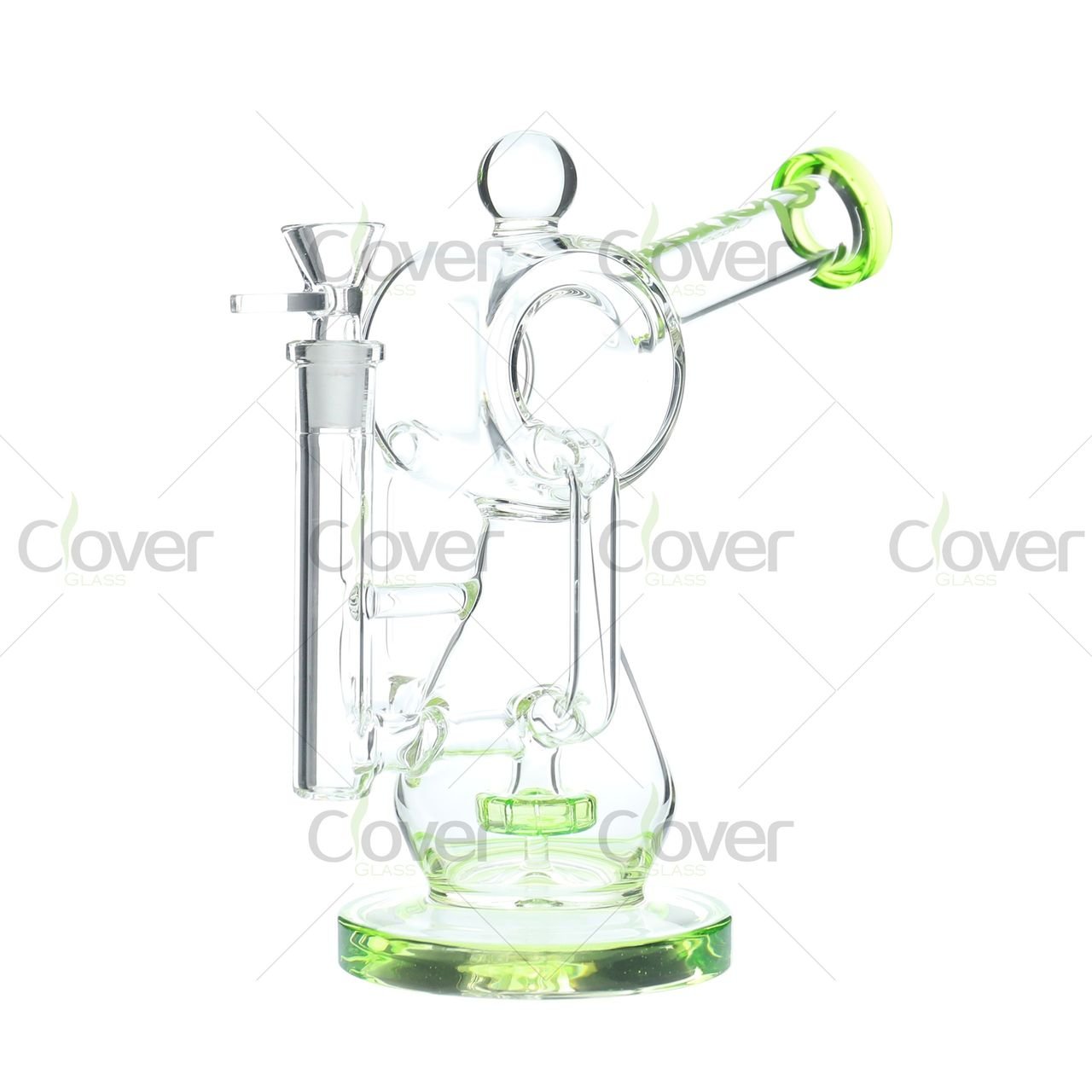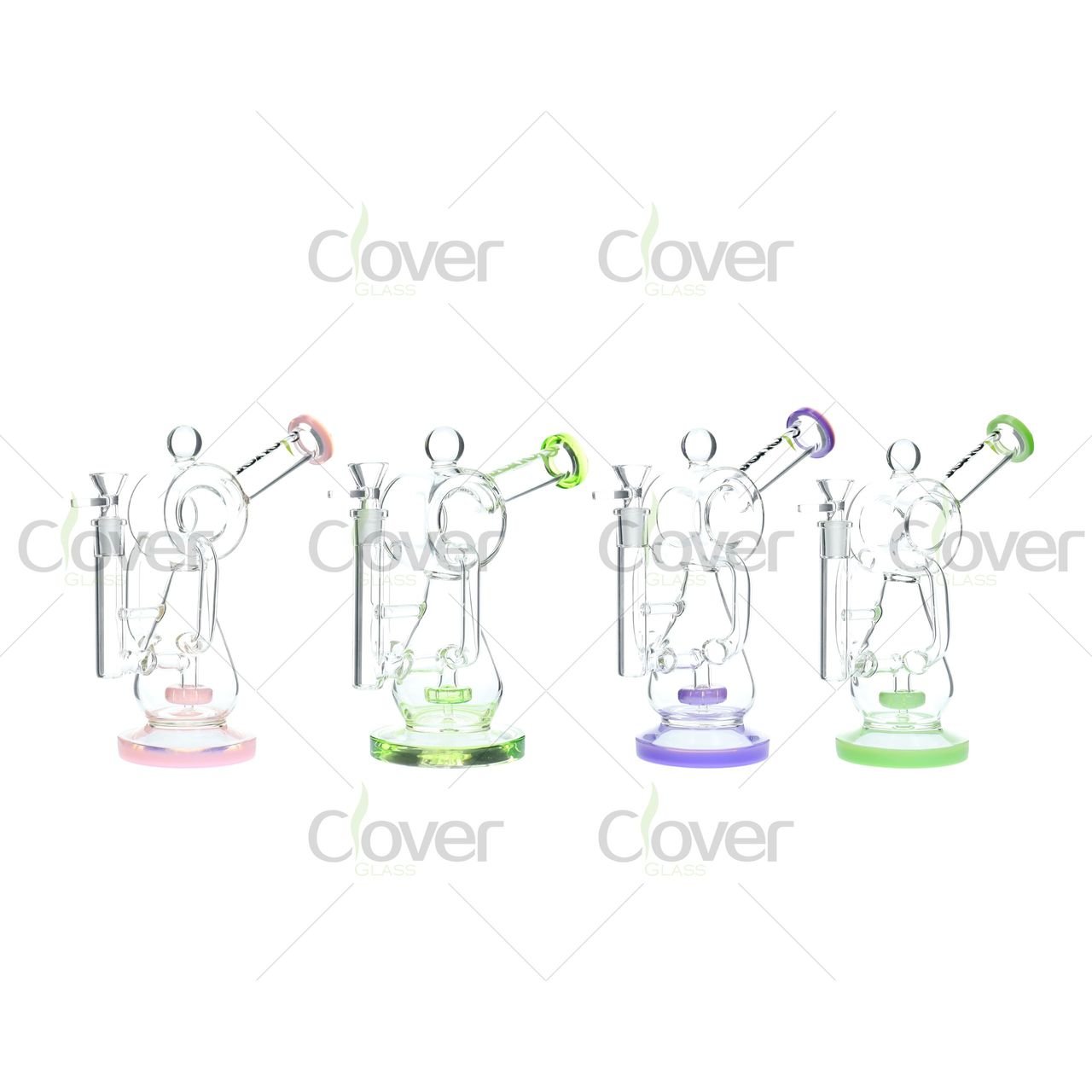Bring motion and style together with the 9.45" Color Accented Recycler Dab Rig by Clover Glass. This dynamic piece features an artistic loop recycler design that not only catches the eye but also enhances airflow and water filtration for ultra-smooth hits.