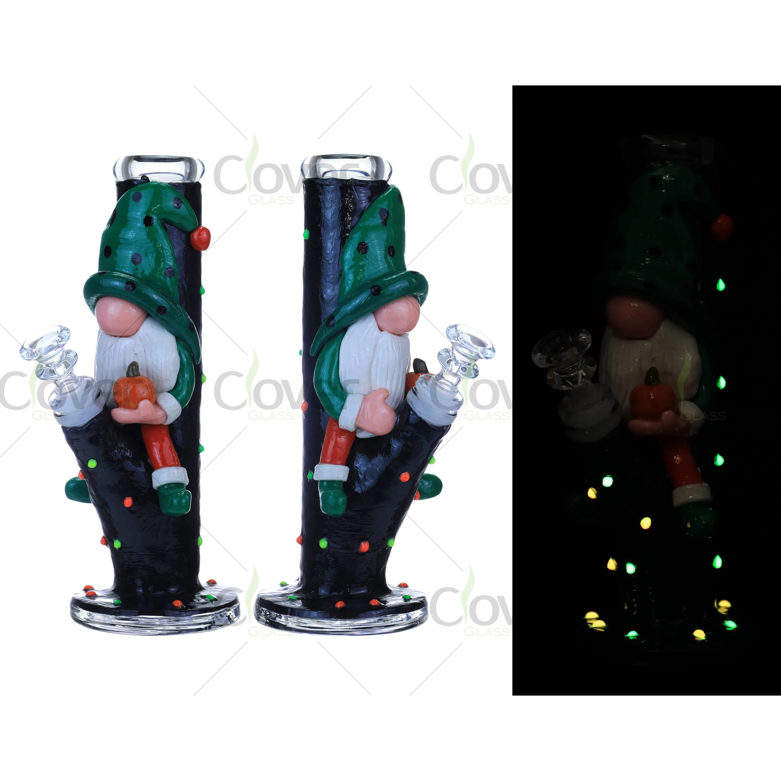 9-Inch Glow-in-the-Dark 3D Printed Bong with Santa Gnome Design – 5mm Thick by Clover Glass