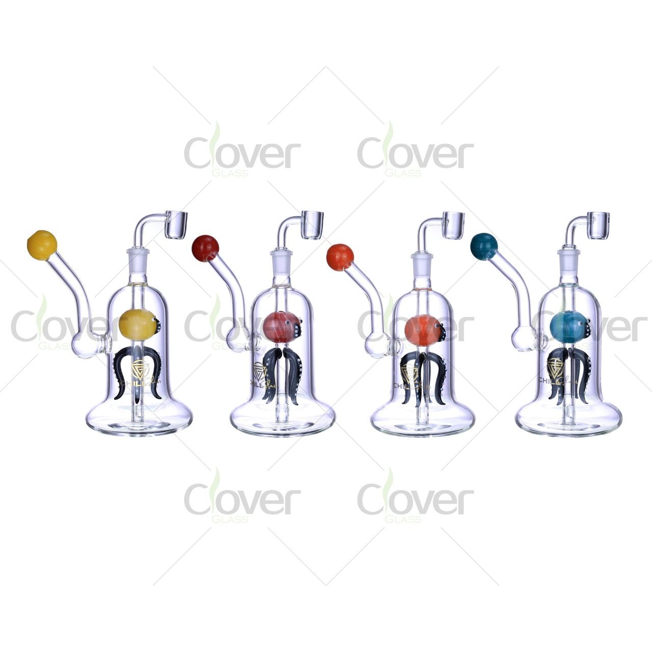 The bent neck design enhances comfort during use and helps prevent splashback, making it ideal for daily sessions. Each rig features a different vibrant octopus color – including yellow, red, orange, and teal – adding unique character to every piece.