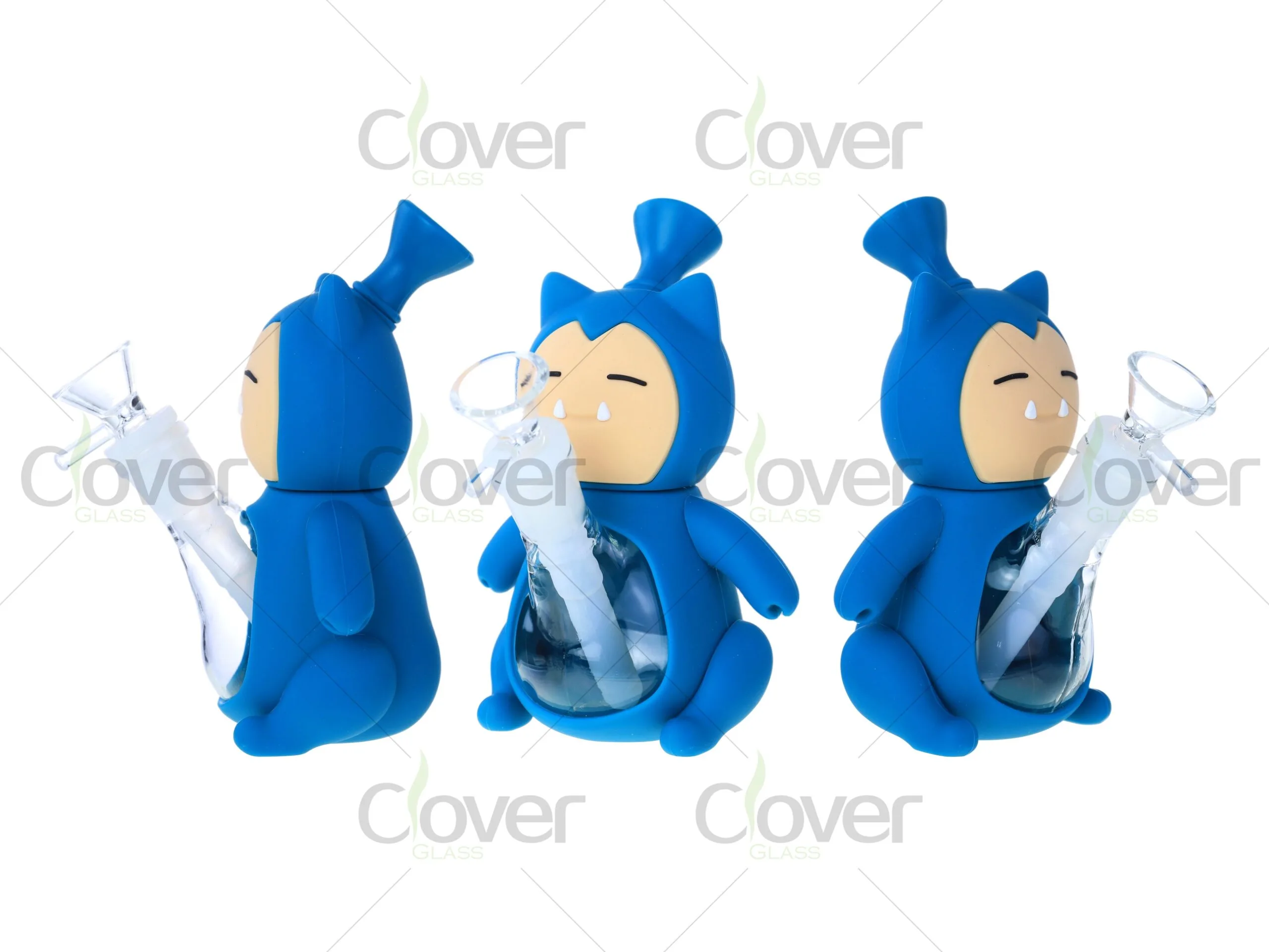 Cartoon Silicone Water Pipe 153mm | Blue Character Silicone Bong with Glass Bowl by Clover Glass