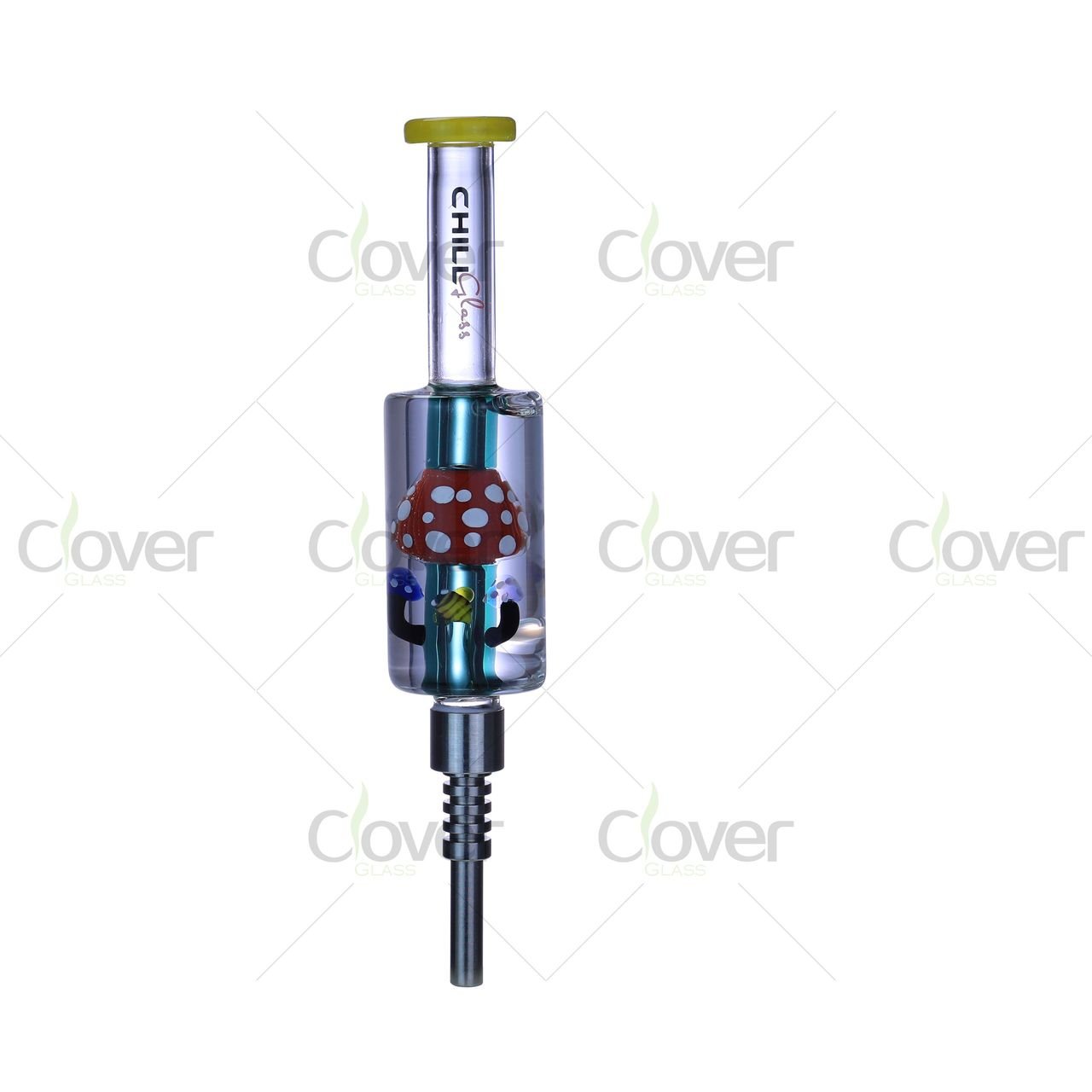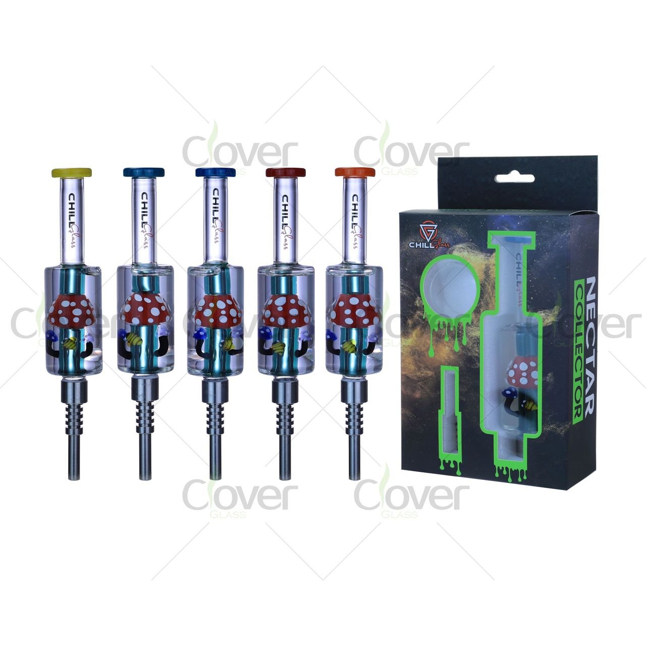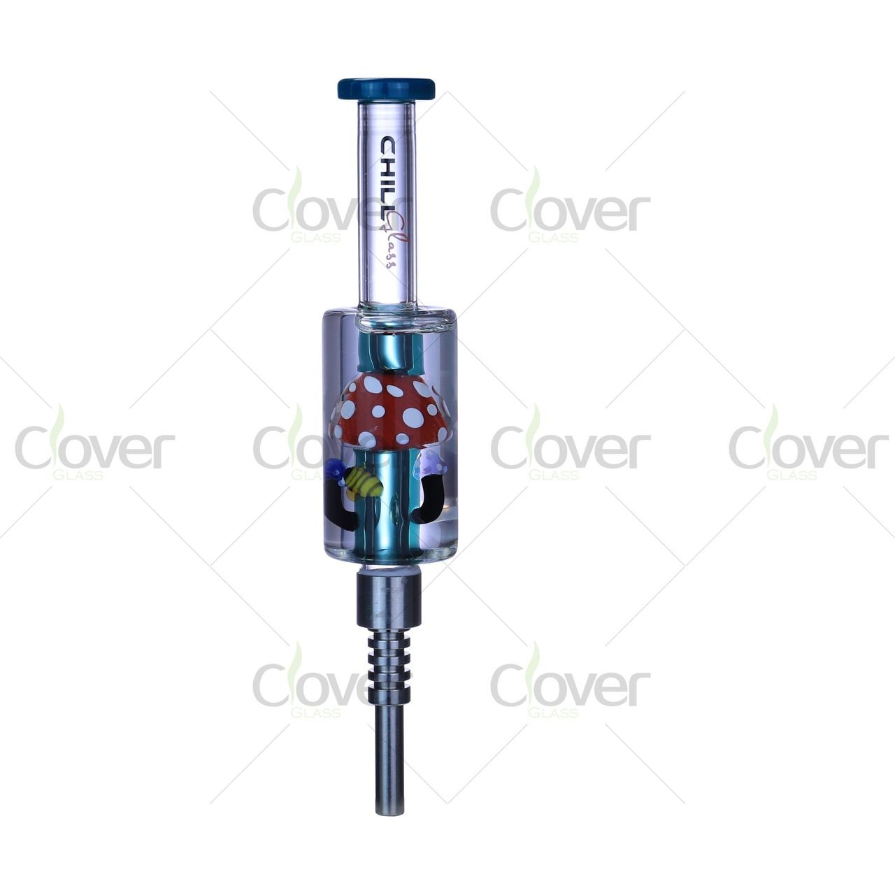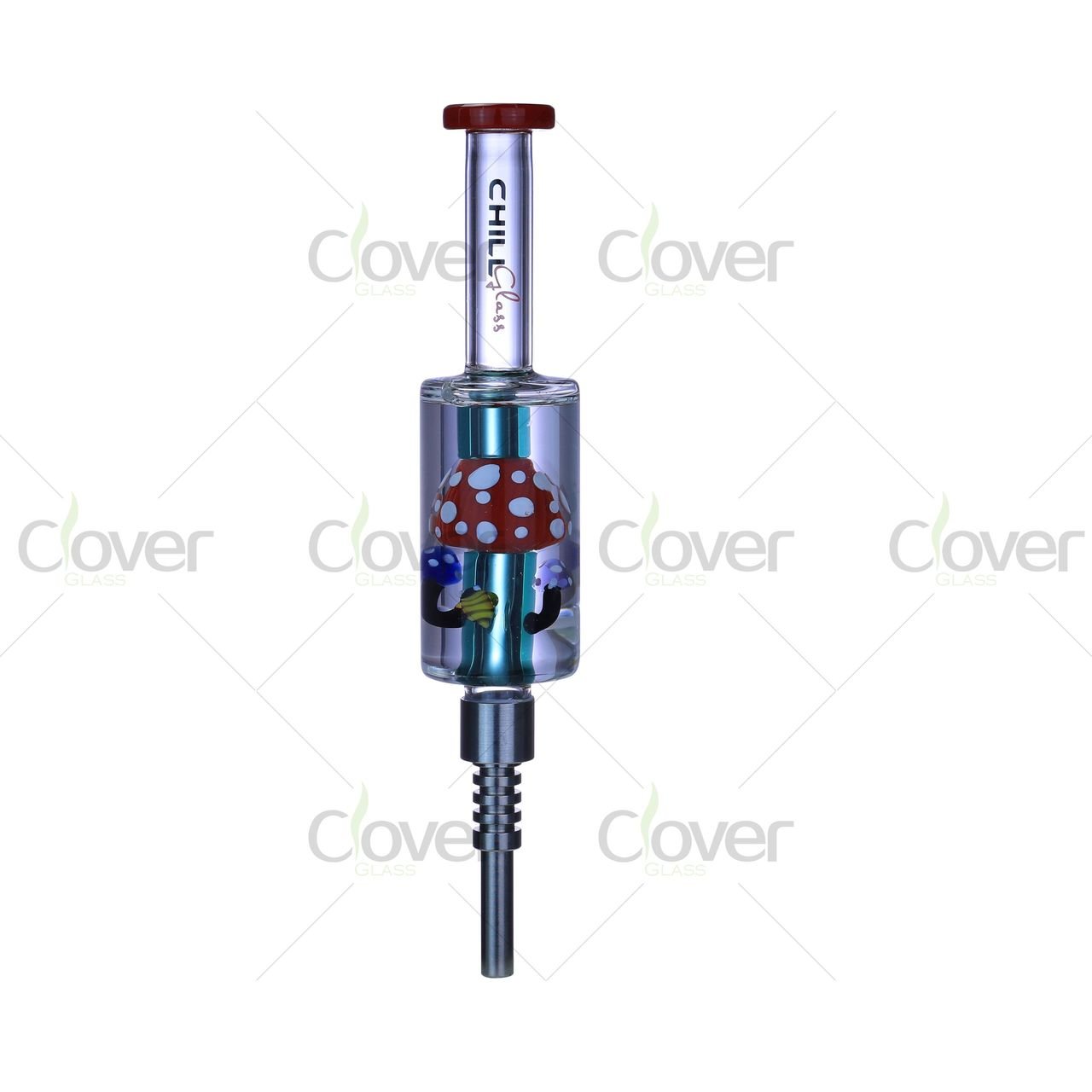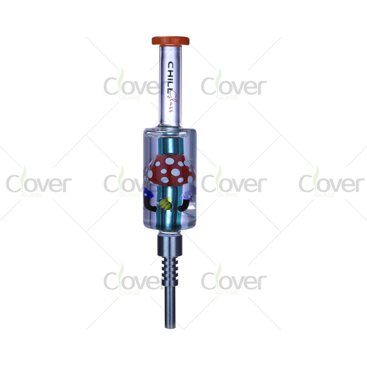 Add a touch of whimsy to your dabbing setup with the Chill Glass 8” Mushroom Design Nectar Collector Kit. This unique piece features a handcrafted mushroom sculpture inside the chamber, offering both function and visual appeal.