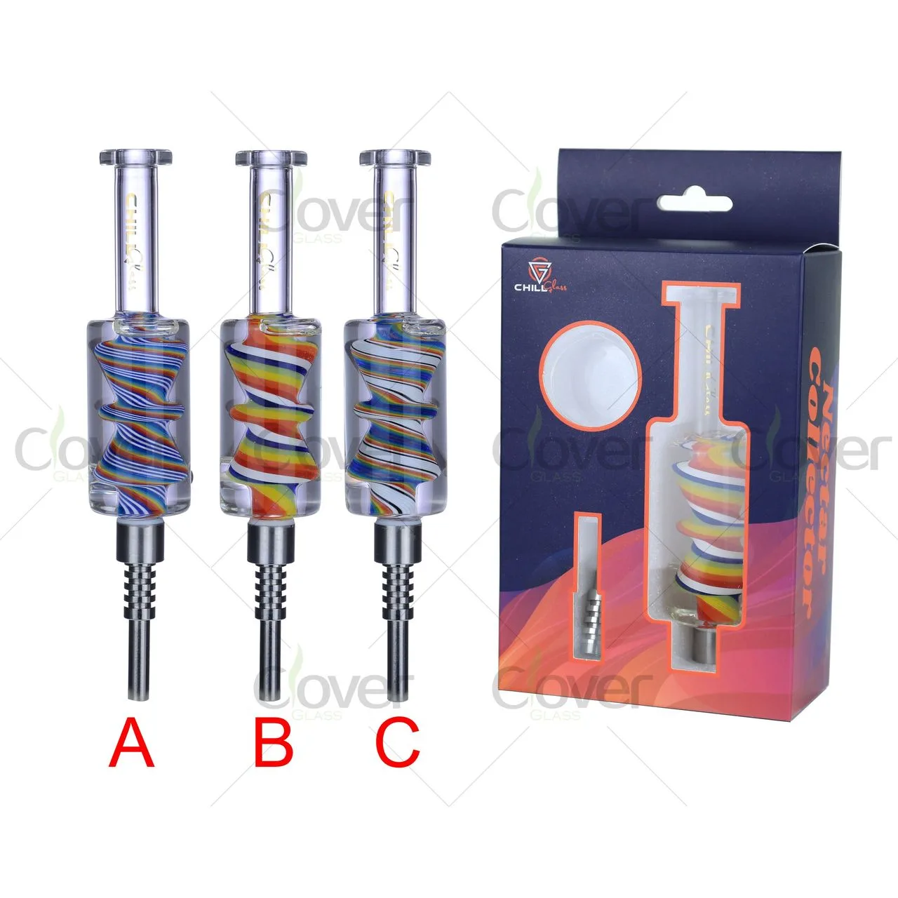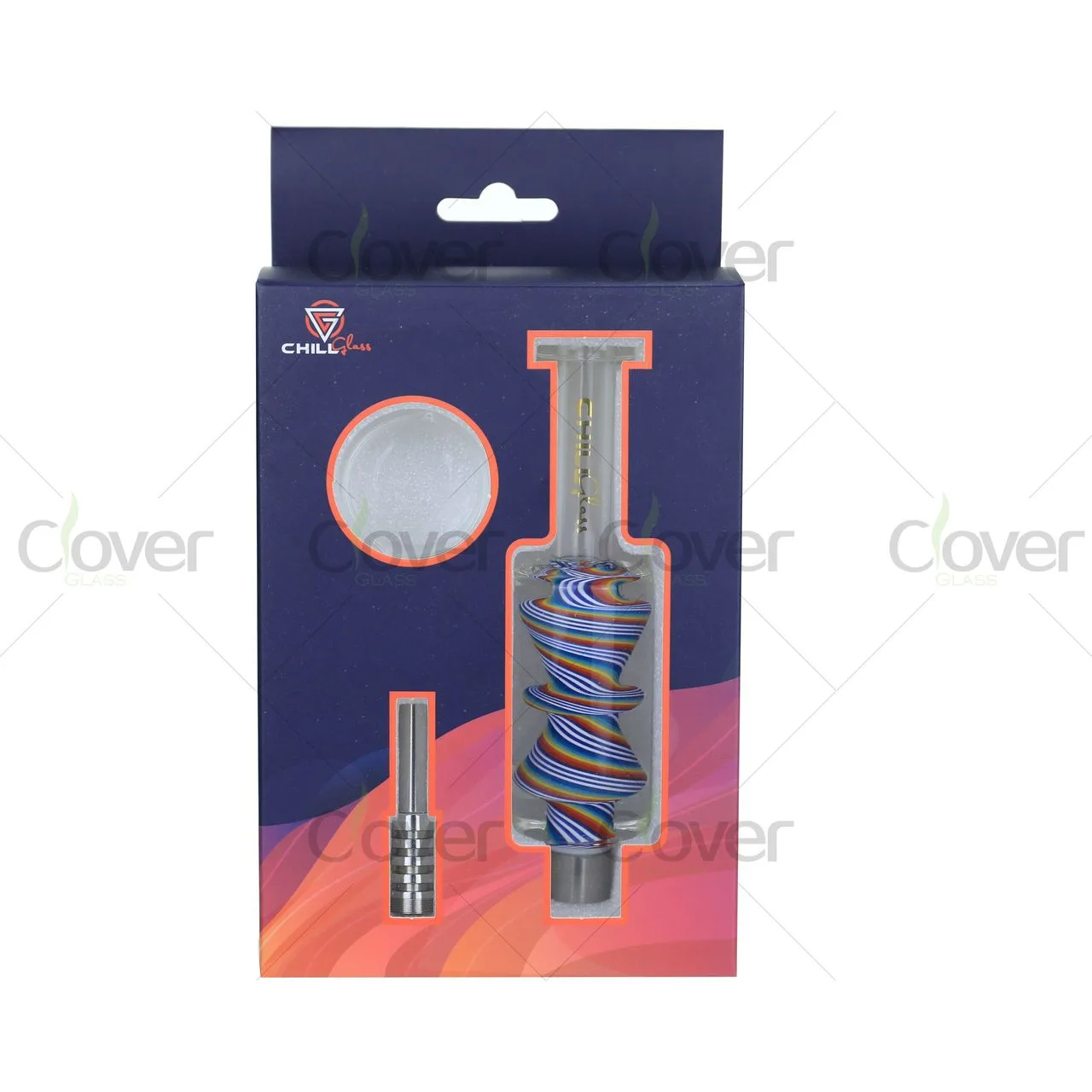 Chill Glass 8” Rainbow Swirl Nectar Collector Set with Titanium Tip and Gift Box