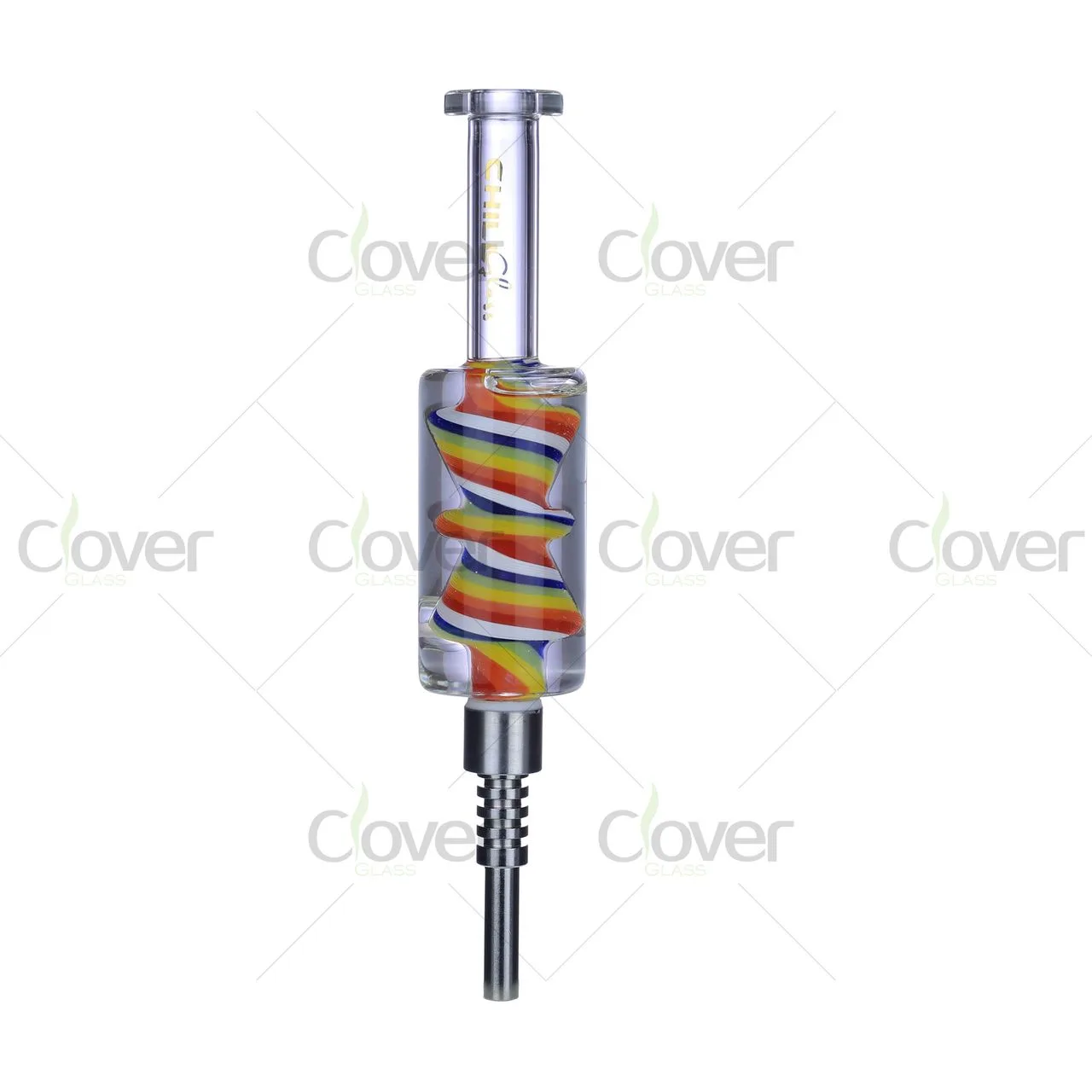 Bring color to your dabbing sessions with the Chill Glass 8” Rainbow Swirl Nectar Collector. This vibrant piece features a twisted swirl core design encapsulated in thick borosilicate glass, delivering both style and function.