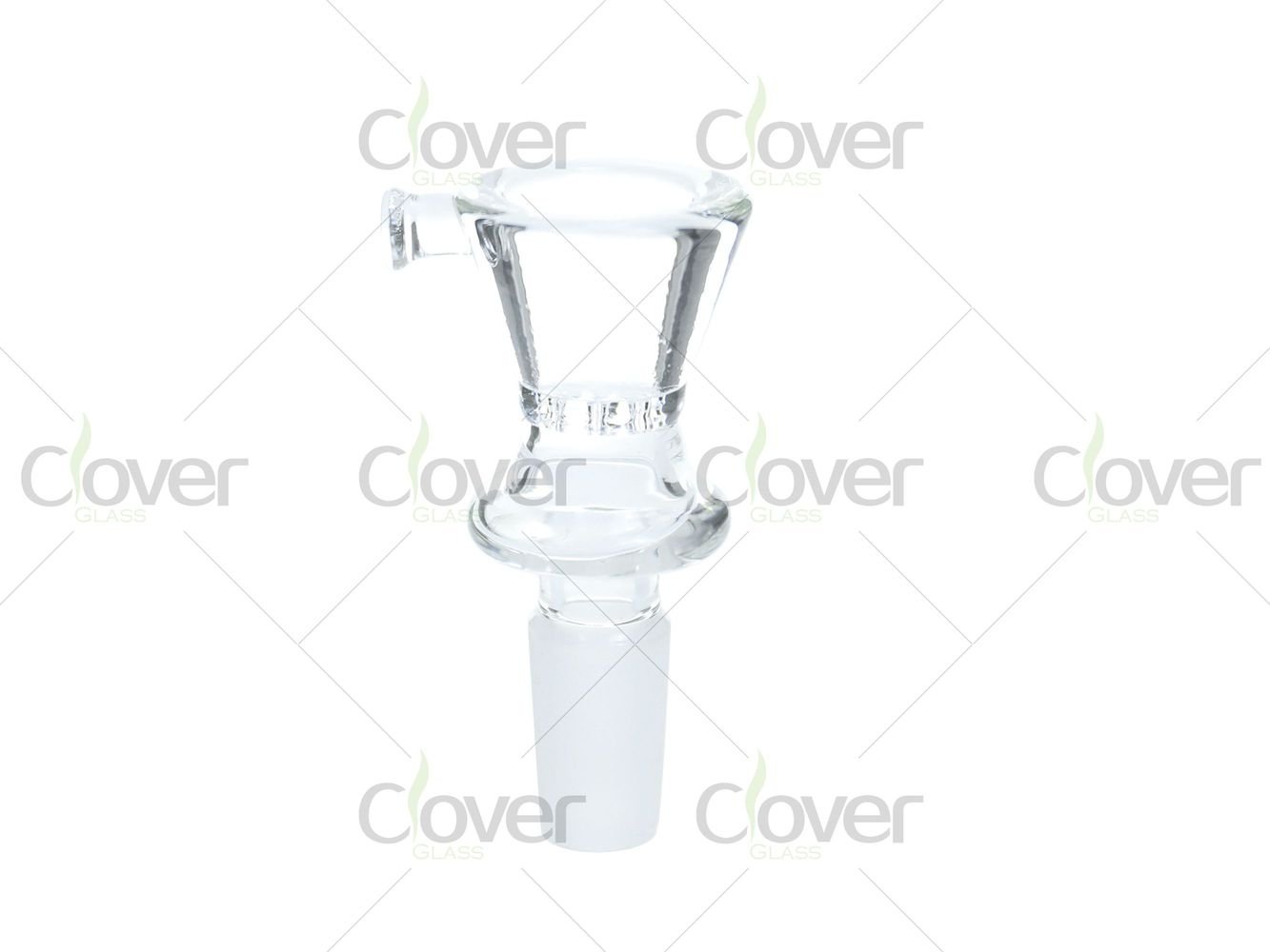 A small fused side handle is attached near the upper bowl wall, allowing safe handling and easy removal. The bowl connects through a standard 14mm frosted joint, compatible with most glass water pipes.