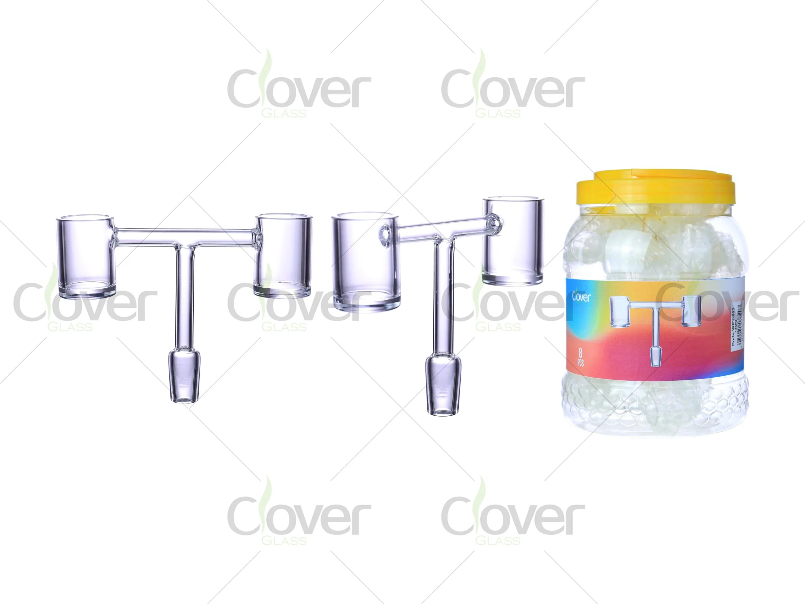 Crafted from high-quality quartz with full weld joints, this double head banger ensures excellent heat retention, easy cleaning, and a smooth, flavorful experience. It’s packaged in a bulk 8-pack jar, perfect for retailers or frequent dabbers.