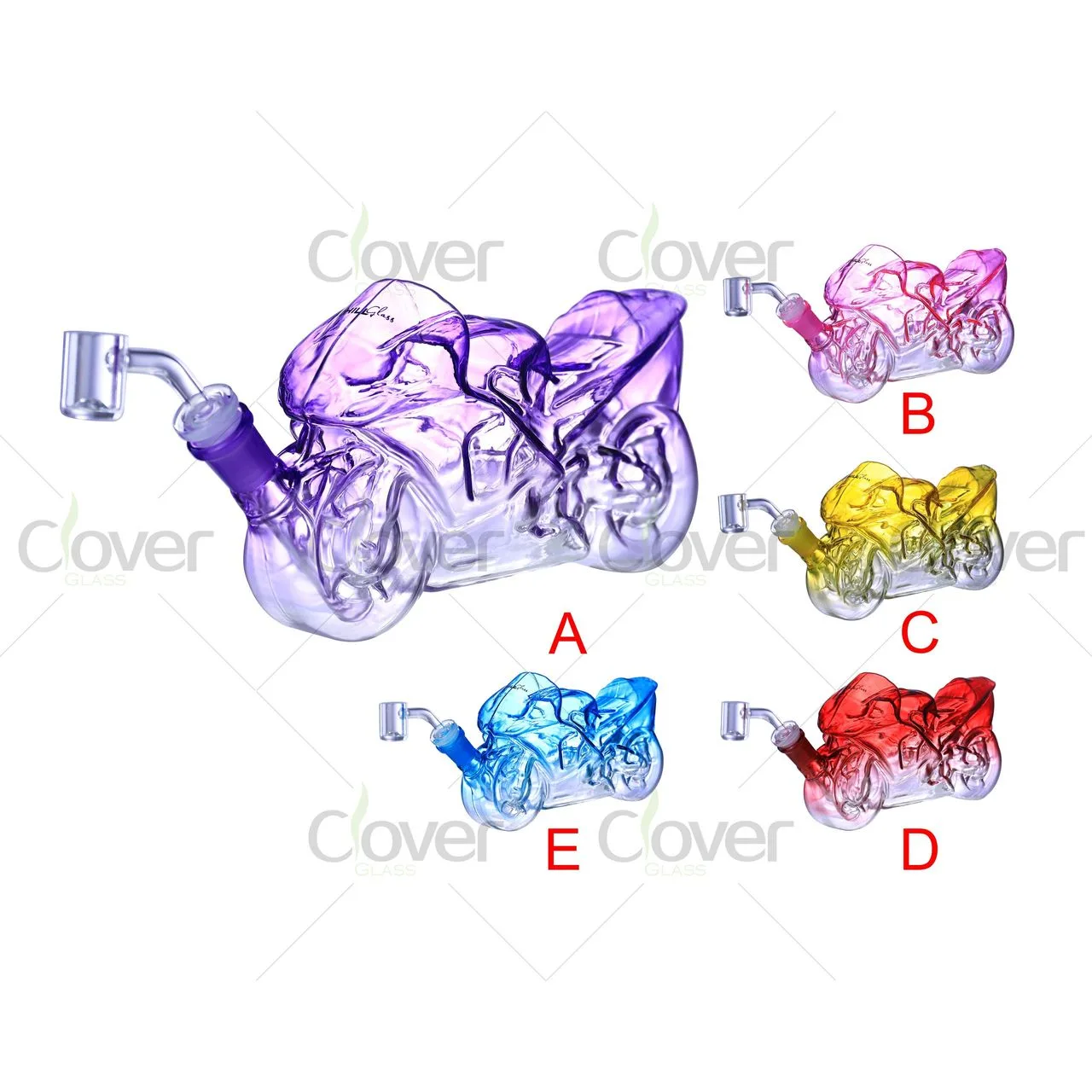 Clover Glass 10.82″ Motorcycle Shape Water Pipe – Unique 5mm Thick Glass Dab Rig for Style & Function