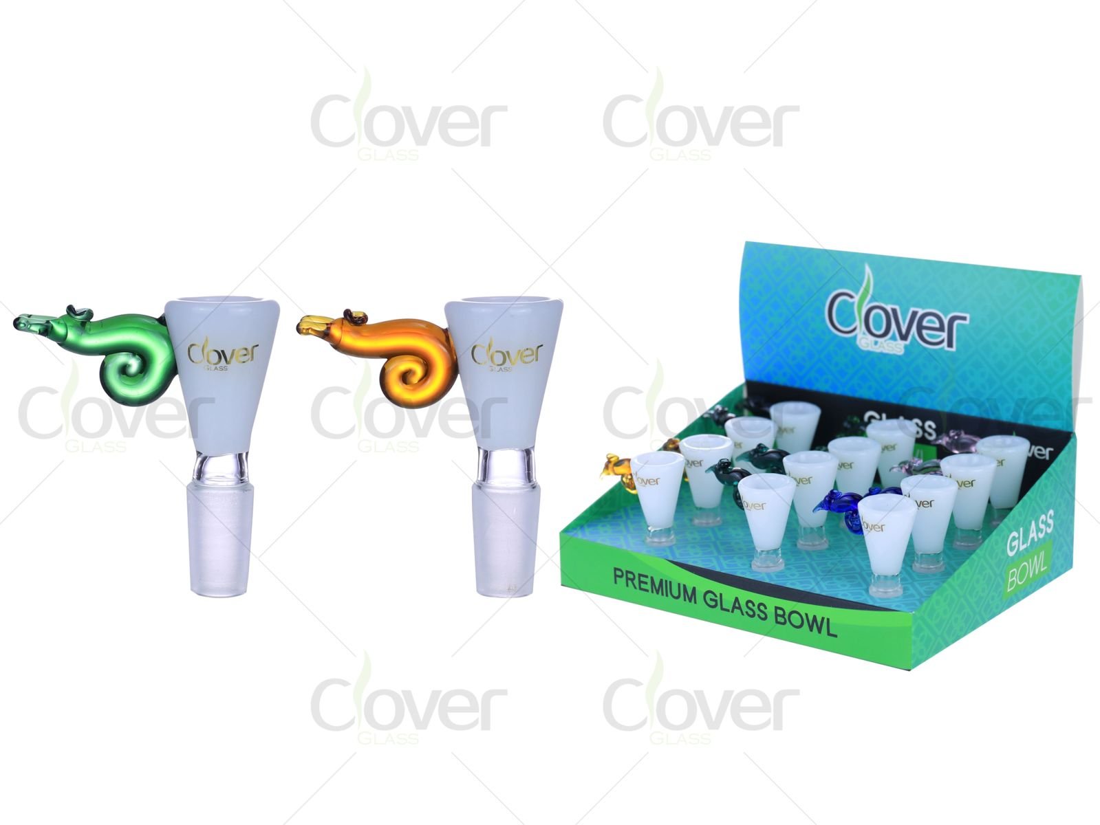 This glass bowl features a tall frosted cone-shaped bowl head combined with a decorative curled animal-style side handle, creating a playful yet premium visual identity that stands out instantly on retail shelves.