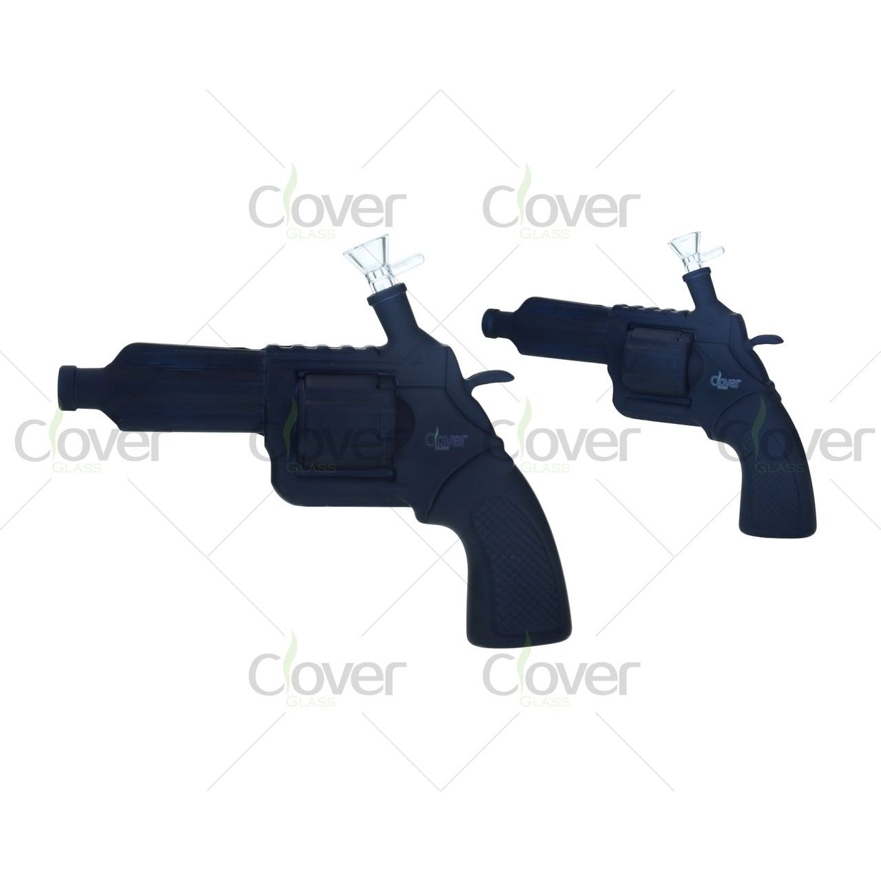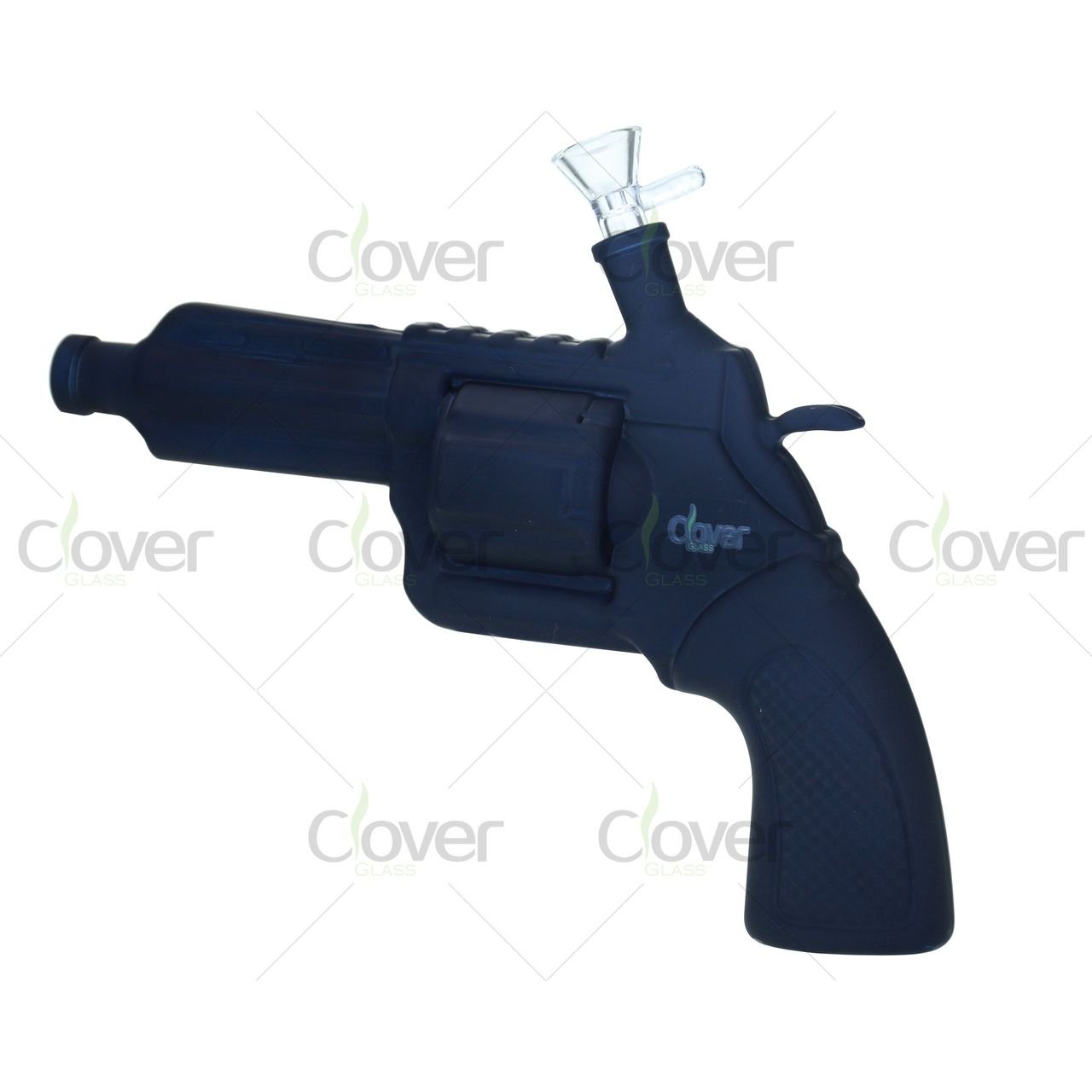 Bring some bold character to your collection with this revolver-inspired water pipe from Clover Glass. Crafted in the shape of a handgun, this eye-catching piece features a 14mm female slide joint at the barrel and is made from 5mm thick borosilicate glass for exceptional durability.