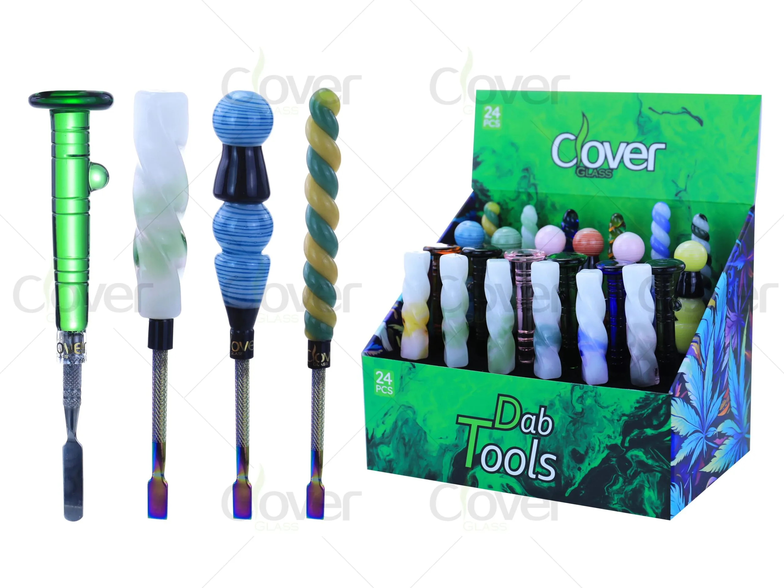 Our Glass Dab Tools display provides a perfect blend of style and function, making it a great addition to your retail inventory. Partner with Clover Glass for reliable products, competitive pricing, and outstanding after-sales support to help grow your business.