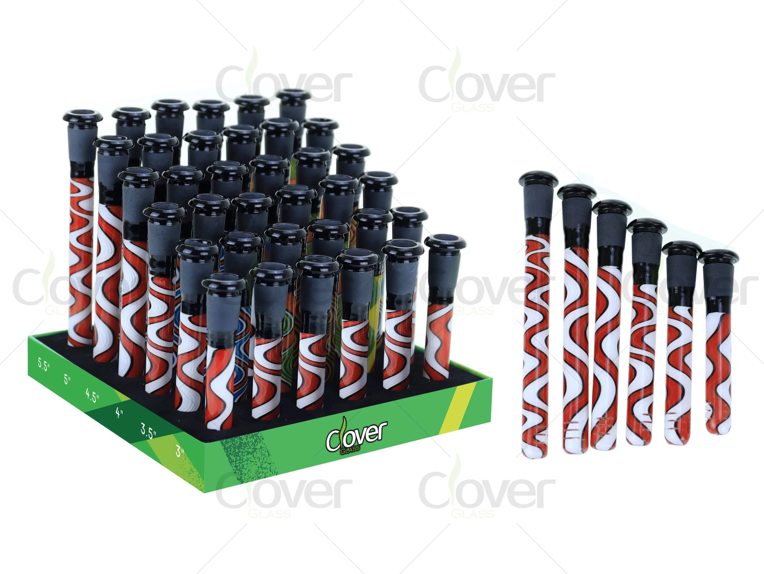 By choosing Clover Glass, you ensure that your customers receive top-notch smoking accessories that are built to last. Our Glass Down Stem Set combines functional performance with eye-catching design, making it an ideal addition to your inventory. With affordable wholesale pricing, a wide variety of sizes, and a superior level of craftsmanship, Clover Glass is the trusted choice for bongs, dab rigs, and other smoking accessories.