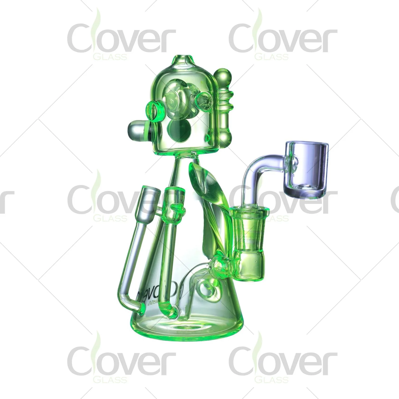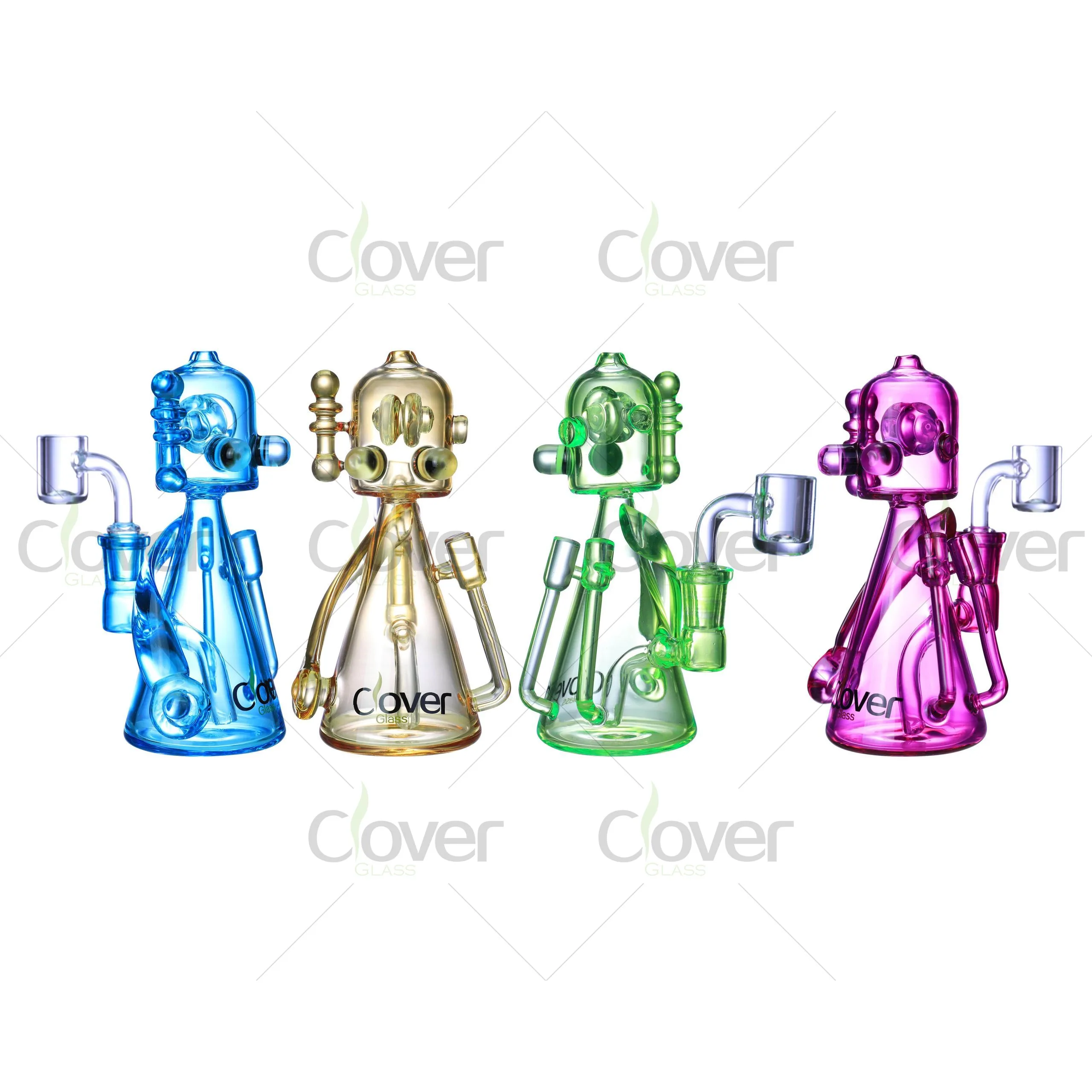 Introducing the Clover Glass Colorful Robot Glass Dab Rig, a striking combination of functionality and fun, designed for enthusiasts who appreciate both style and performance. This 5.9-inch tall dab rig features an eye-catching robot-inspired design, crafted from high-quality glass and featuring vibrant colors including blue, yellow, green, and pink. It’s designed with a 14mm male slide joint, perfect for those who want to enjoy smooth, flavorful dabs.