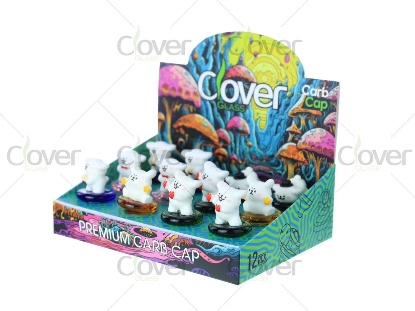 Each display includes 12 individual carb caps, packed in a full-color countertop display box, making it ideal for smoke shops, novelty sections, and impulse purchases.
