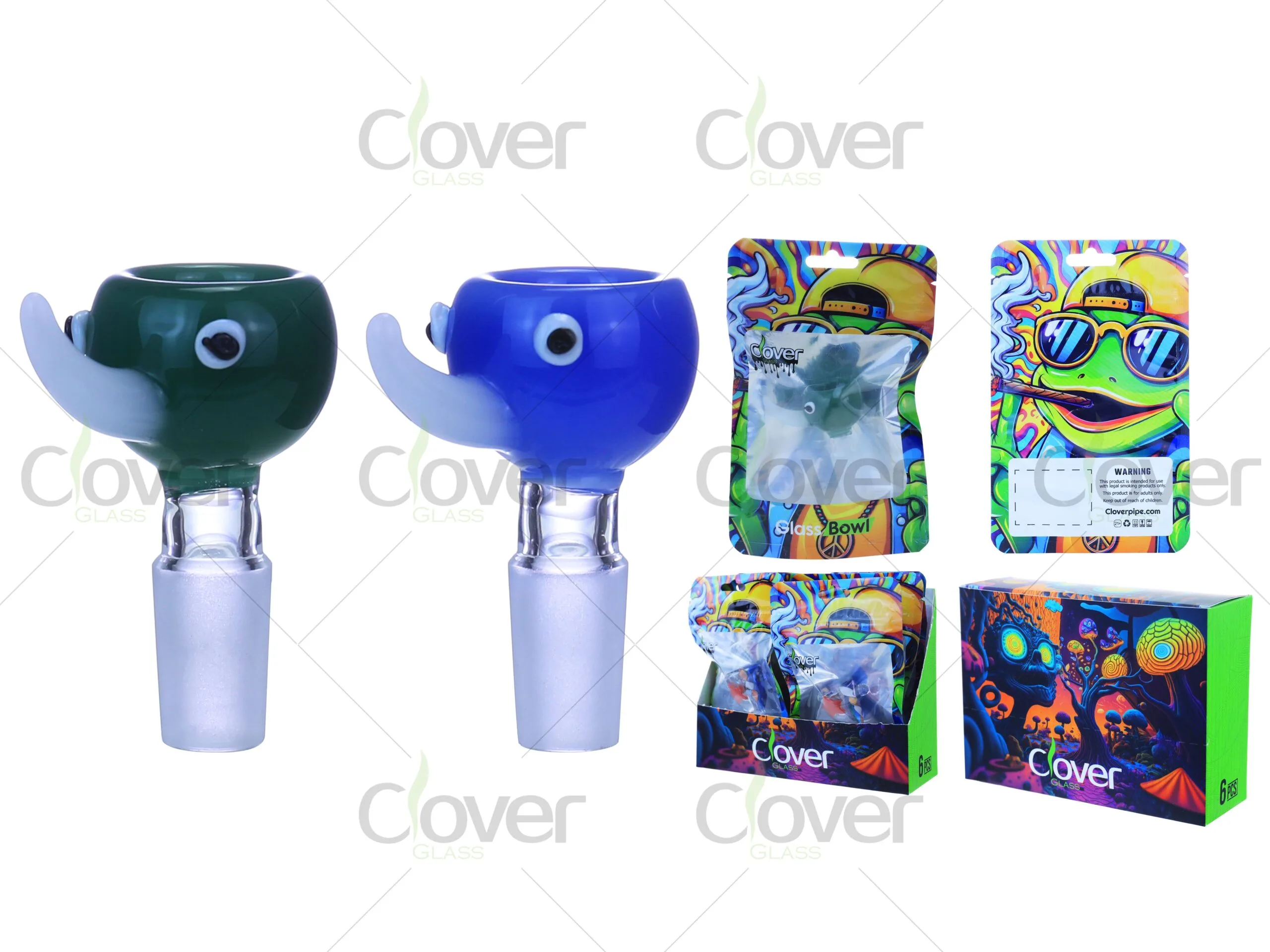 Bring a touch of creativity to your collection with the Clover Glass Elephant-Themed Glass Bowl! This unique handcrafted piece features an adorable elephant head design, complete with a curved trunk and expressive eyes, making it a standout accessory for any water pipe.