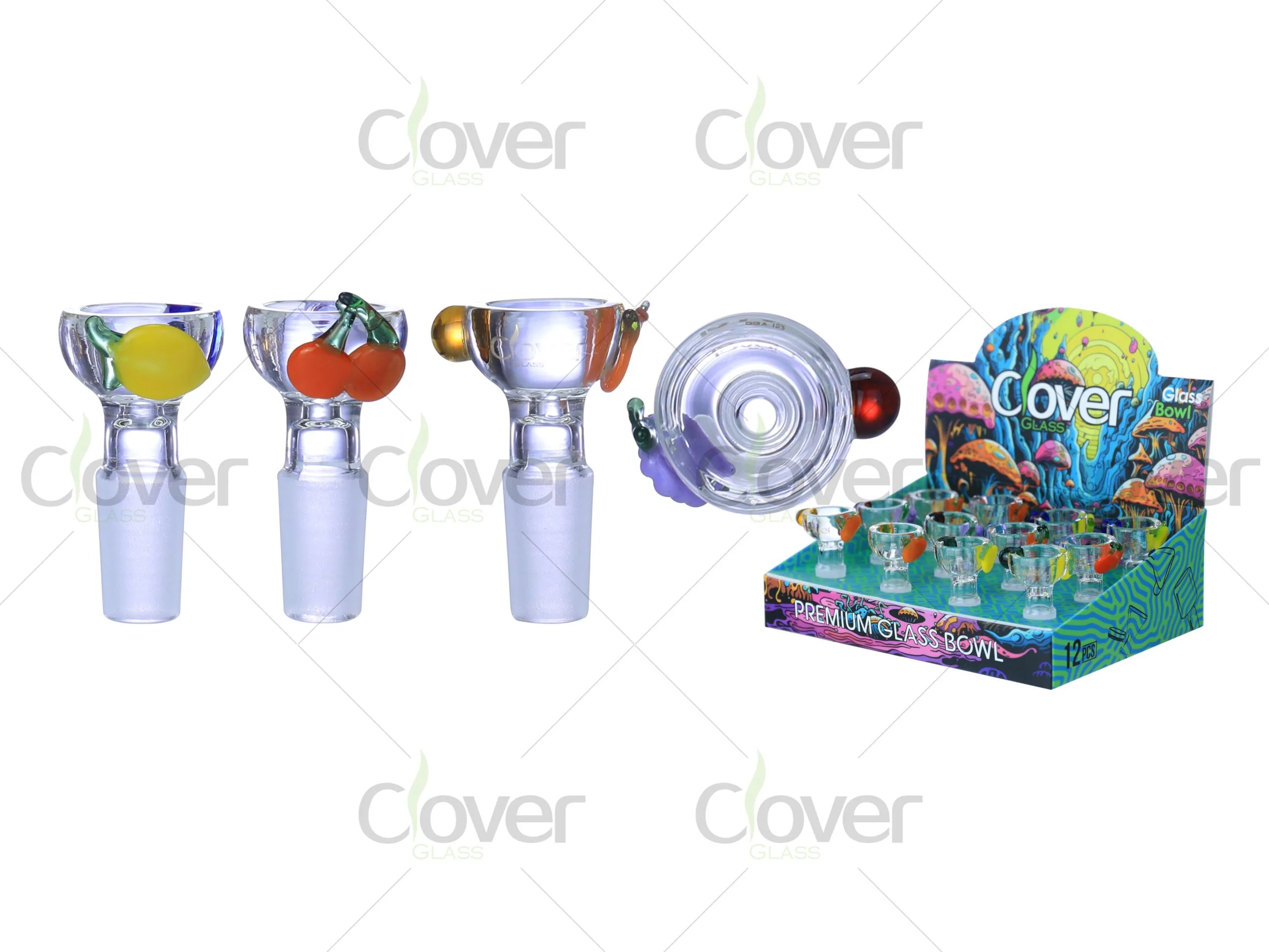 Brighten your smoke setup with the Fruit Handle 14mm Glass Bowl by Clover Glass — a playful fusion of craftsmanship and function.