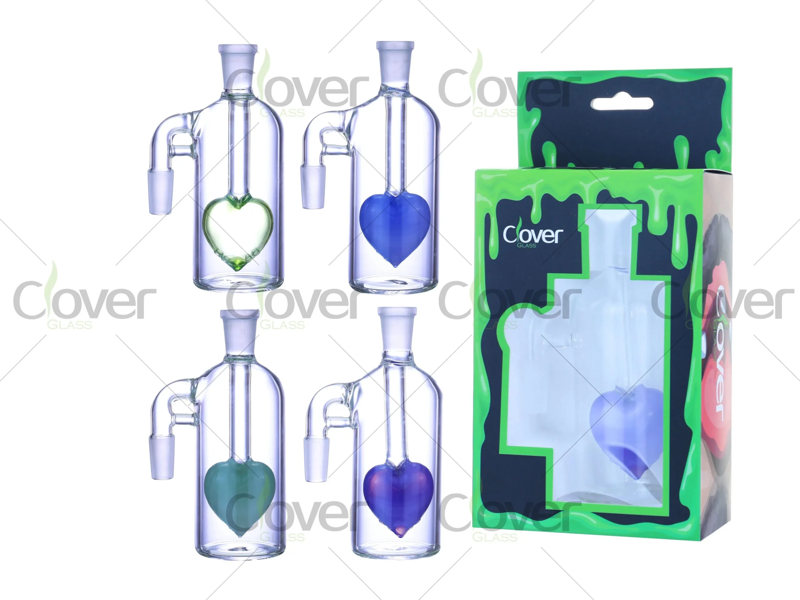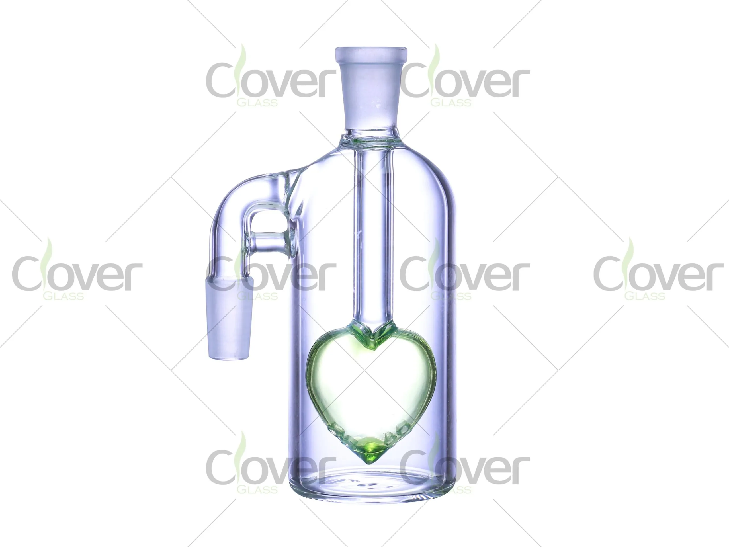 The Glass Ash Catcher brings a charming touch to your smoking setup with its heart-shaped design, available in vibrant colors such as green, blue, and purple. Standing at 5.0 inches in height, this ash catcher ensures a cleaner and smoother experience by effectively filtering out ash and debris. With 90° and 45° angle options, it is compatible with a variety of bongs and dab rigs. Made from durable borosilicate glass, it combines both style and functionality.