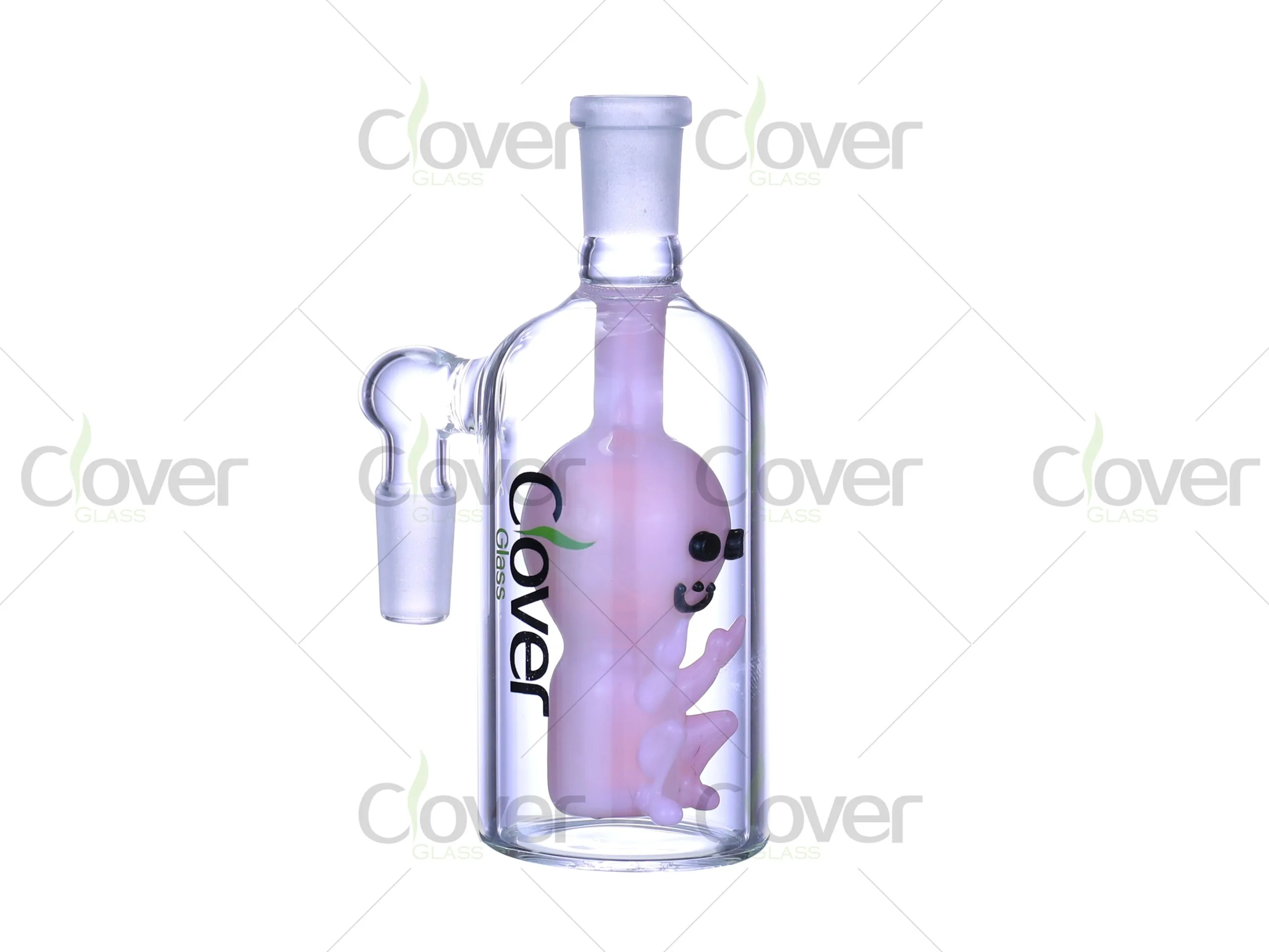 The Clover Glass 5.0-inch Glass Ash Catcher is designed to provide both functionality and style. Standing at 5.0 inches, this ash catcher features a unique, colorful design that enhances both your smoking setup and experience. Available in vibrant colors such as blue, purple, green, and red, each variation adds a distinctive touch to your collection. The 14mm/18mm male joints ensure compatibility with most rigs, while the 90° angle offers comfort and stability during use. With 5mm thick glass, this ash catcher guarantees durability and reliability.