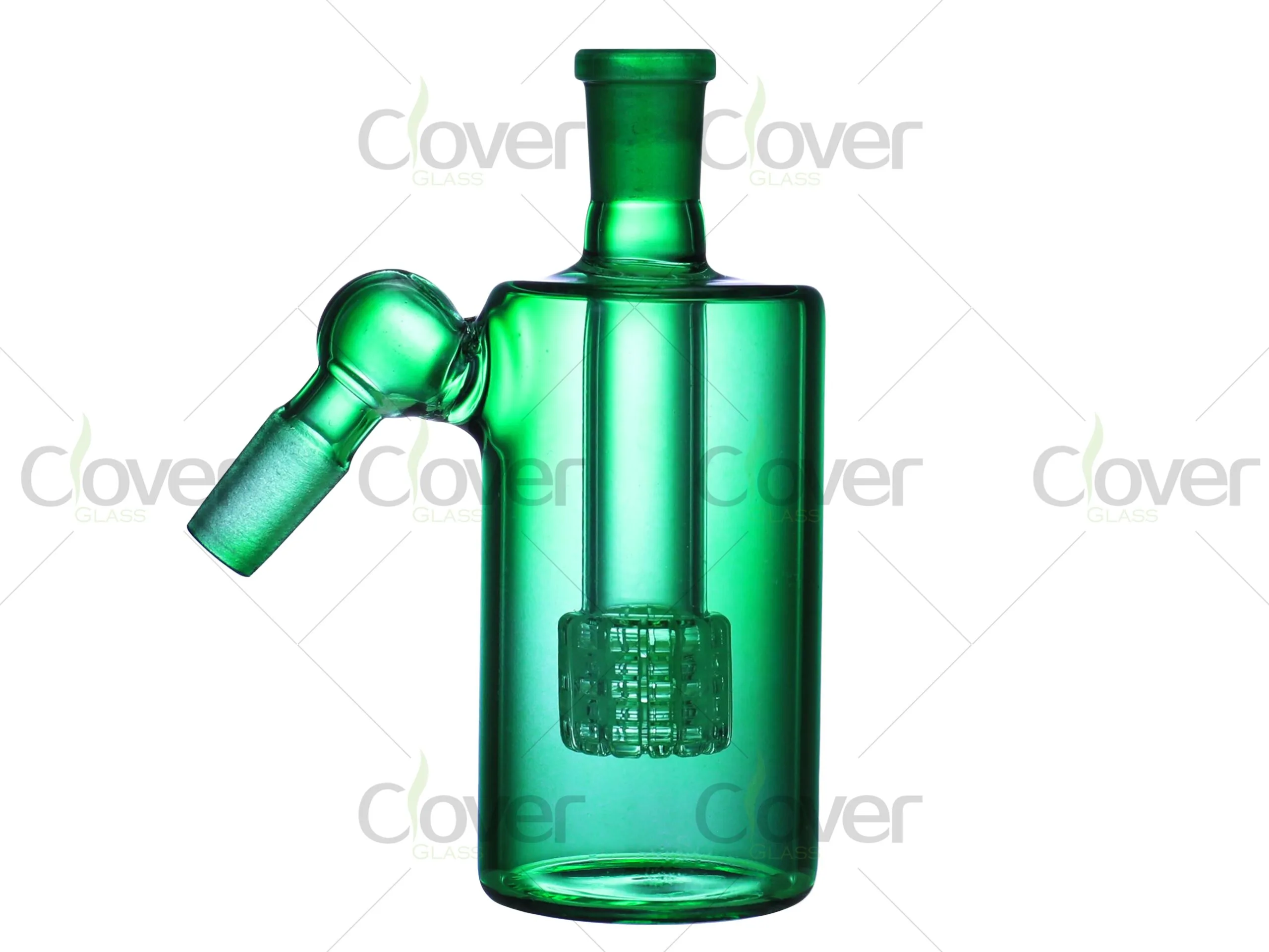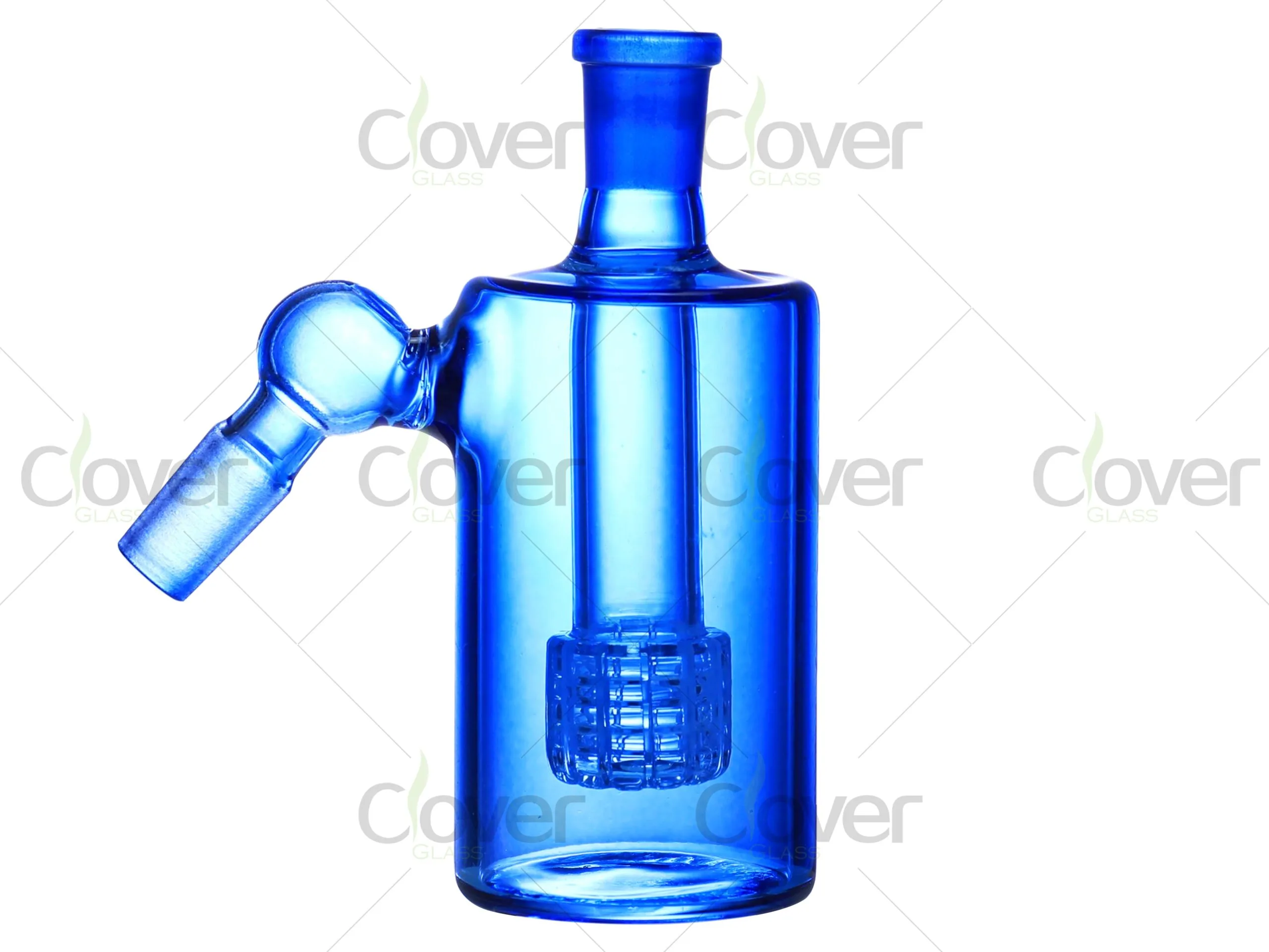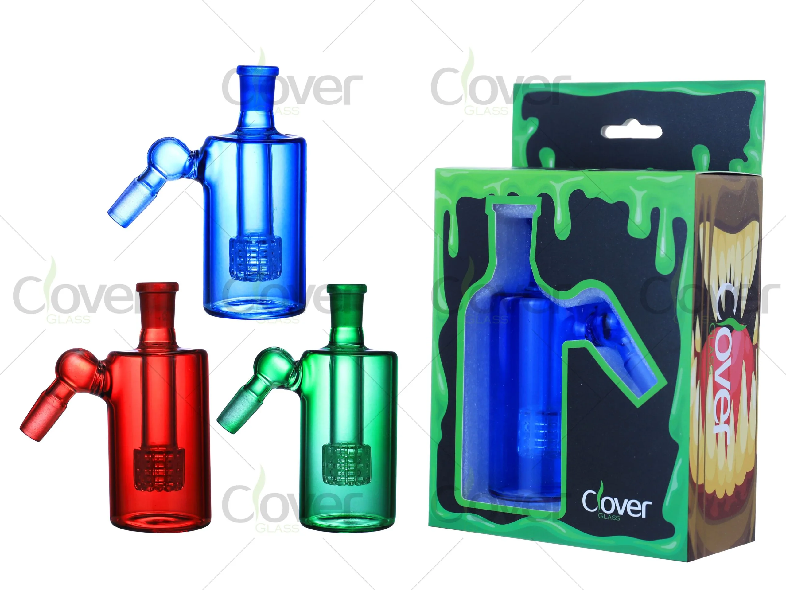 The Clover Glass 5.3-inch Glass Ash Catcher combines vibrant color and efficient filtration for a smooth and enjoyable smoking experience. Available in blue, red, and green, this ash catcher features a unique design with a bubbled base for improved filtration. Standing at 5.3 inches, it offers optimal performance while remaining compact enough for easy handling. The 14mm/18mm male joint ensures compatibility with most rigs, and the 45°/90° angle provides flexibility for various setups.