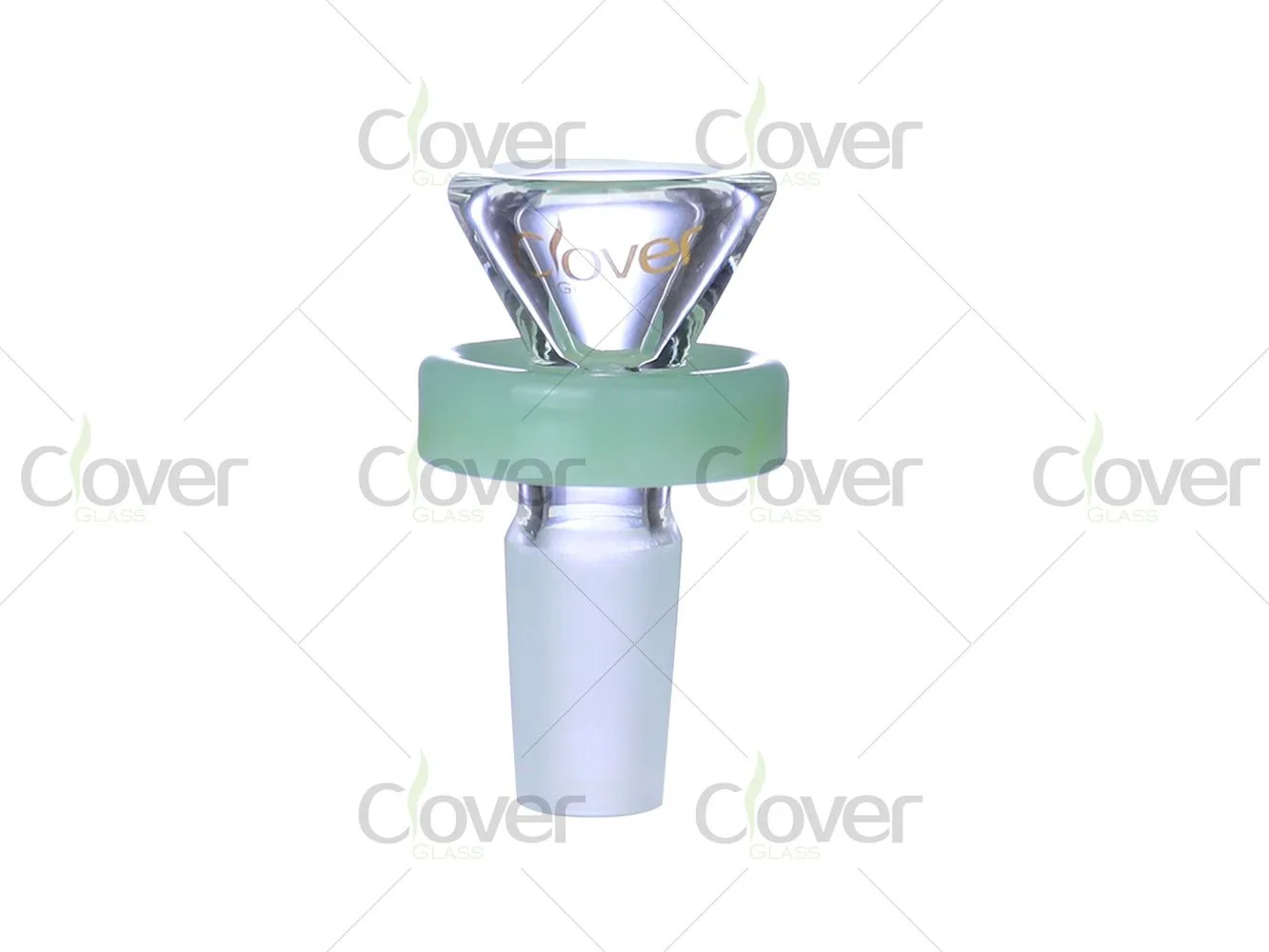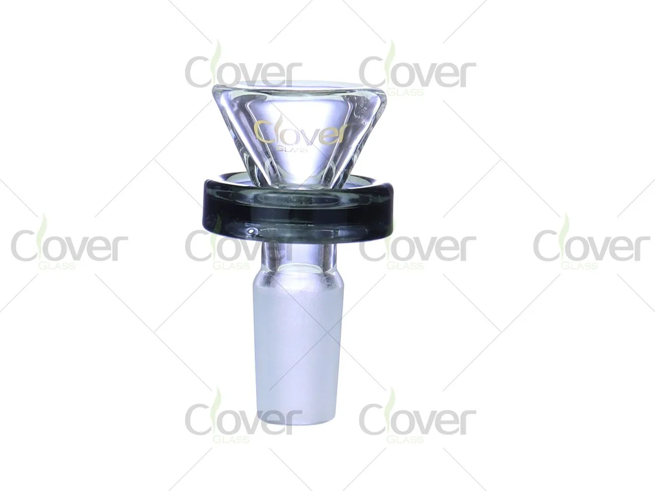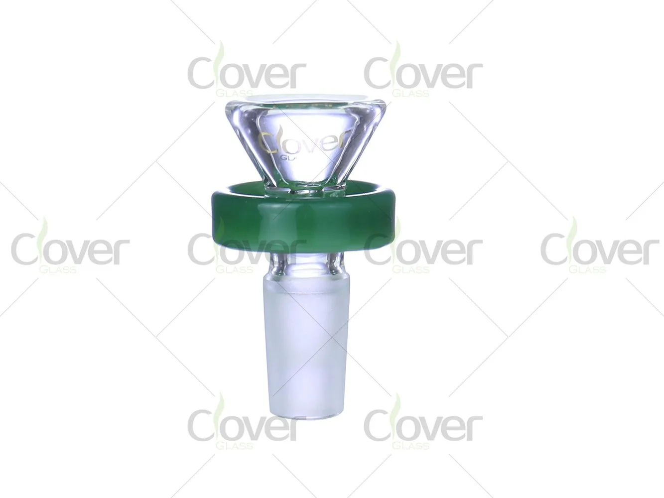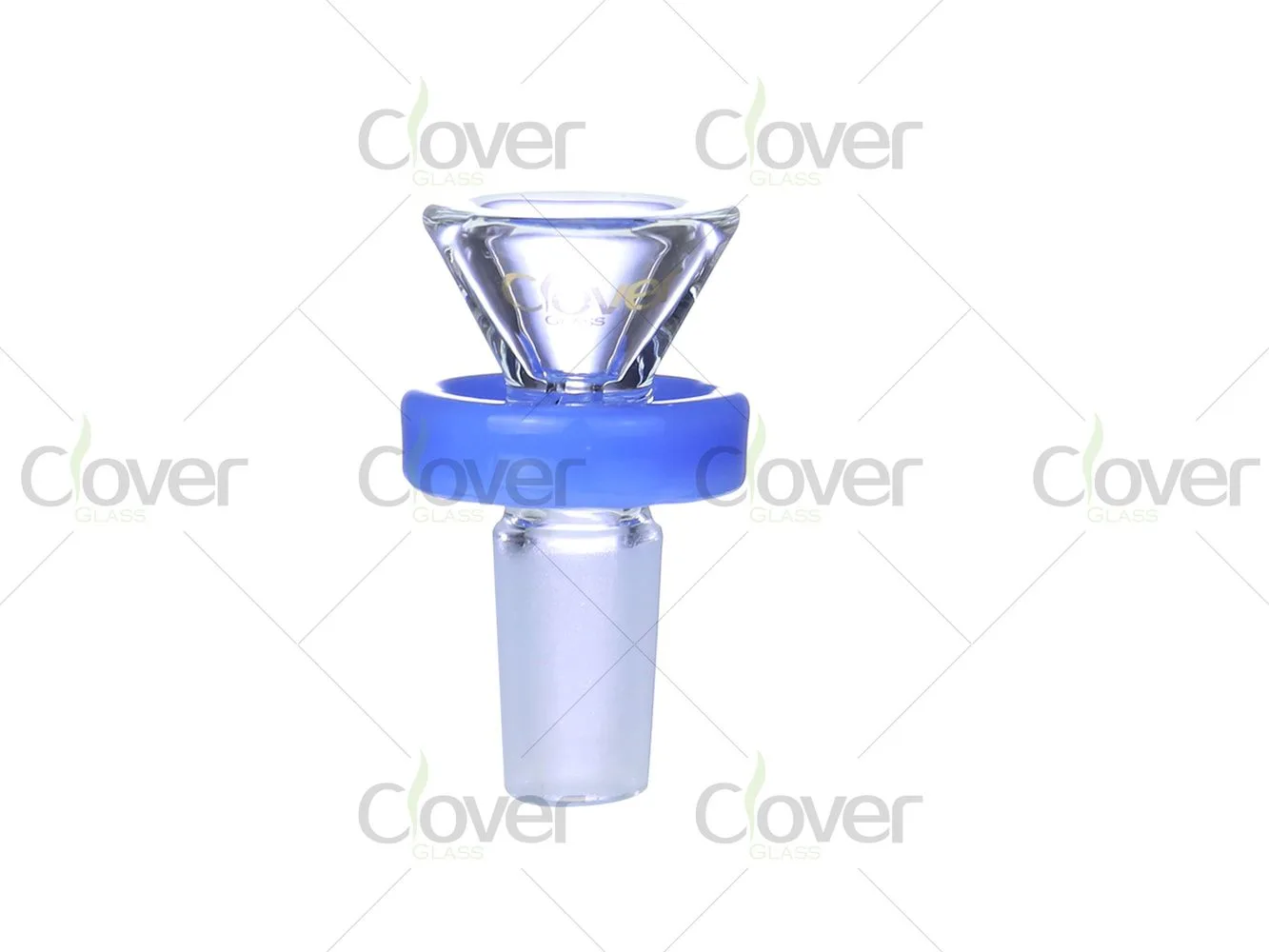 Below the collar, the bowl connects to a standard 14mm frosted joint, compatible with most glass water pipes. The transition between the clear bowl and colored collar is clean and well-balanced, giving the piece a stable and premium feel.