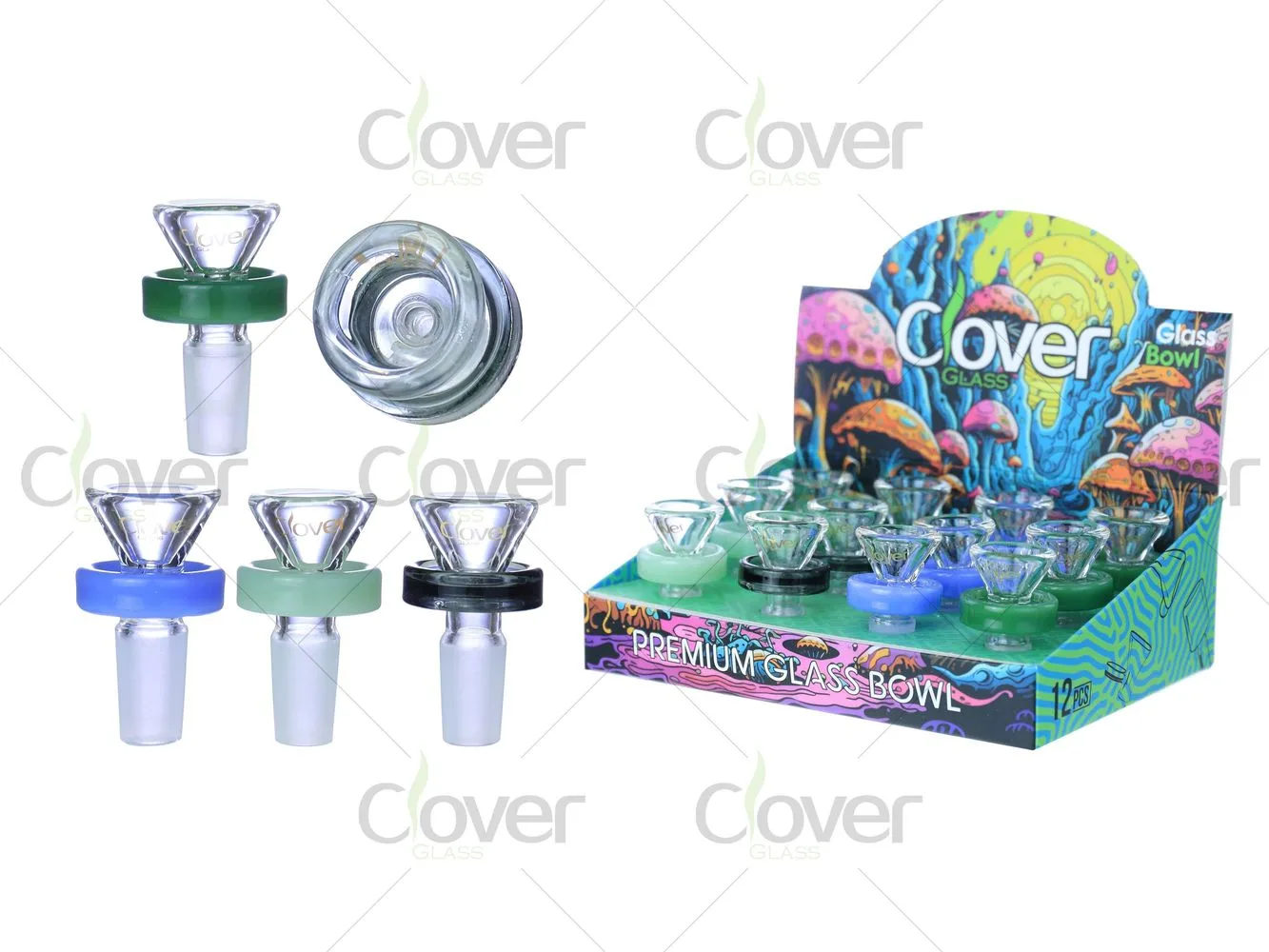 This glass bowl features a clear funnel-shaped bowl cup with a wide, flared opening and smooth inner surface for easy loading and cleaning. The bowl cup sits on a thick, solid-color glass collar, forming a raised ring structure that adds both visual contrast and extra grip.
