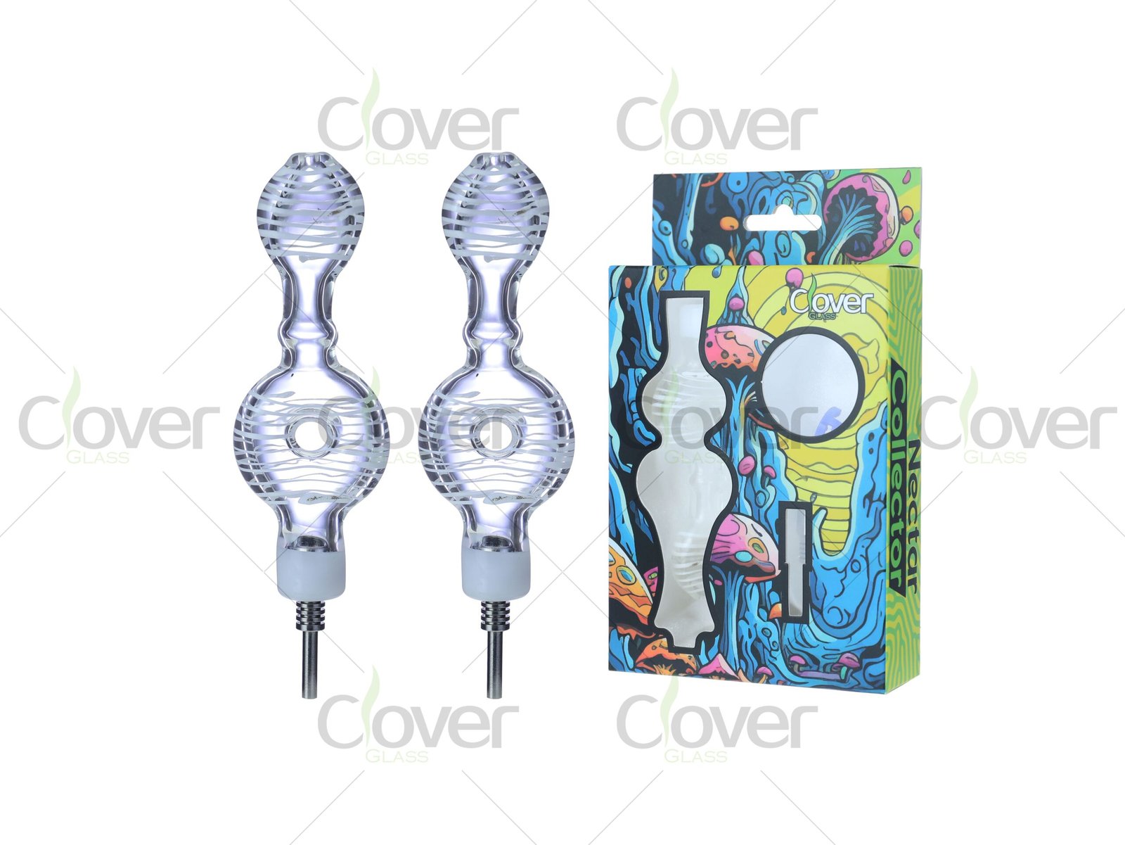 Each nectar collector features a hand-blown glass body with a double-chamber design for better airflow and vapor cooling.