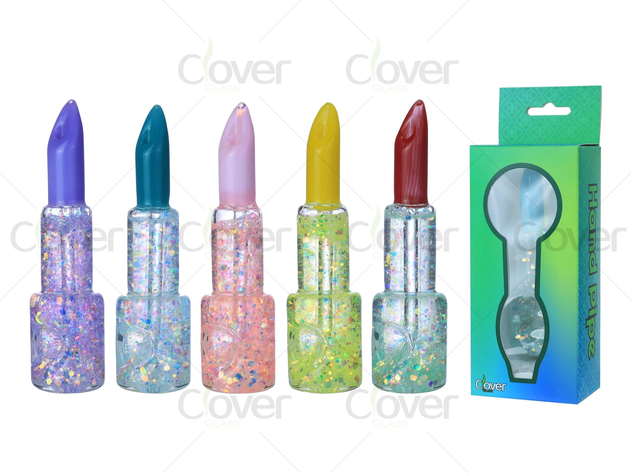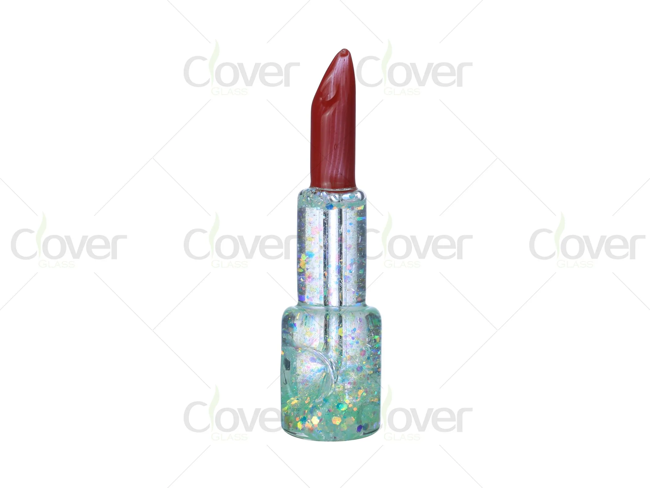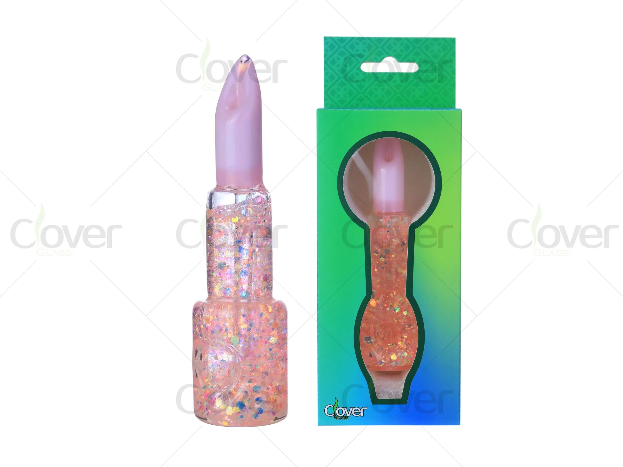Glitter Lipstick Shaped Glass Hand Pipe – Sparkling and Stylish Design (4.7-inch)