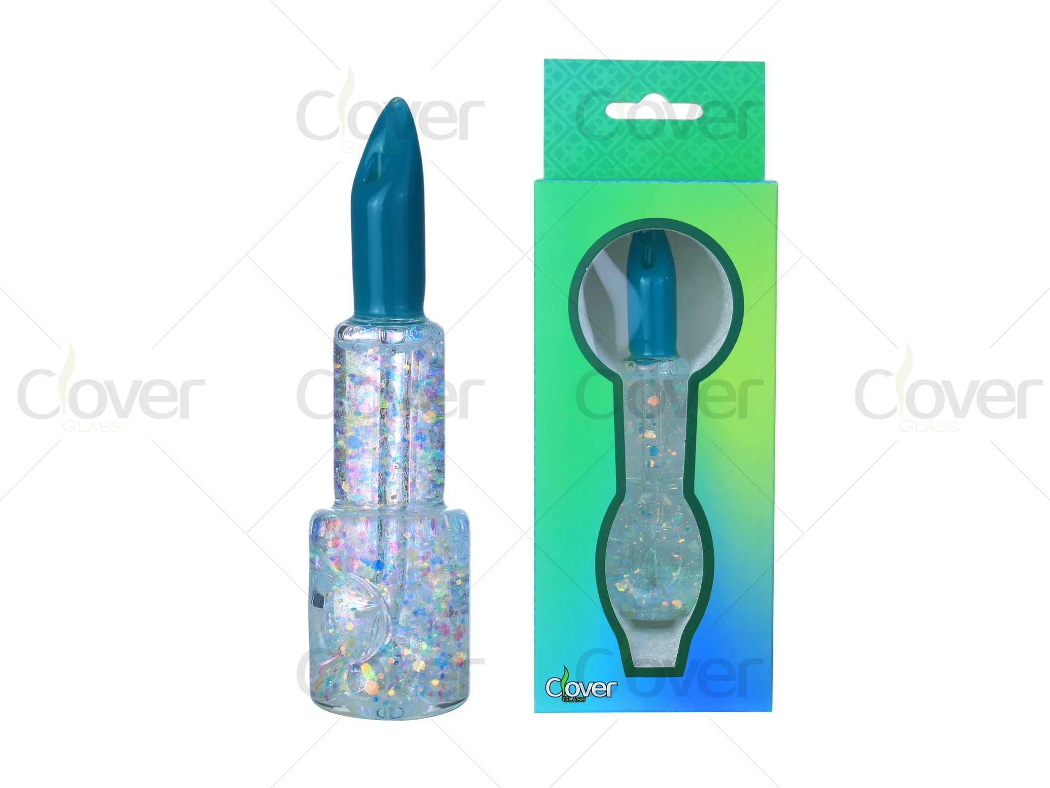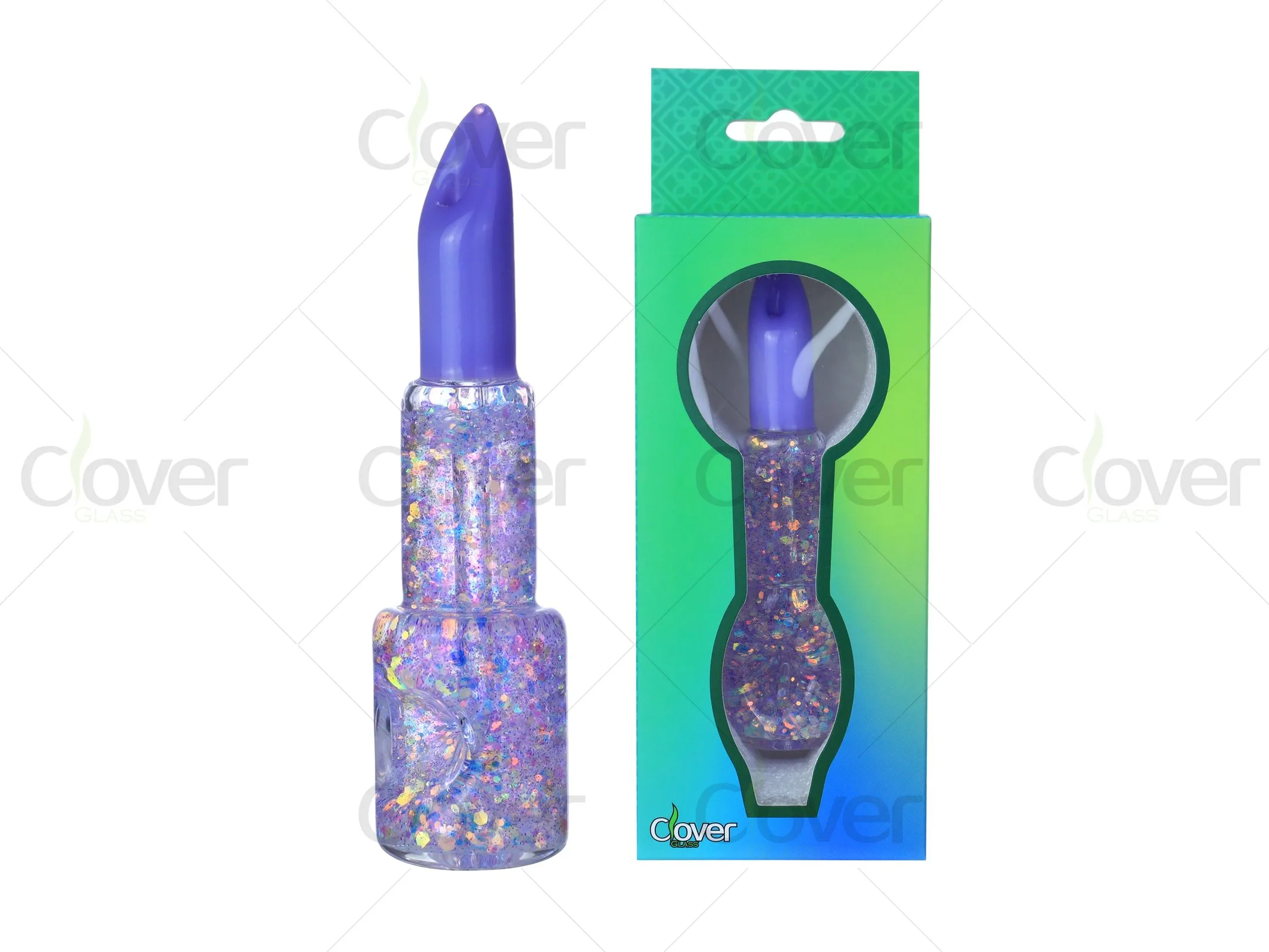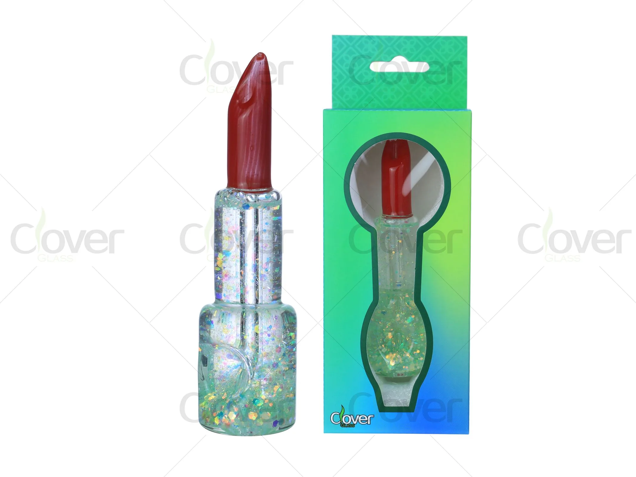 Glitter Lipstick Shaped Glass Hand Pipe – Sparkling and Stylish Design (4.7-inch)