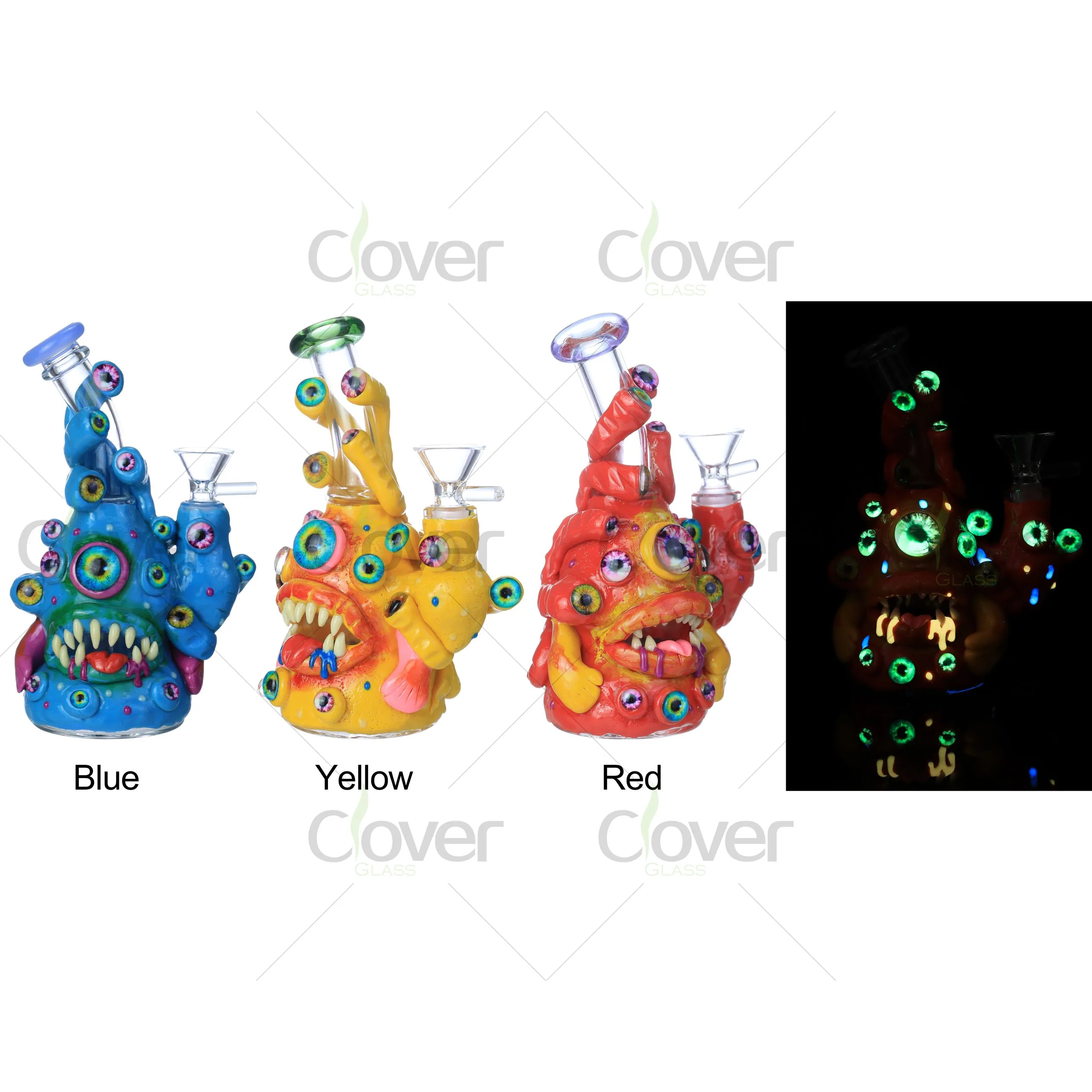 Glow-in-the-Dark Monster 3D Painted Bong – 7.09″ Hand-Painted Glass Water Pipe (5mm Thick)